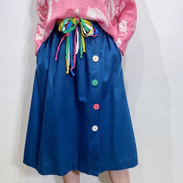 80s navy and colorful ribbon skirt【1106】