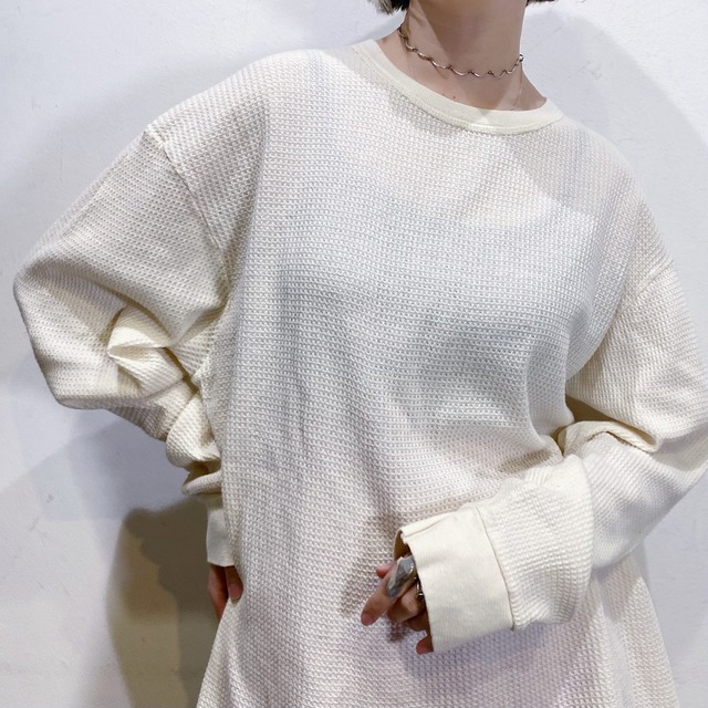 【size】3XL 【fabric】cotton 80% / polyester 20% 【condition】 裾に軽度のホツレが見受けられますが、あまり気にならない程度かと思われます。 【age】s 【memo】 使い勝手の良い、サーマルトップスです。 ゆるっとした程よいサイズ感で、着こなしやすいのが魅力の一枚。 丈感もちょうど良く、重ね着すると裾やリブが出てオシャレです。 防寒対策にもなりますし、ベストなどと合わせてトップスメインの着こなしももちろん雰囲気良いです。 何枚か持っておくと使えるアイテムですので、サイズ違いで探されるのもおすすめですよ。 【exact size】 着丈 70cm 肩幅 55cm バスト 120cm ウエスト 116cm 袖丈 64cm 【model's tall】166cm 【attention】 こちらのアイテムは、ご注文時に配送方法が『ヤマト運輸』か『レターパックプラス』かお選び頂けます。 『レターパックプラス』をお選びいただいた場合送料は全国一律600円とお安くなりますが、配送日が選べずポスト投函となります。 また商品によっては、梱包がタイトになってしまったりする可能性もございますのである程度のご理解をお願い致します。 さらに運送に関するトラブルの補償対象外でございますので、ご了承くださいませ。