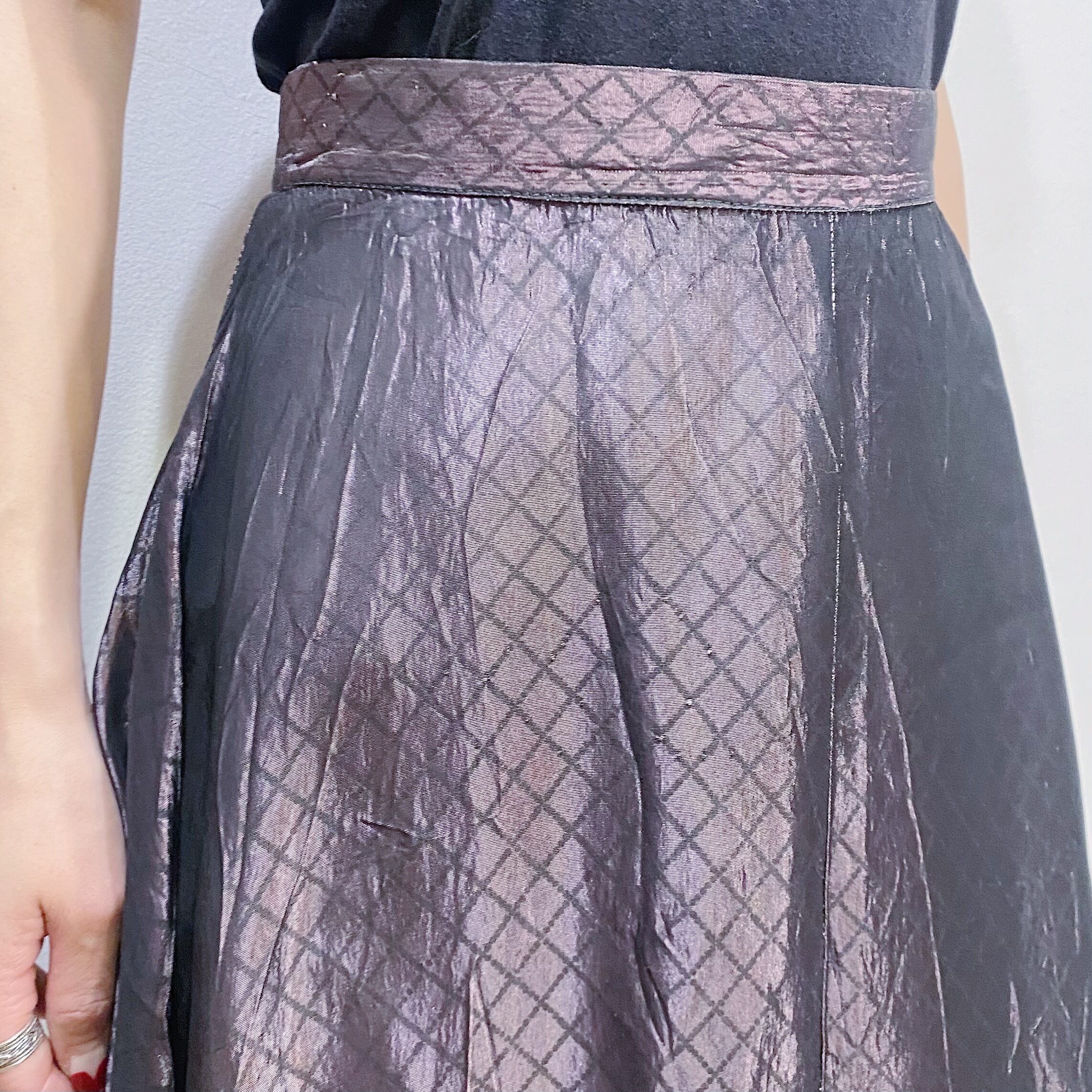 ブラックとパープルの中間のような絶妙な色合いで、さり気ないチェック柄が大人可愛く着れるポイントの一枚。