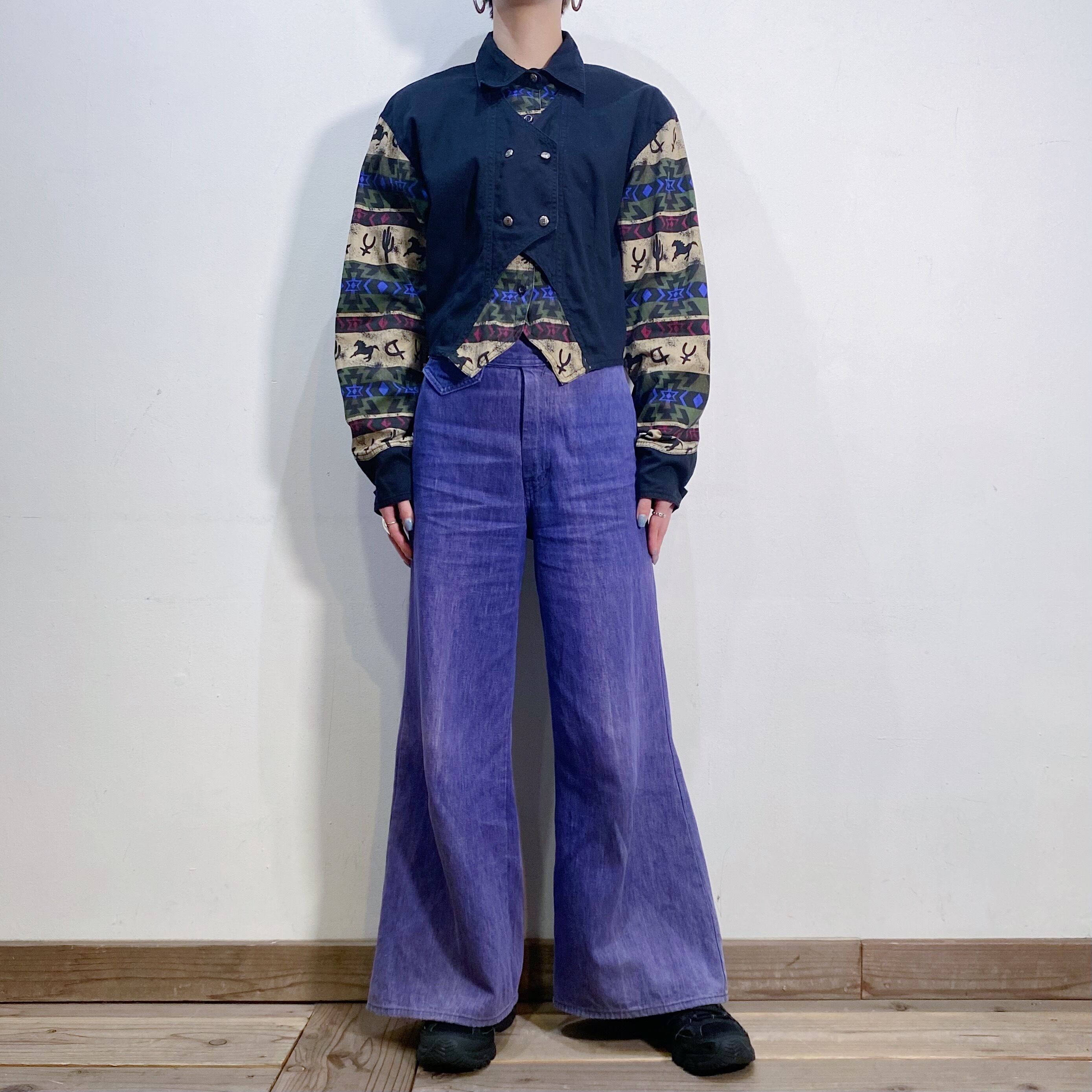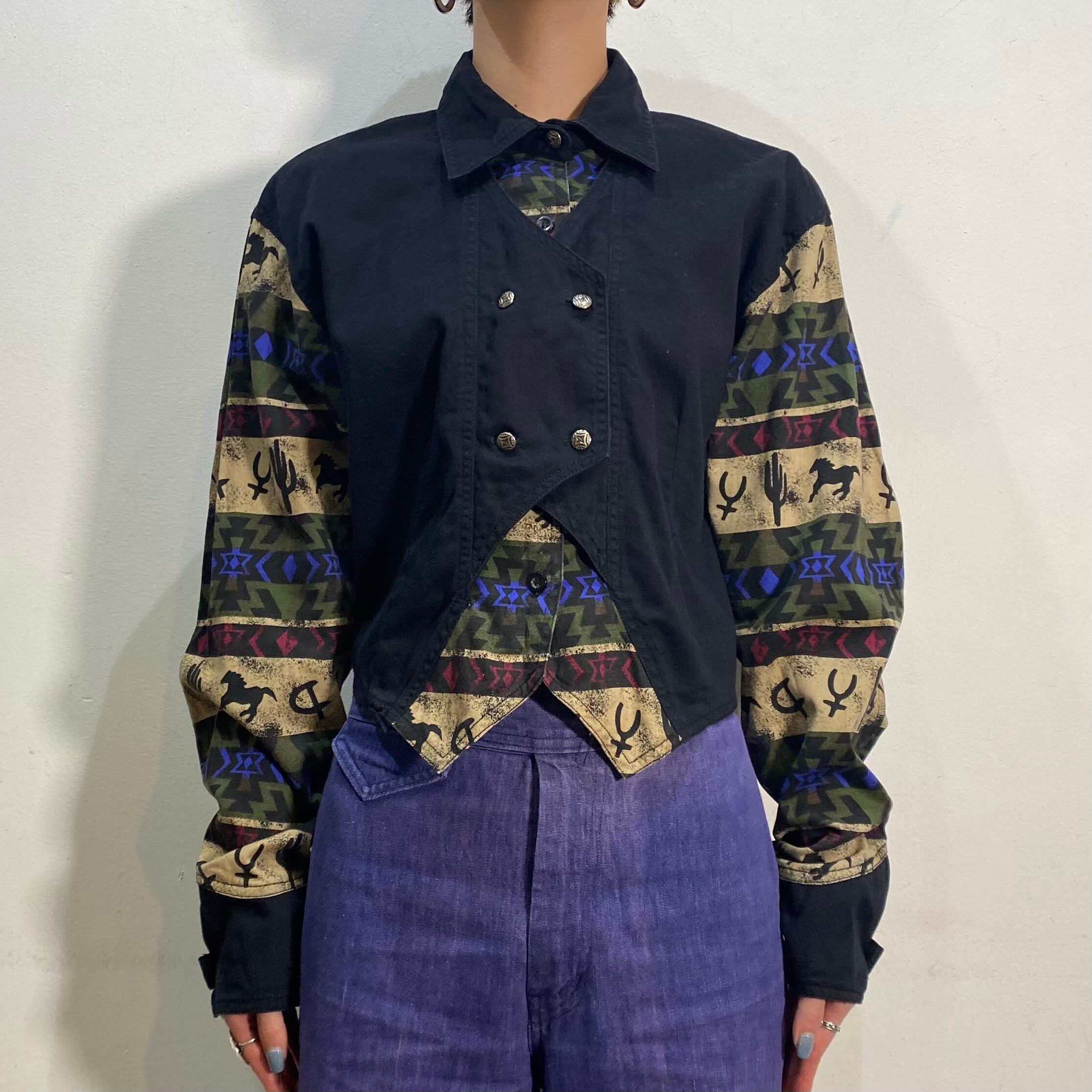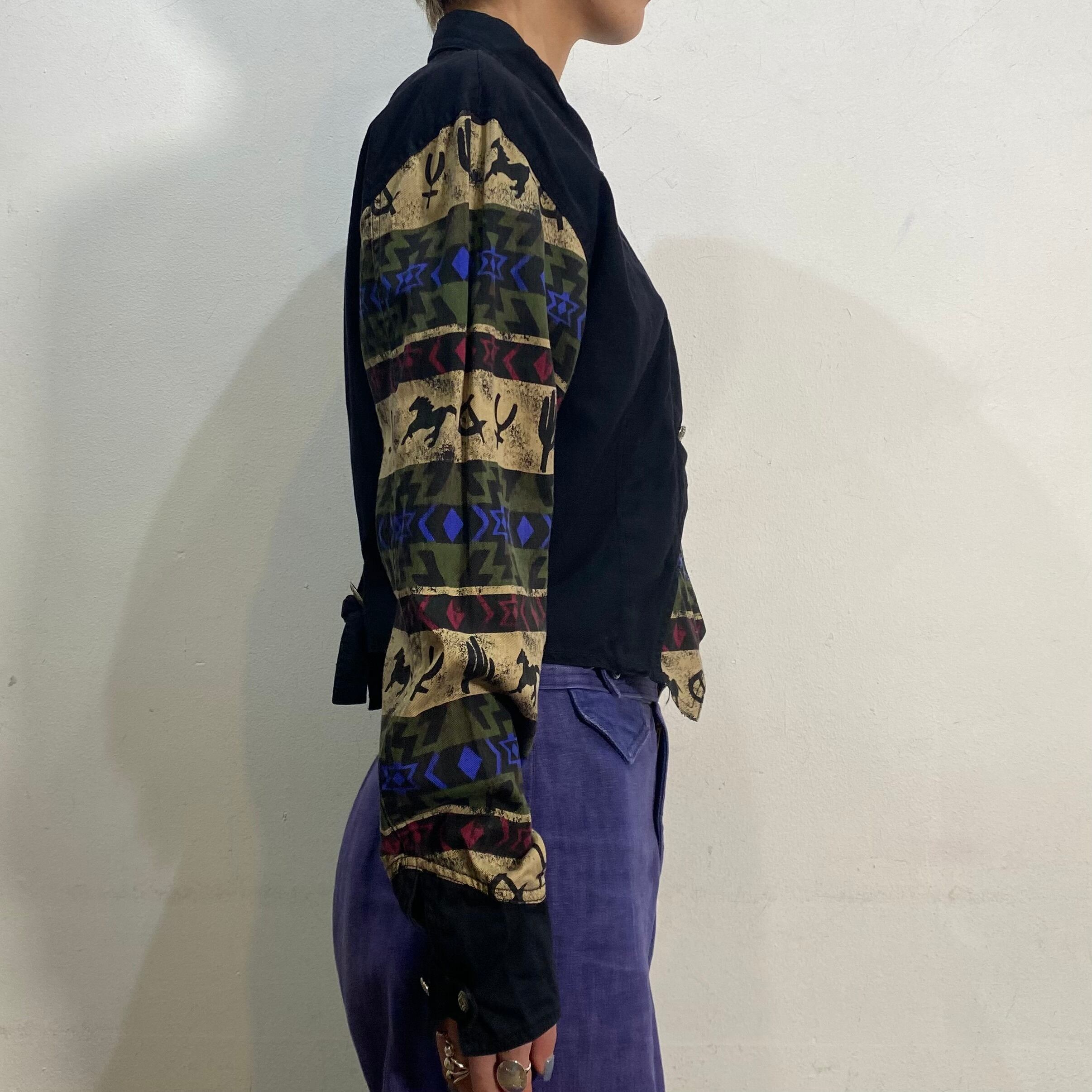 ブラックカラーとネイティブ柄の切り替えが可愛い、80年代のシャツです。