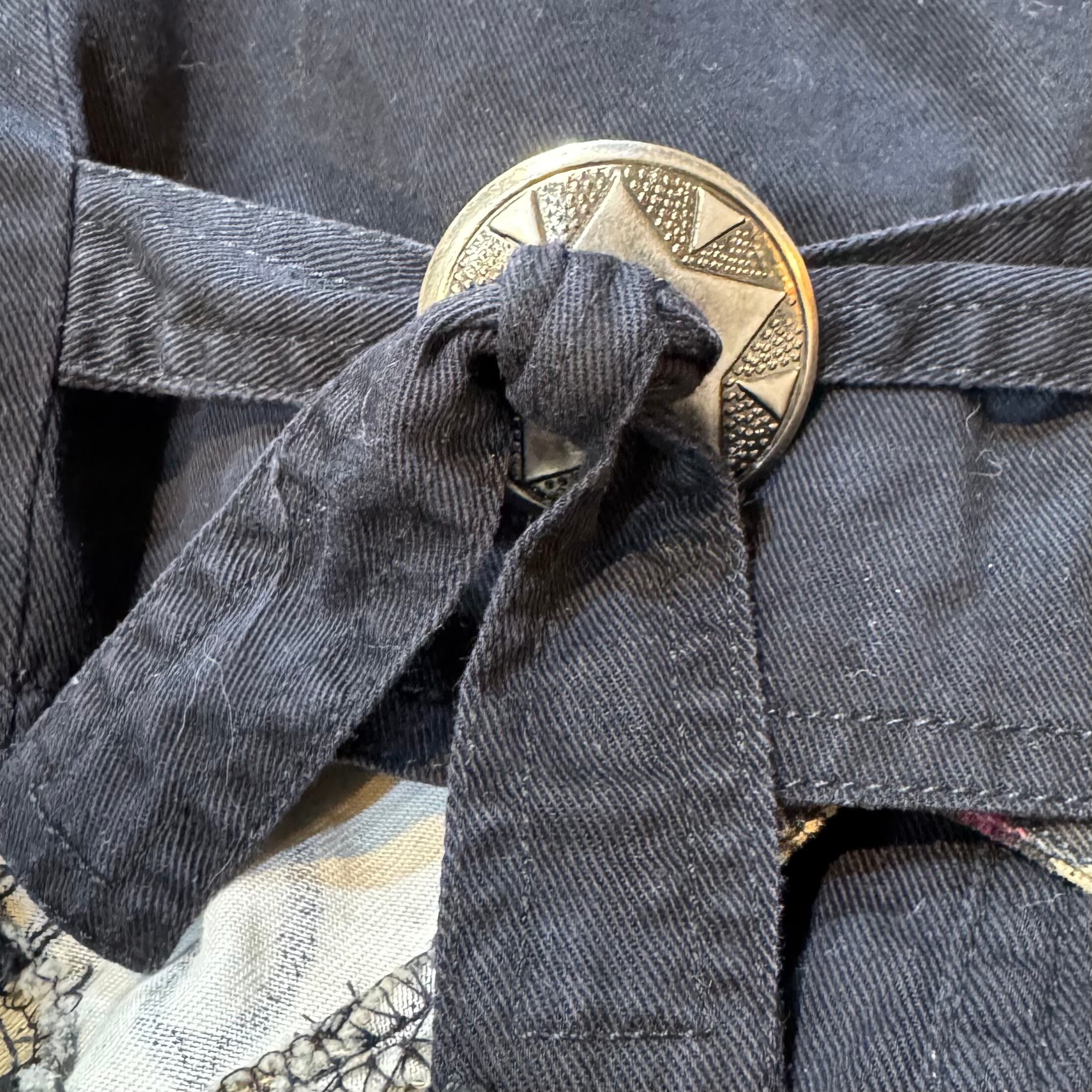 ベストを上から重ねたかのようなユニークなデザインになっており、後ろにはコンチョボタンが付いていて素敵。