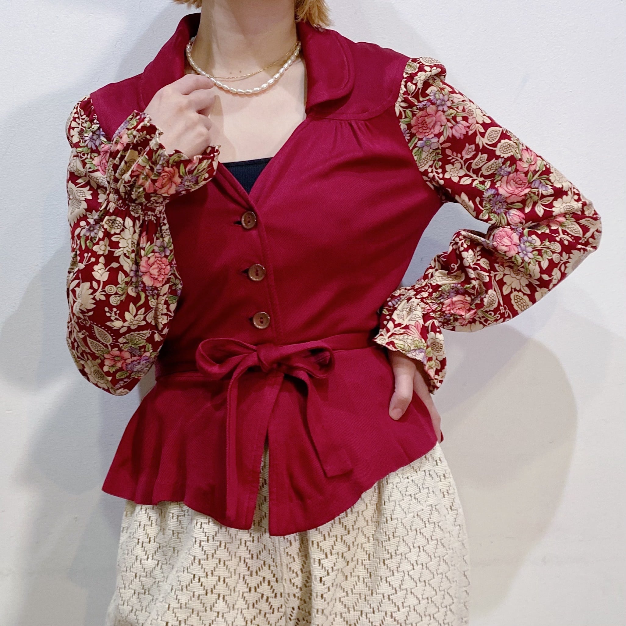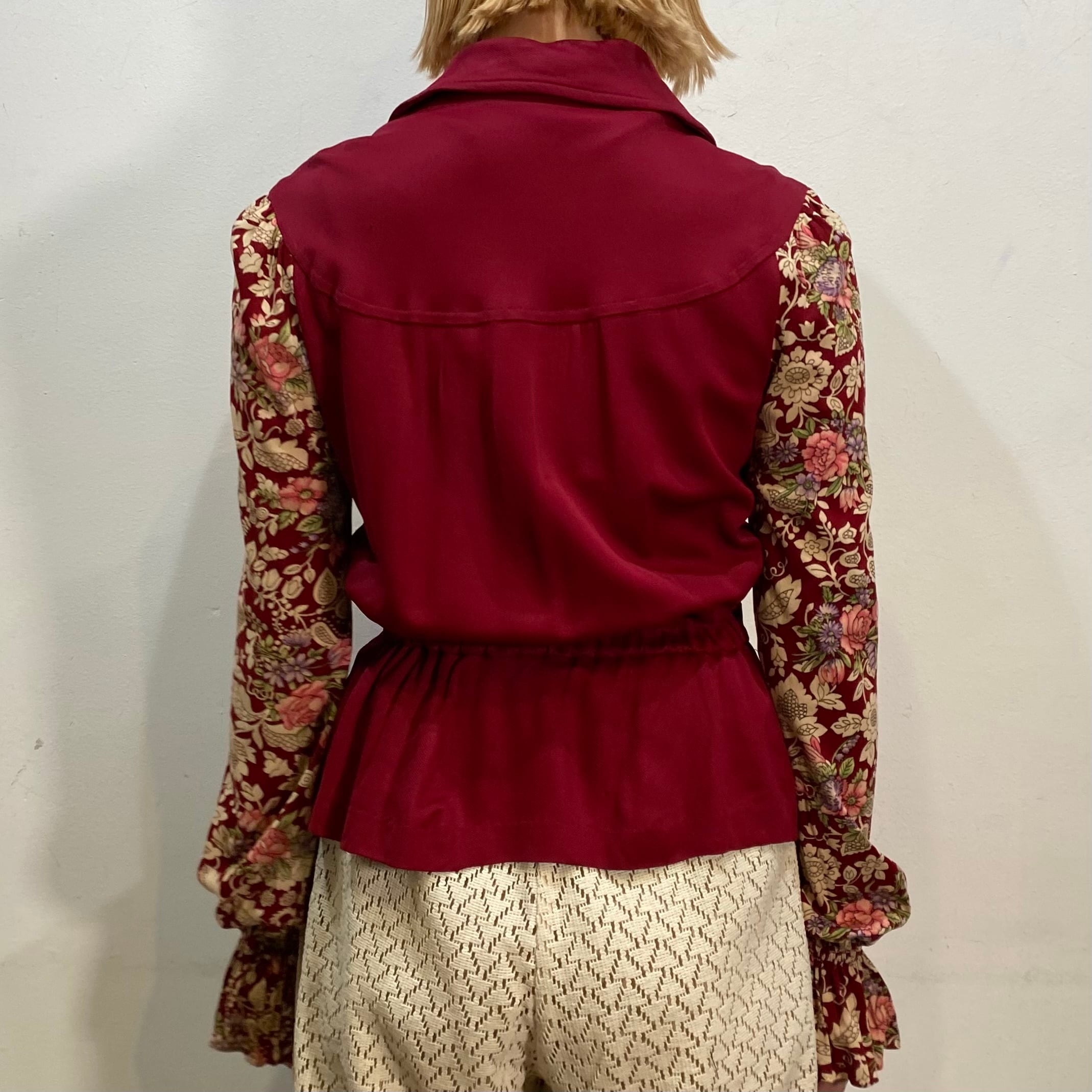 袖の花柄の切り替えが可愛い、70年代の長袖シャツです。