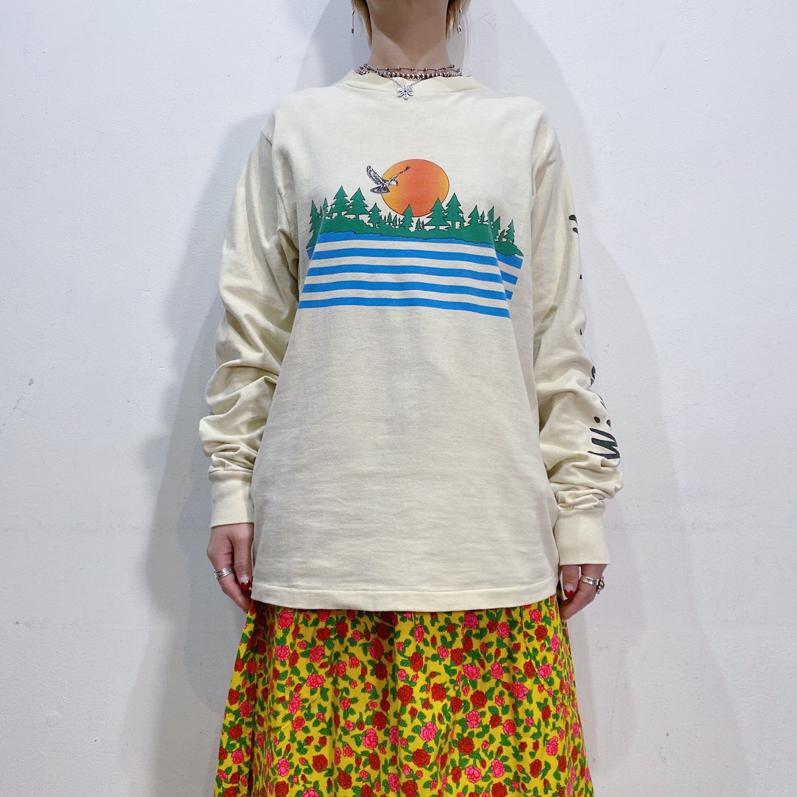 アメリカらしいサンセットと鳥のプリントが可愛い、90年代のロングスリーブteeです。