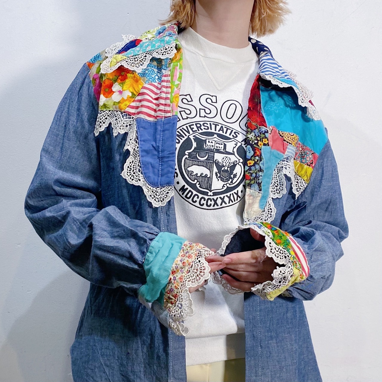 1970年代に流行したハンドメイドのリメイクシャツです。