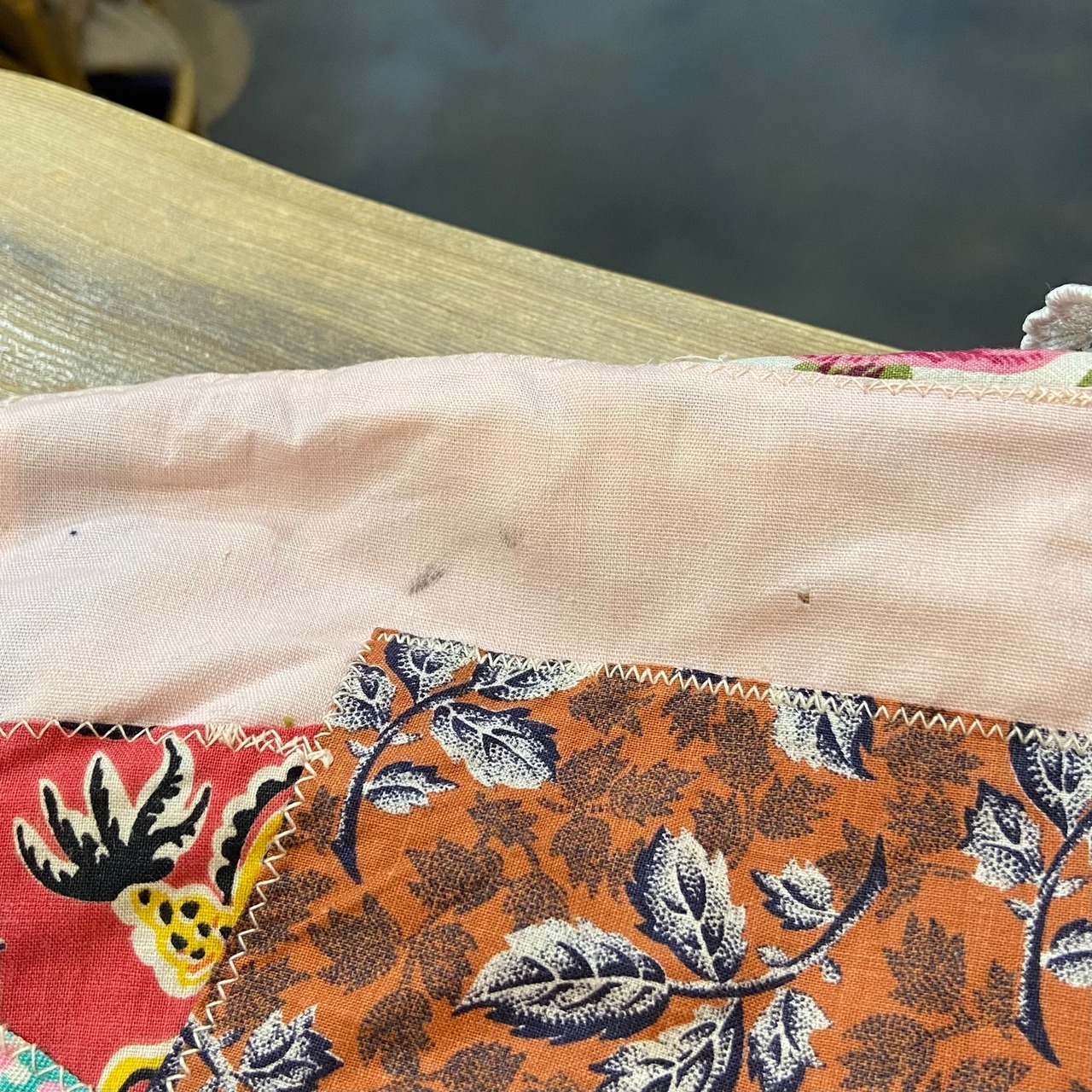 カラフルなリアルパッチワークとレースのデザインがとっても華やかで最高に可愛い一枚。