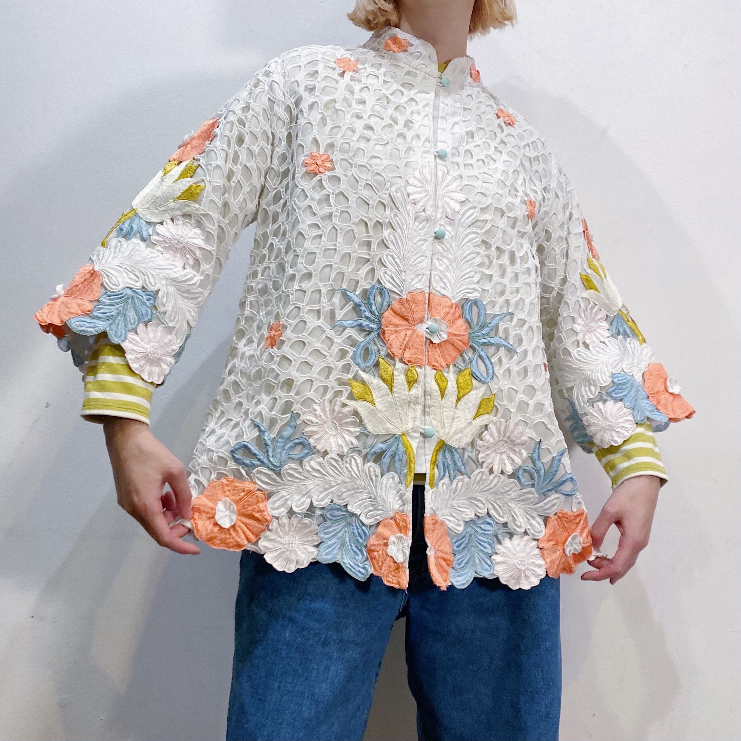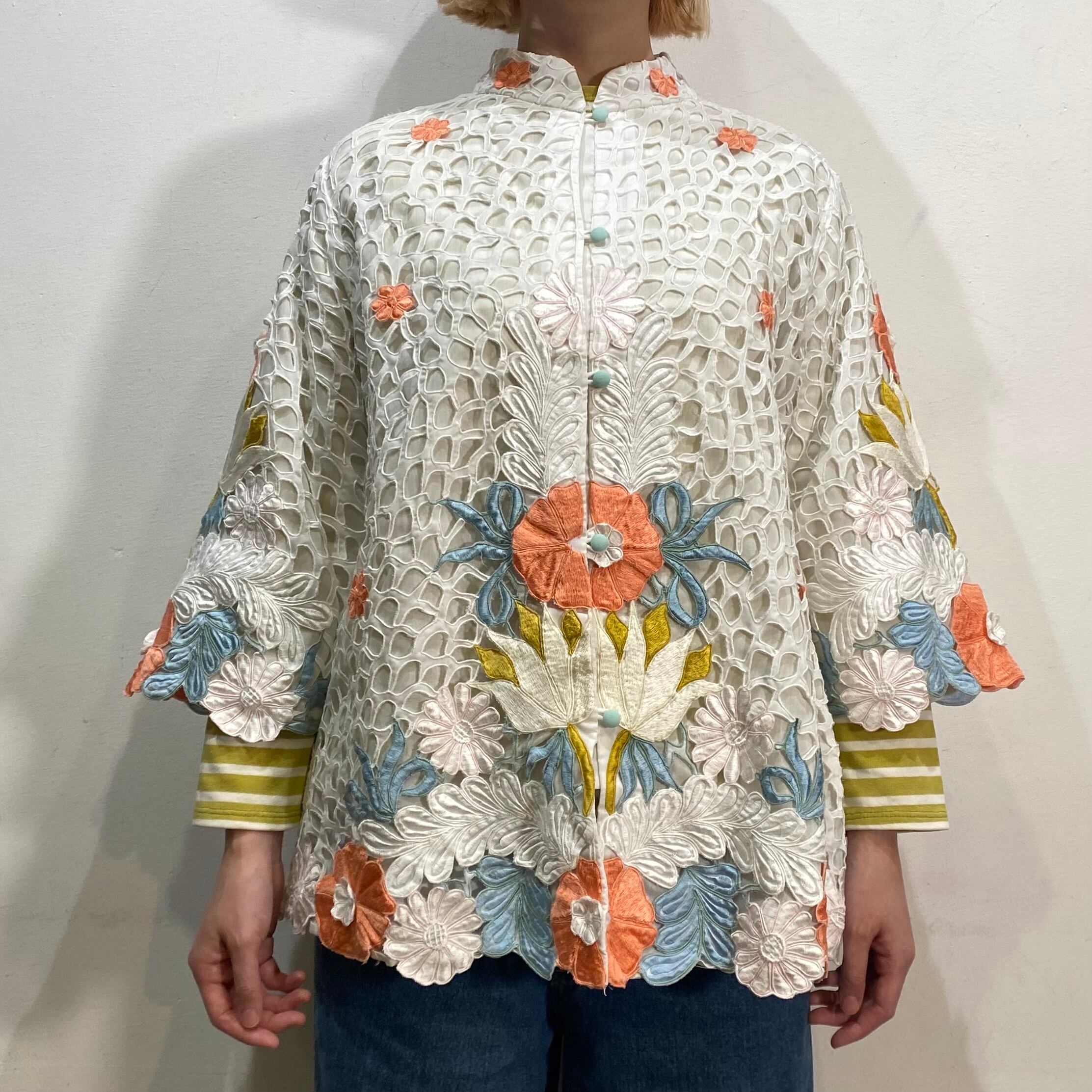 フィリピンの伝統的な技法を用いて作られた、独特のホール刺繍とお花の刺繍がとても可愛いシャツです。