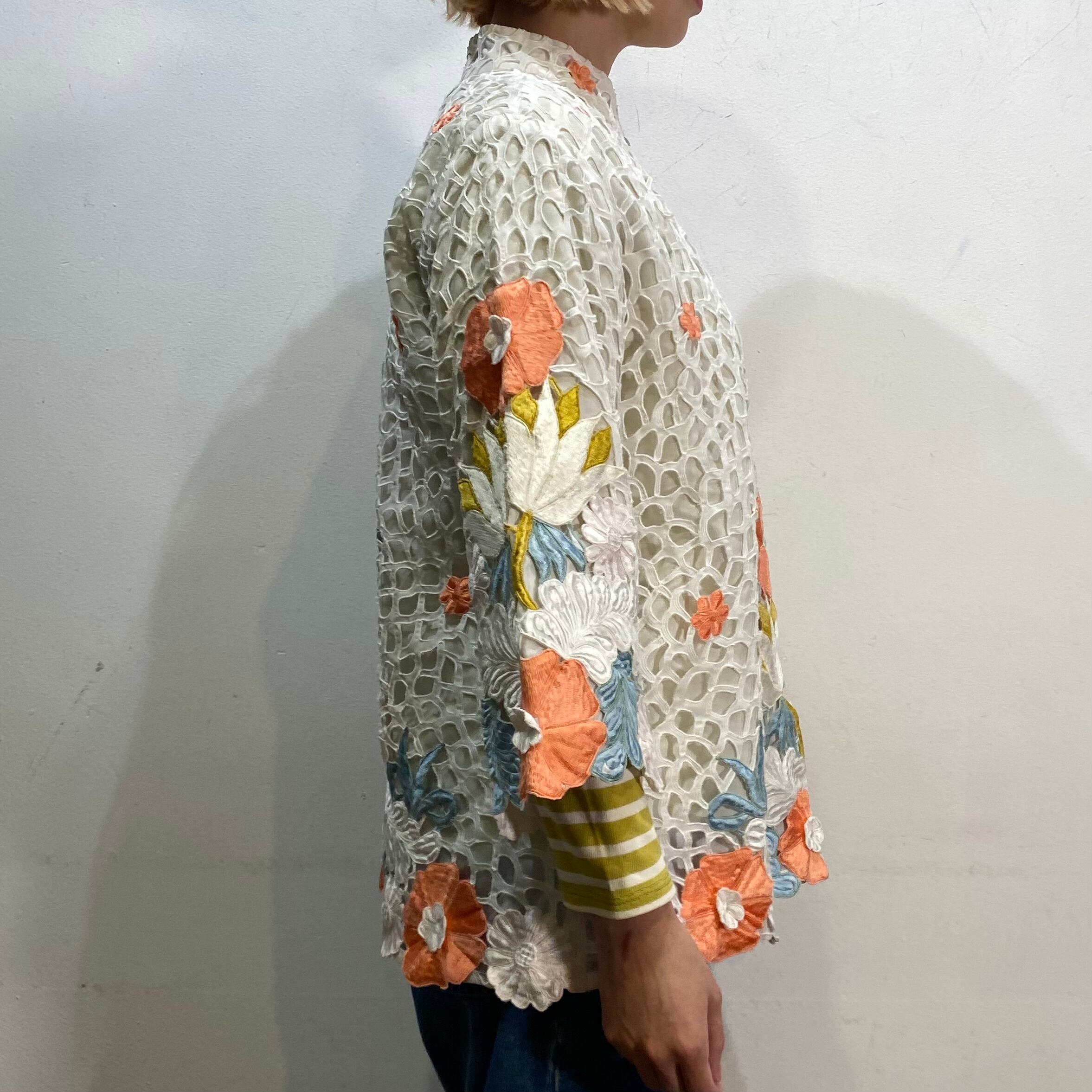 裾と袖口から咲き誇ったかのようなデザインがとても素敵で美しい一枚。