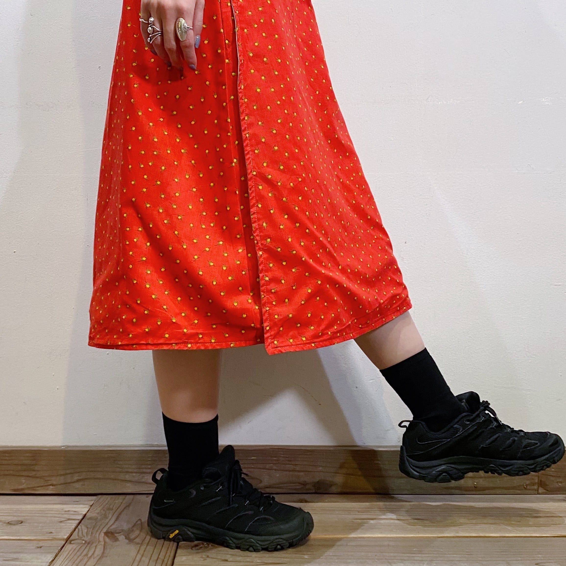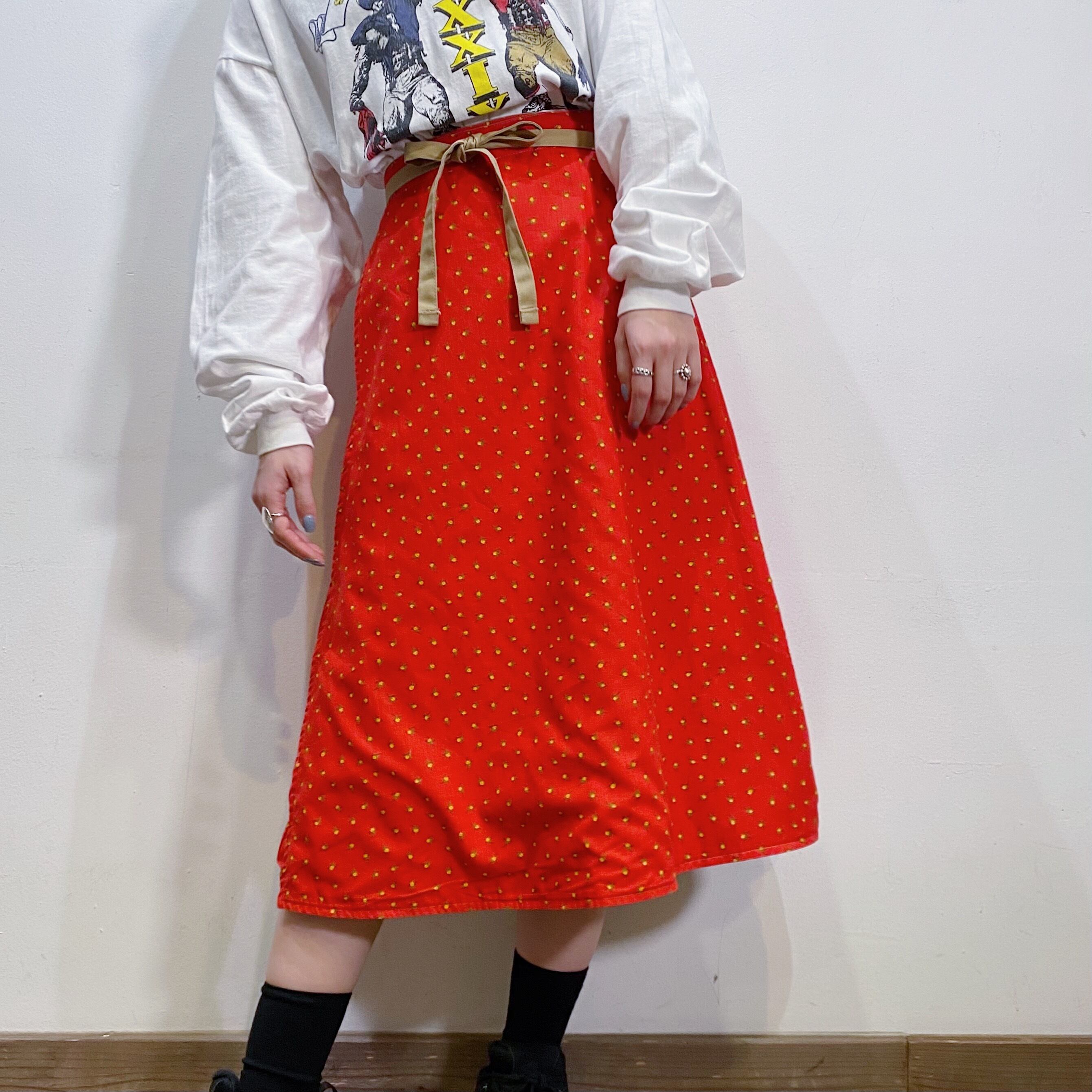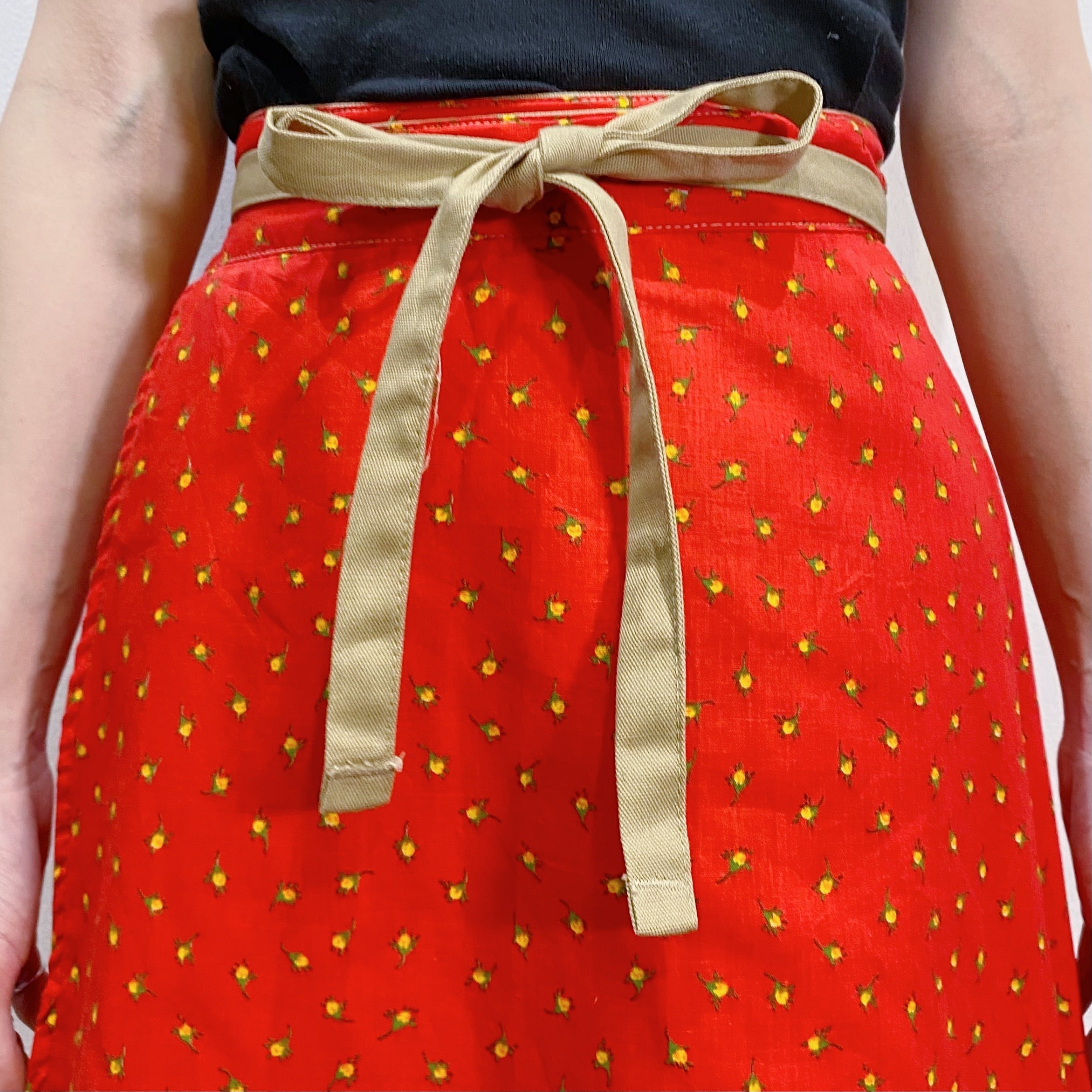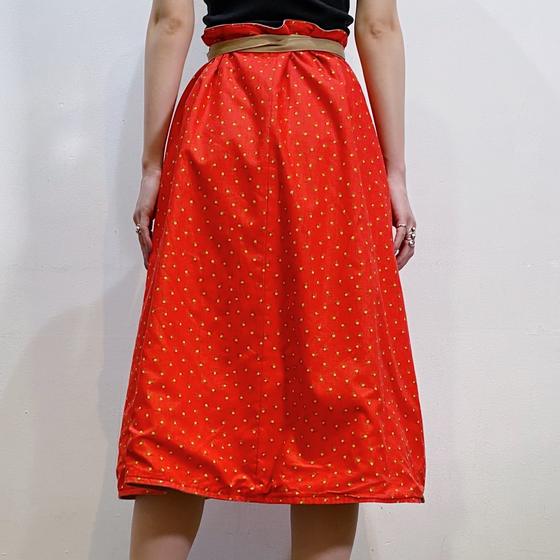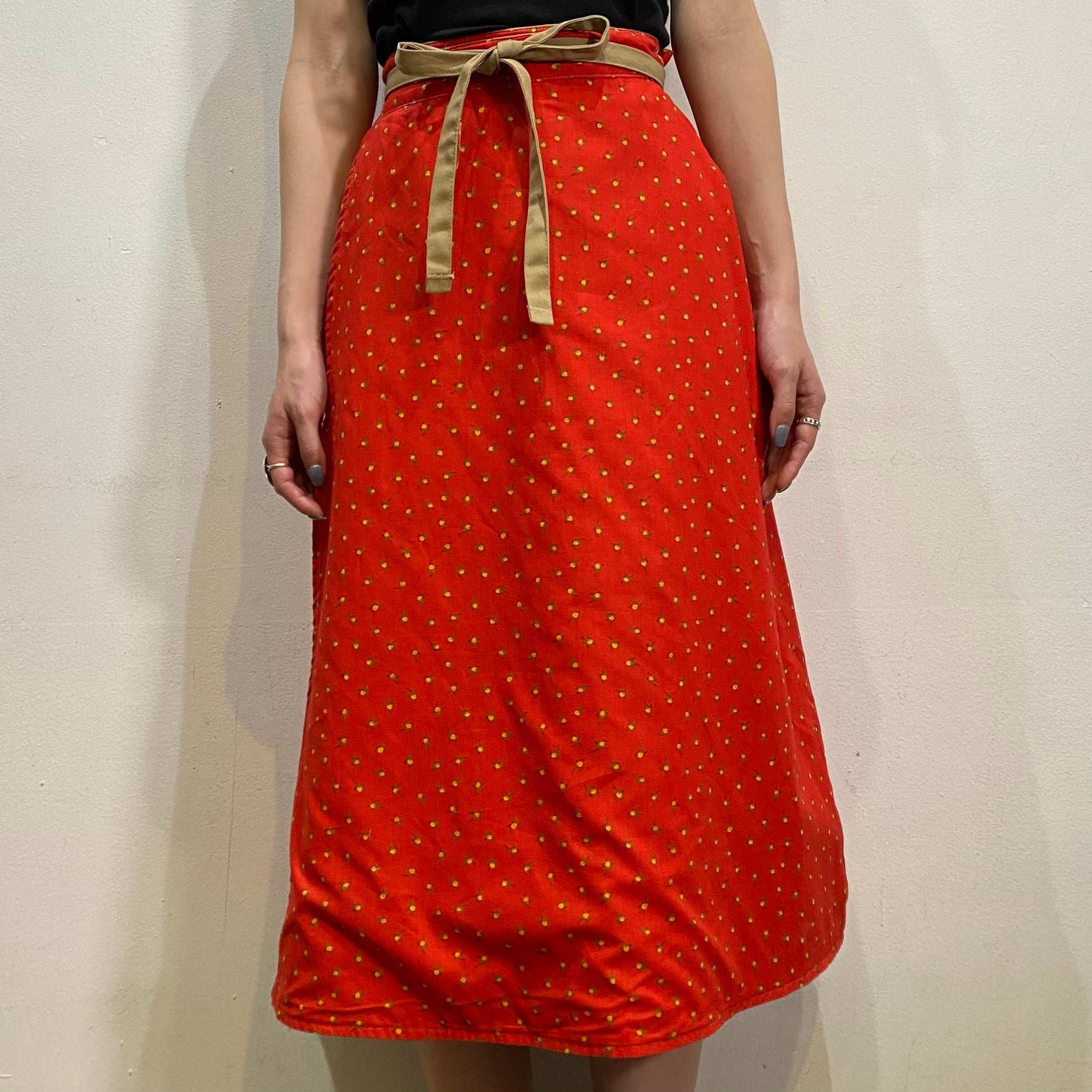レッドカラーにイエローの小花柄が可愛い、70年代のラップスカートです。