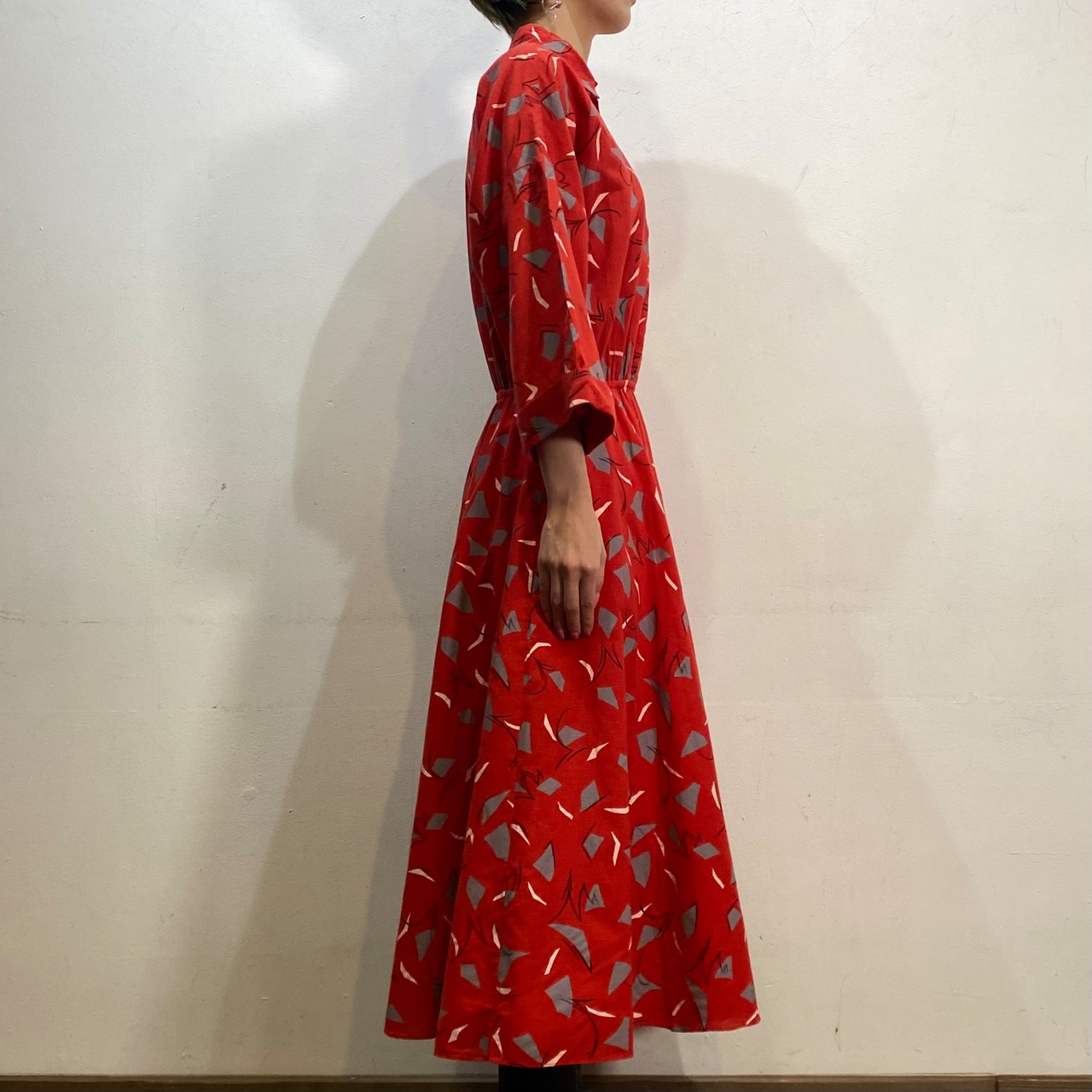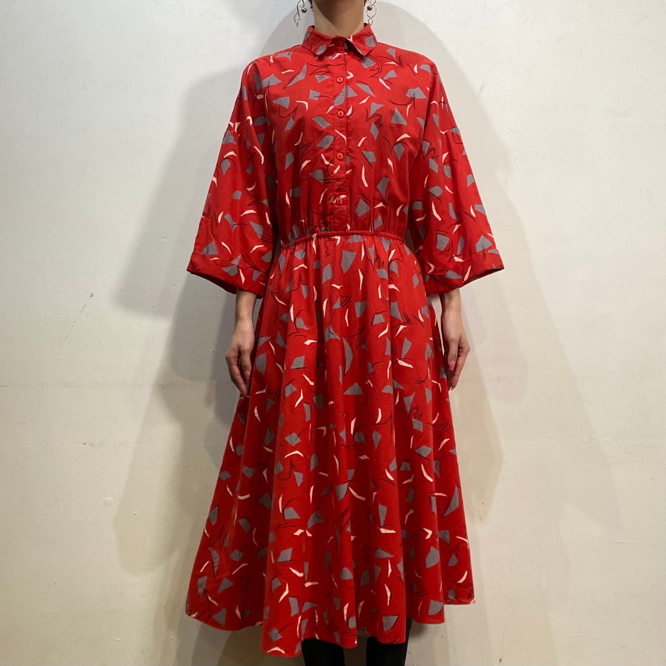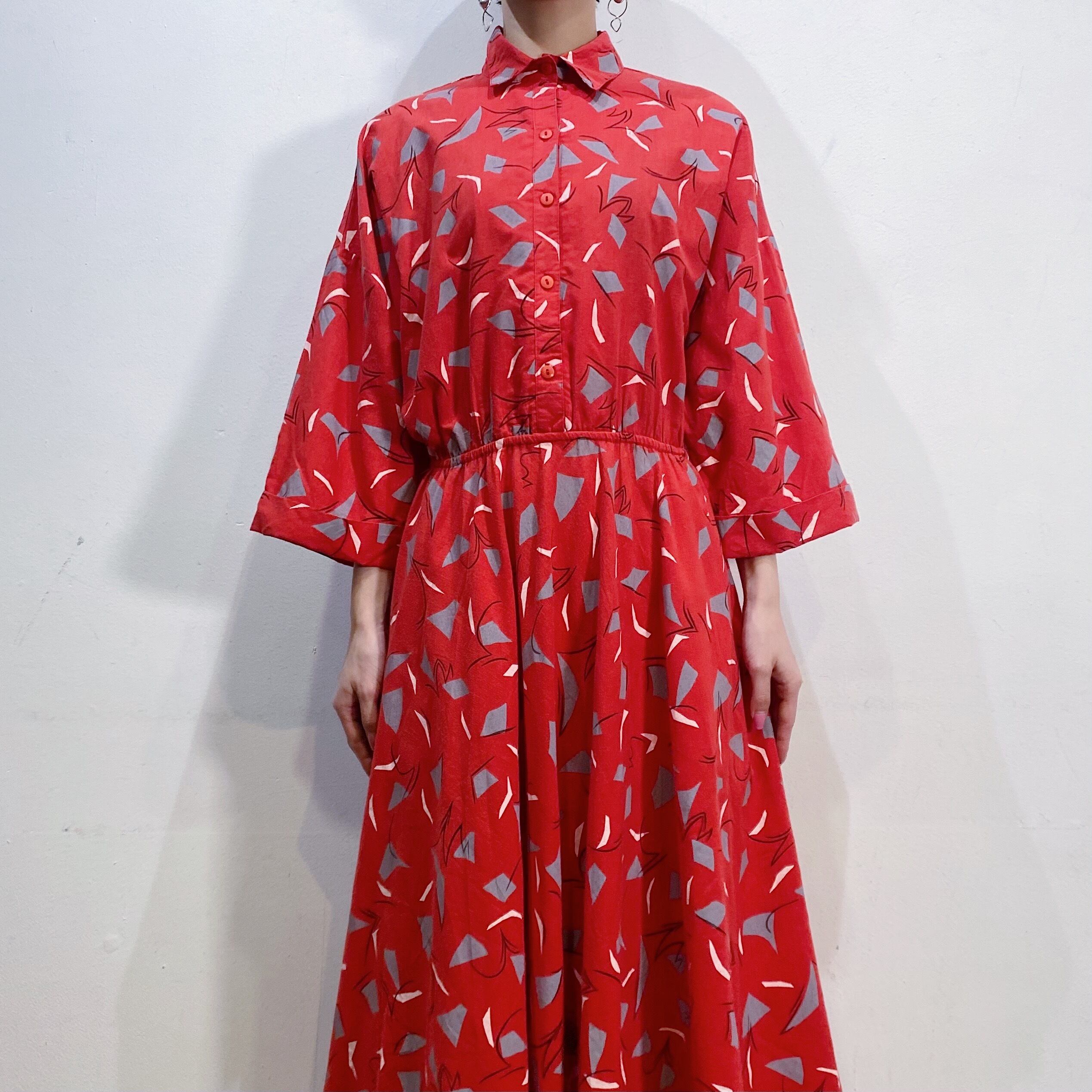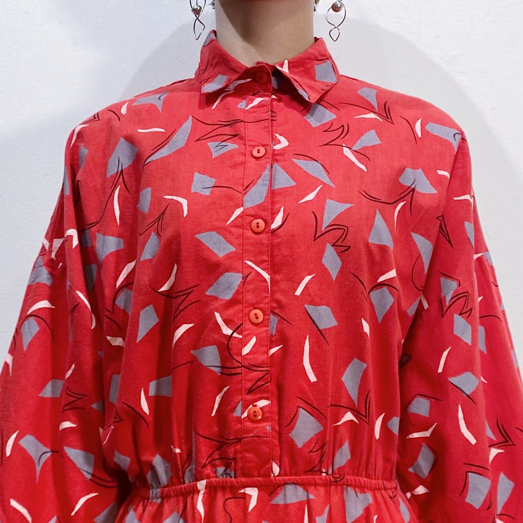アートのような不思議な柄が可愛い、80年代のシャツワンピースです。