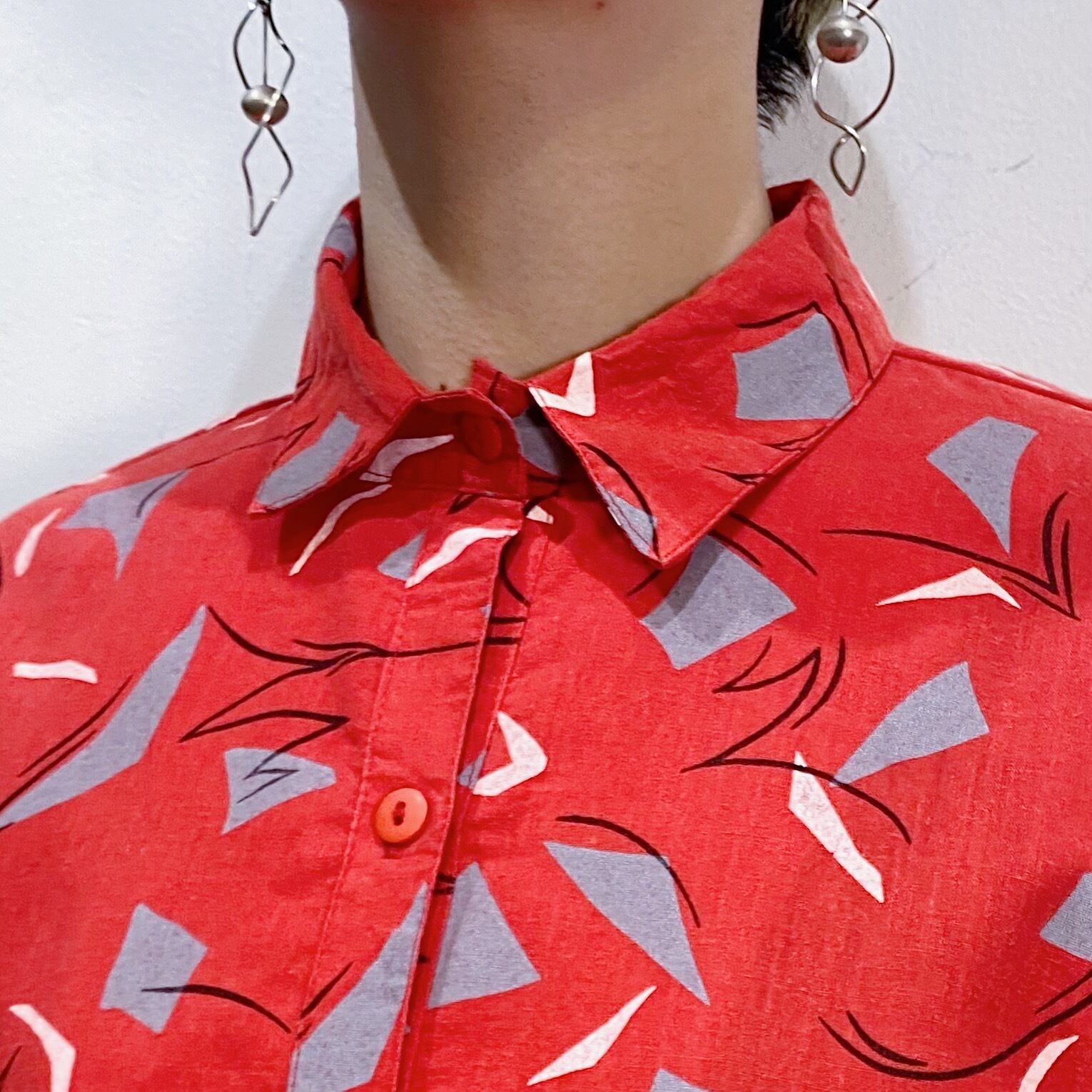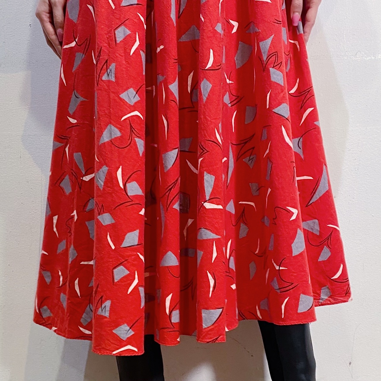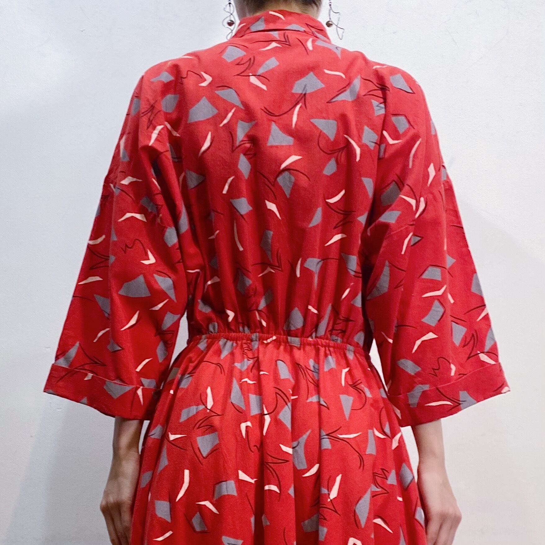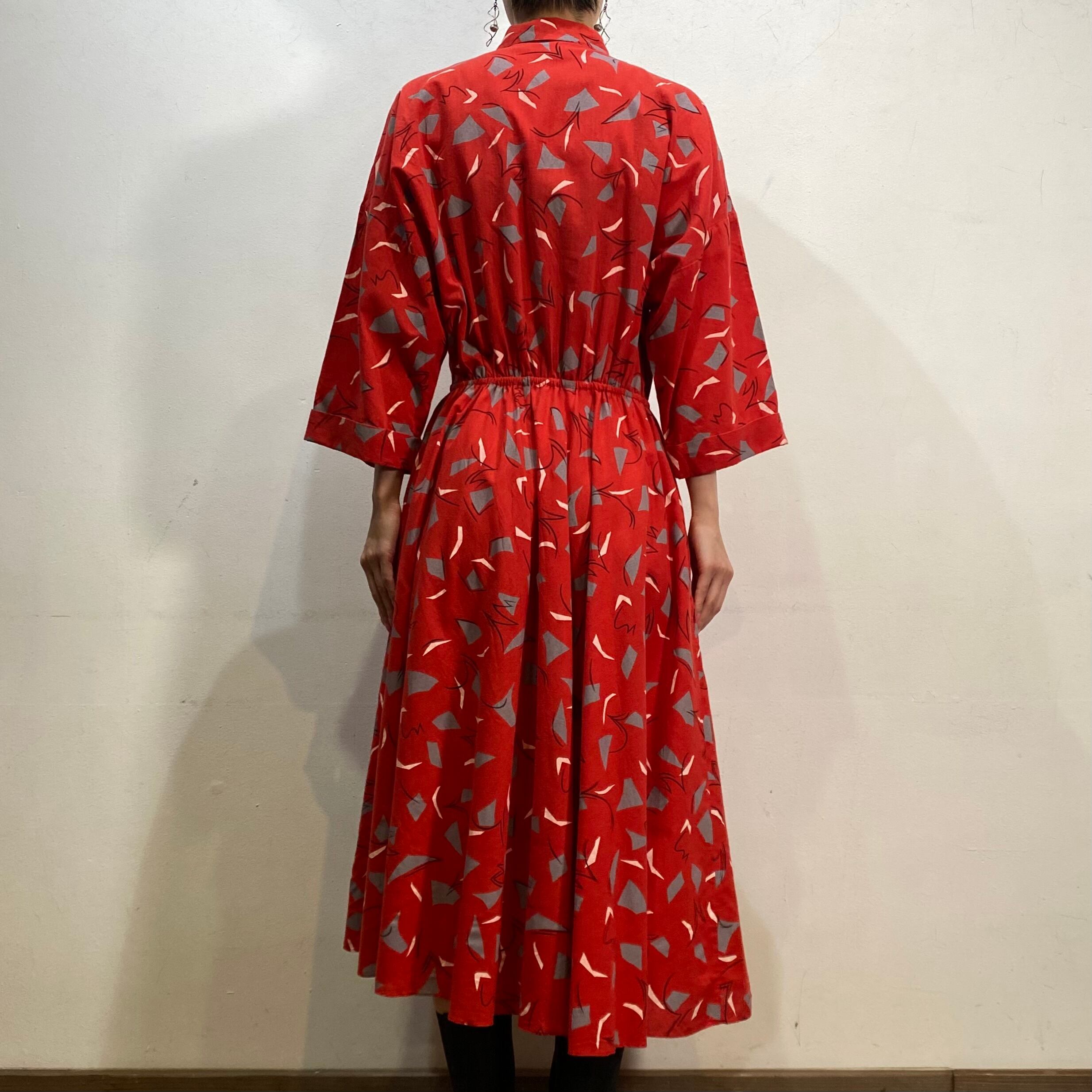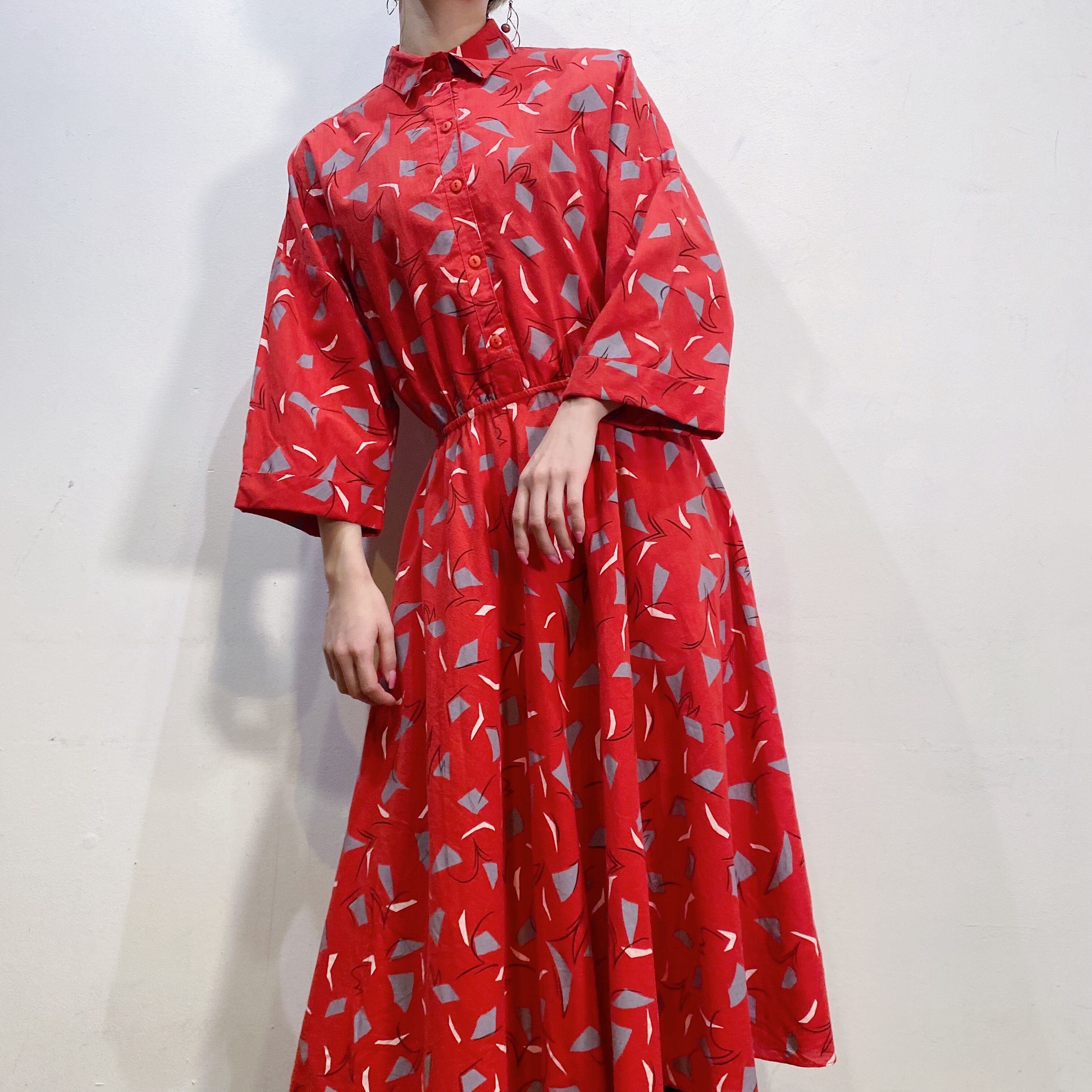 アートのような不思議な柄が可愛い、80年代のシャツワンピースです。