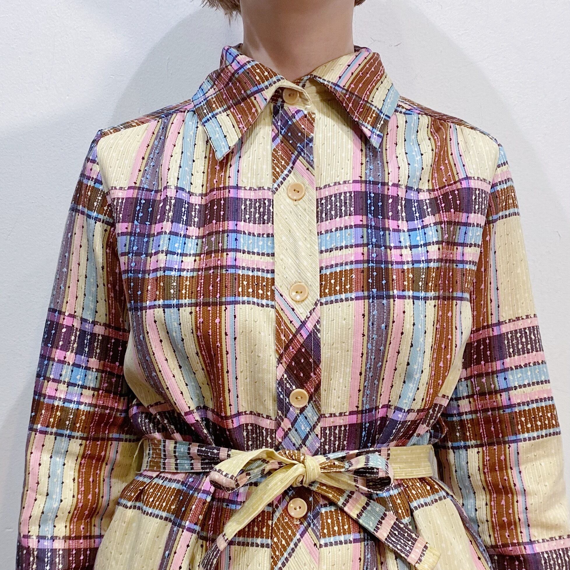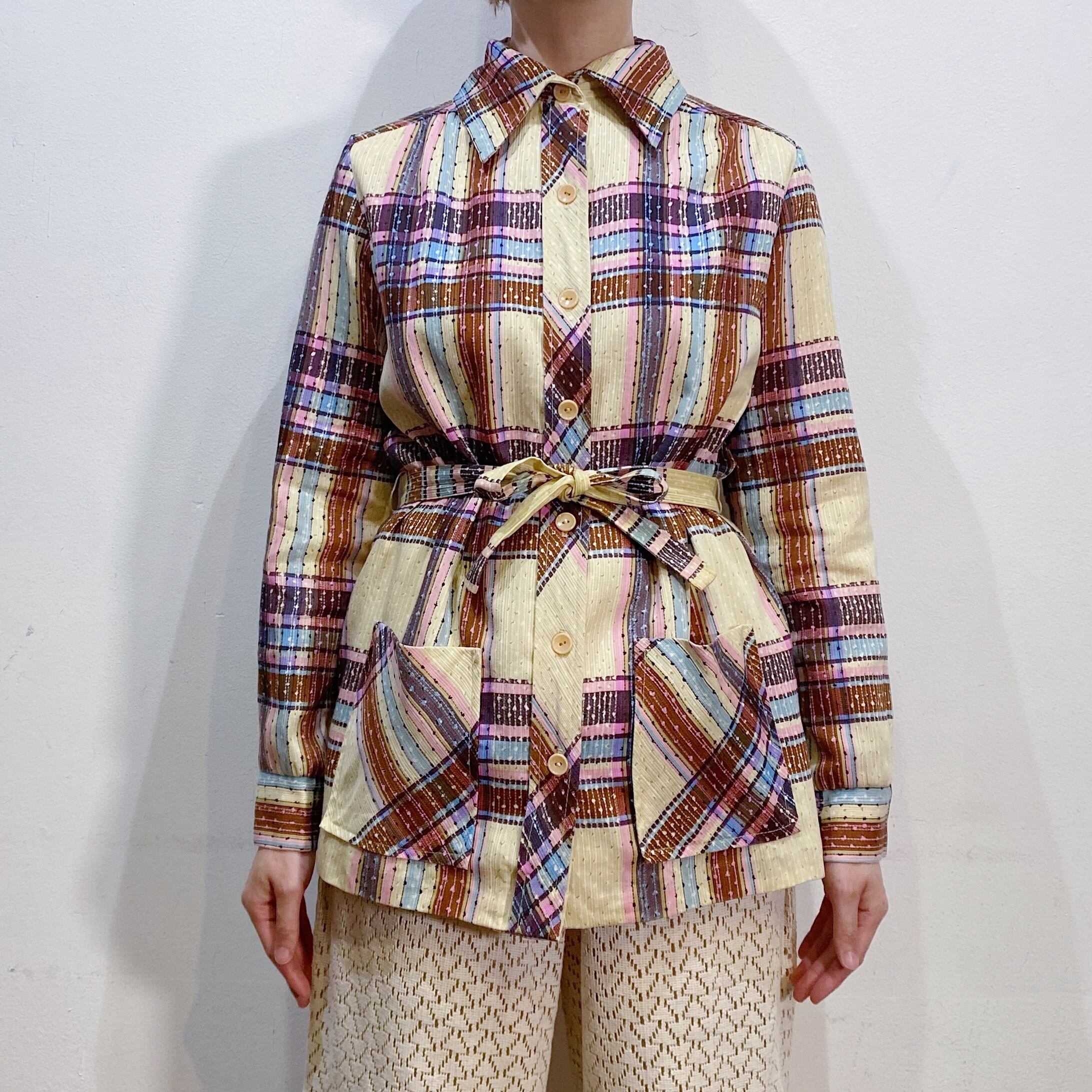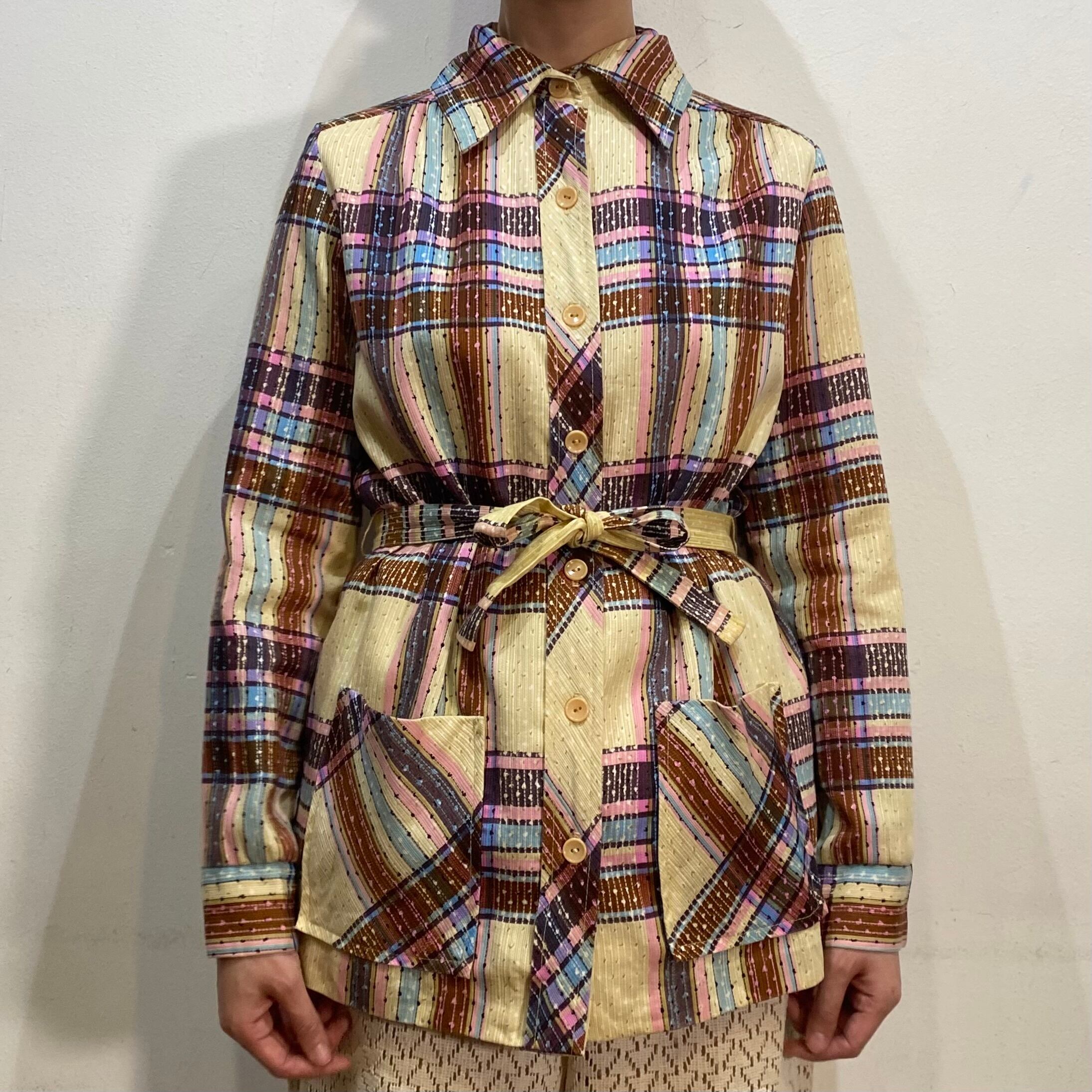 ベージュ、ピンク、ブラウンの色合いが可愛い70年代頃のトップス・ジャケットです。