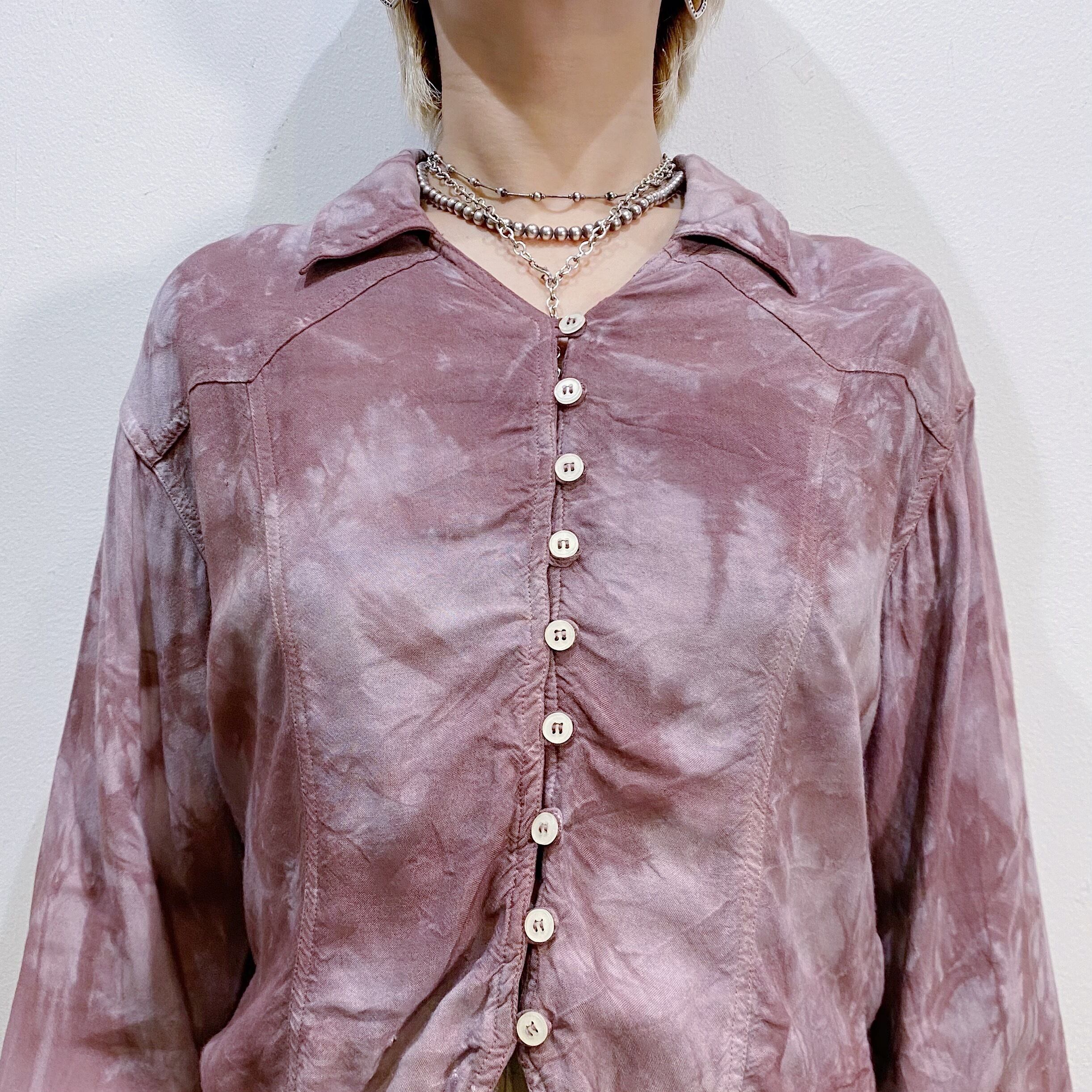 ブラウンとパープルの中間のような落ち着きのある色味で、タイダイでも大人可愛く着られる一枚。