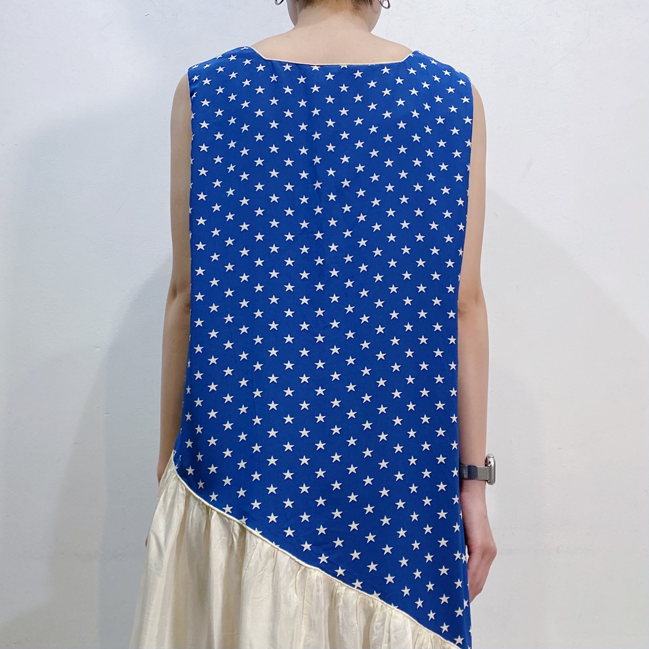 星のテキスタイルが可愛い、ノースリーブワンピースです。