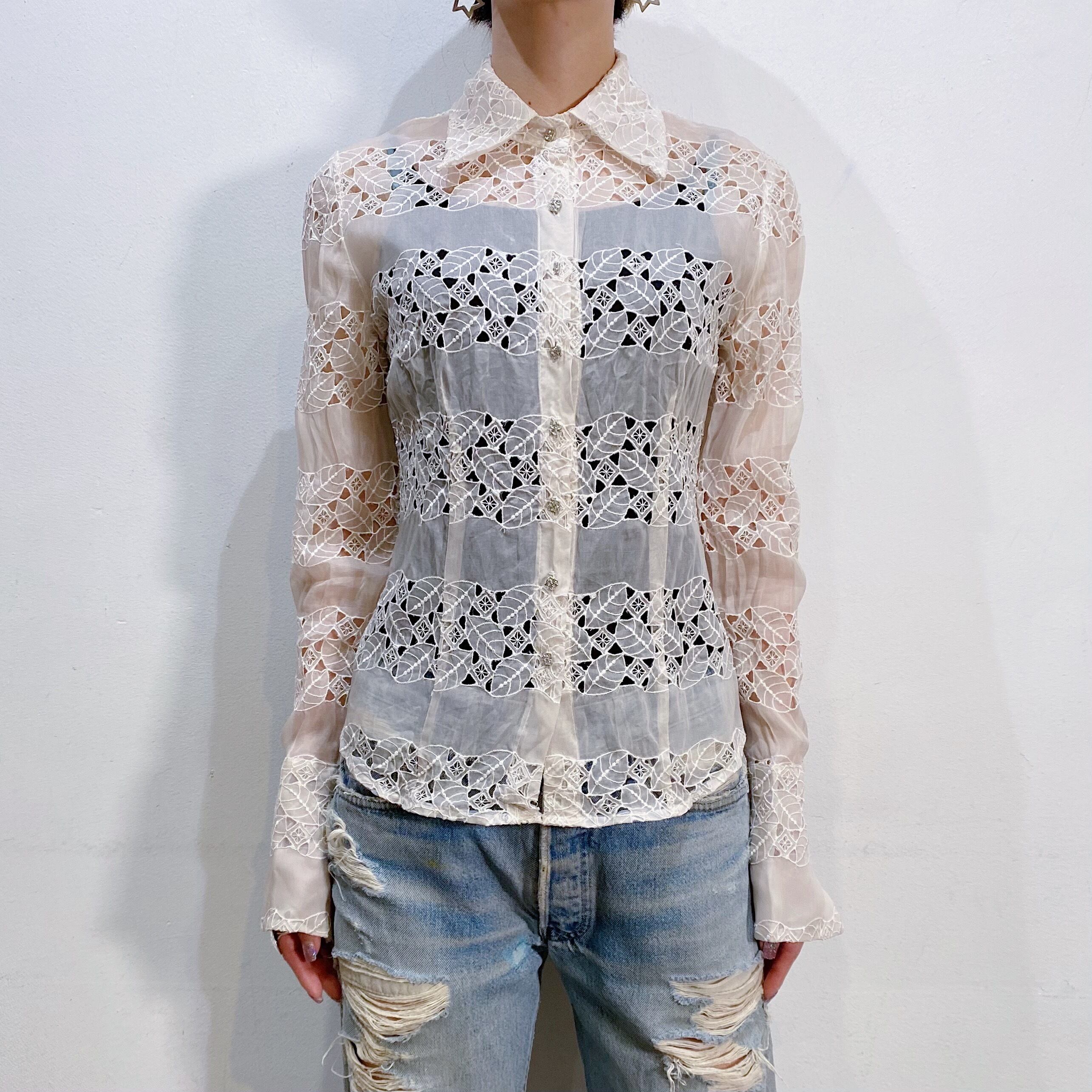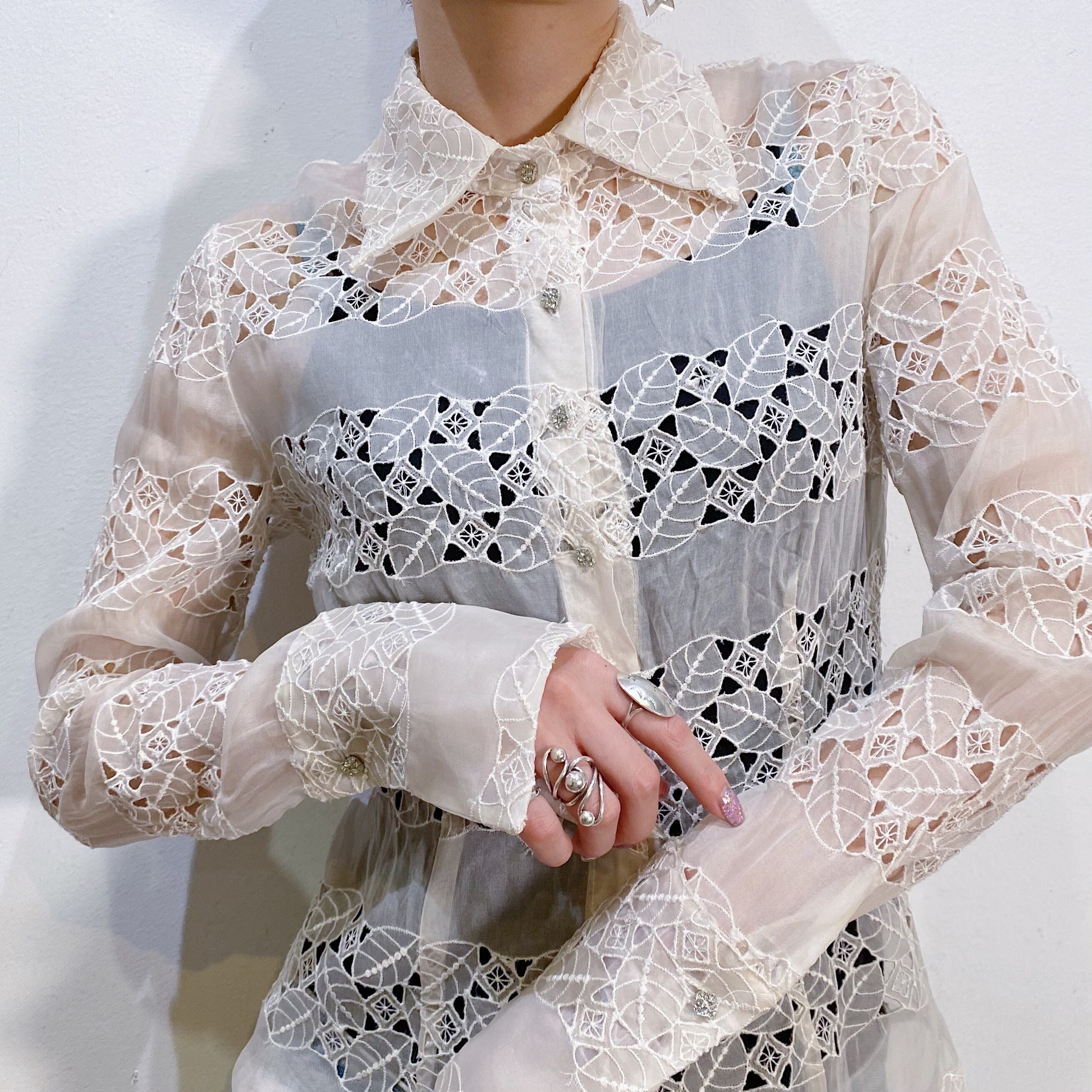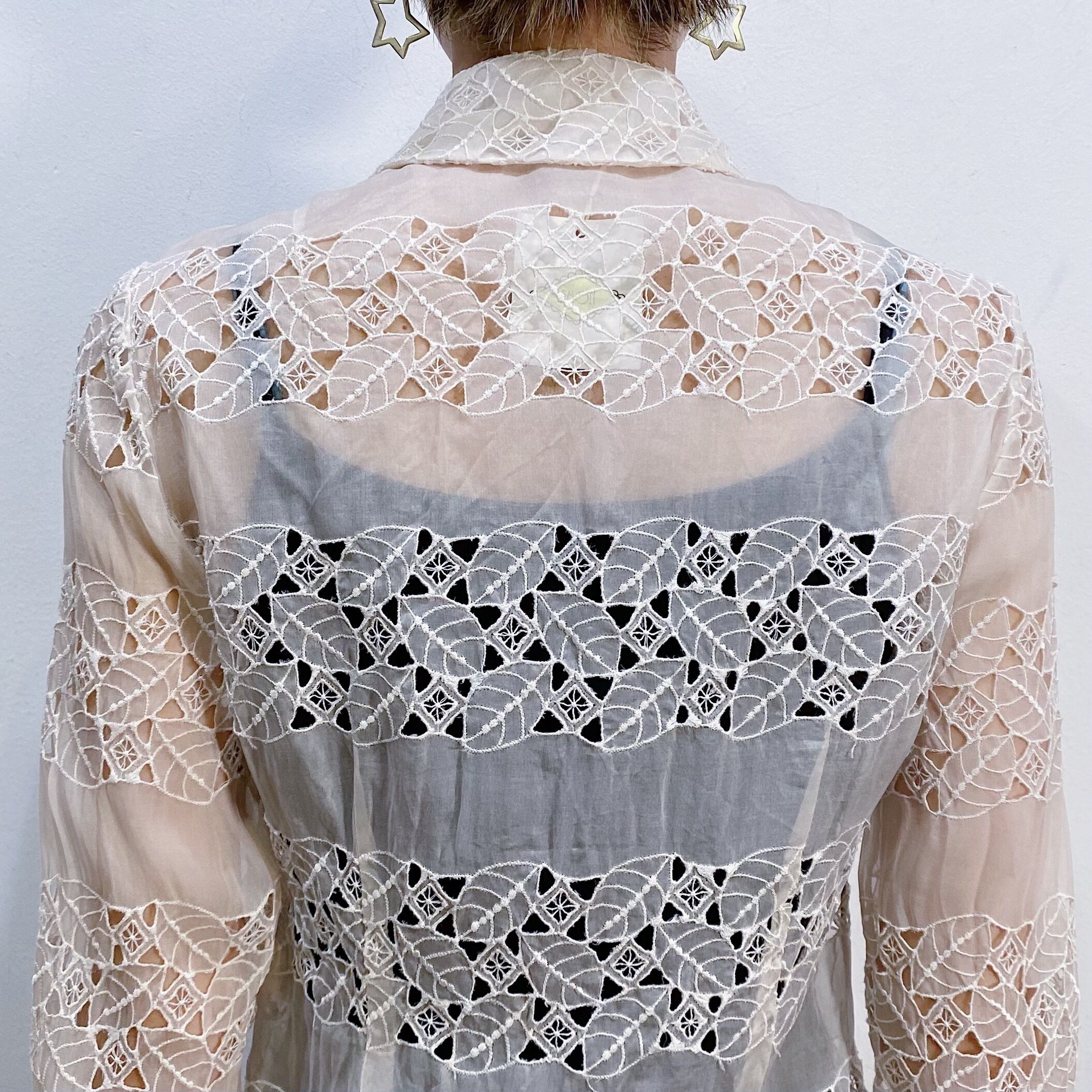 全体がシアーになっているので、透かしレース部分だけではなく肌が透ける感じがとっても素敵ですよ。