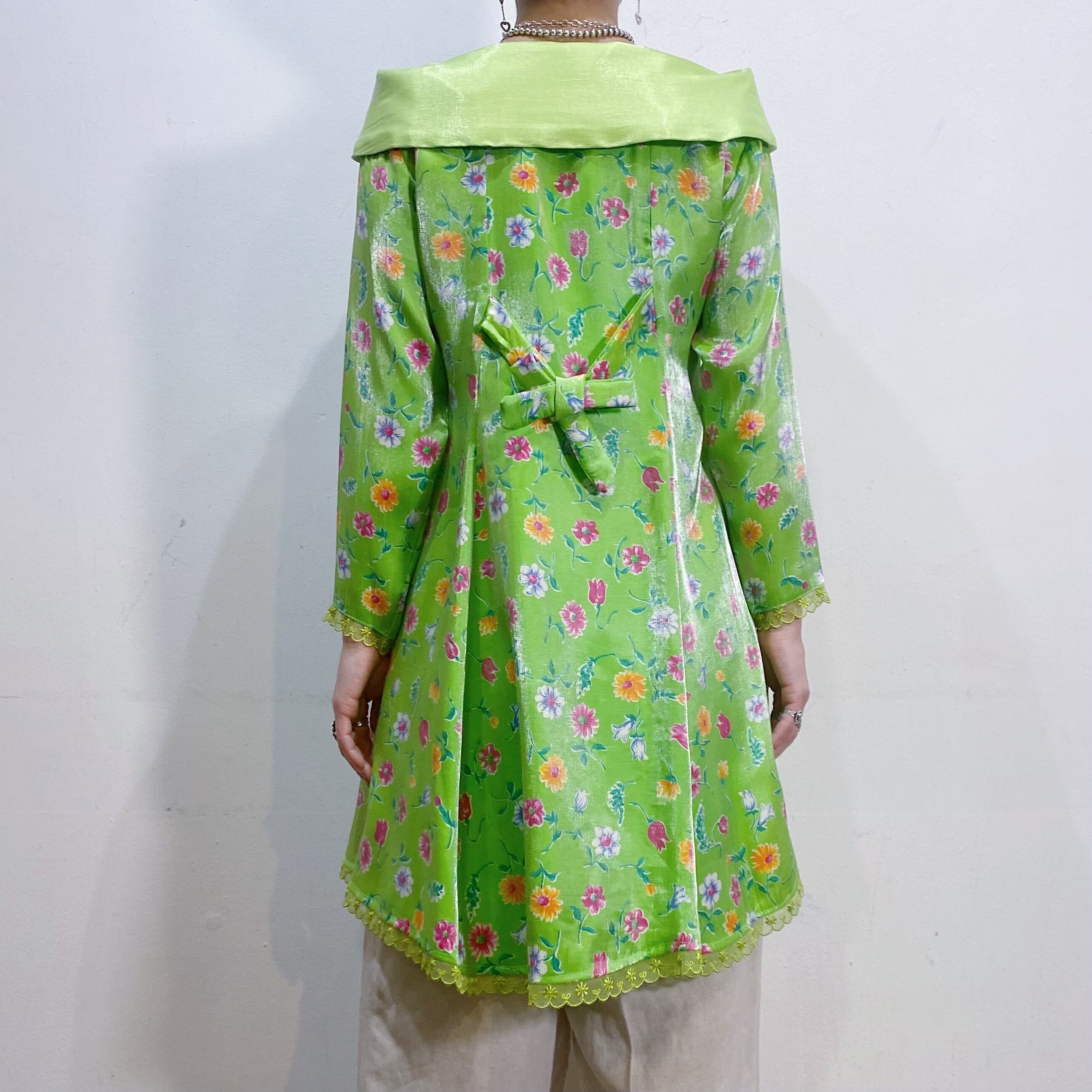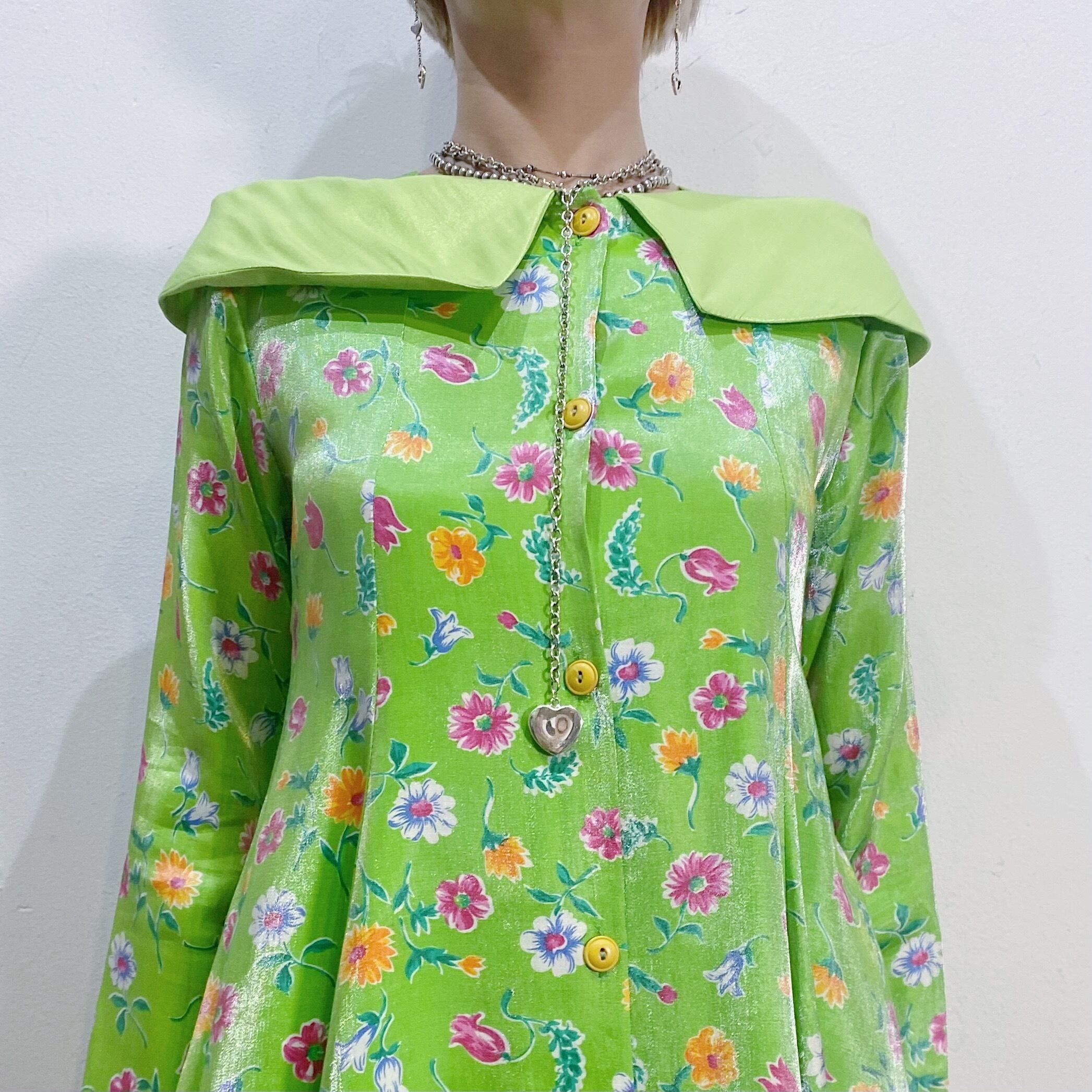 ライトグリーンベースにカラフルなお花柄がとっても可愛い、90年代のミニワンピースです。