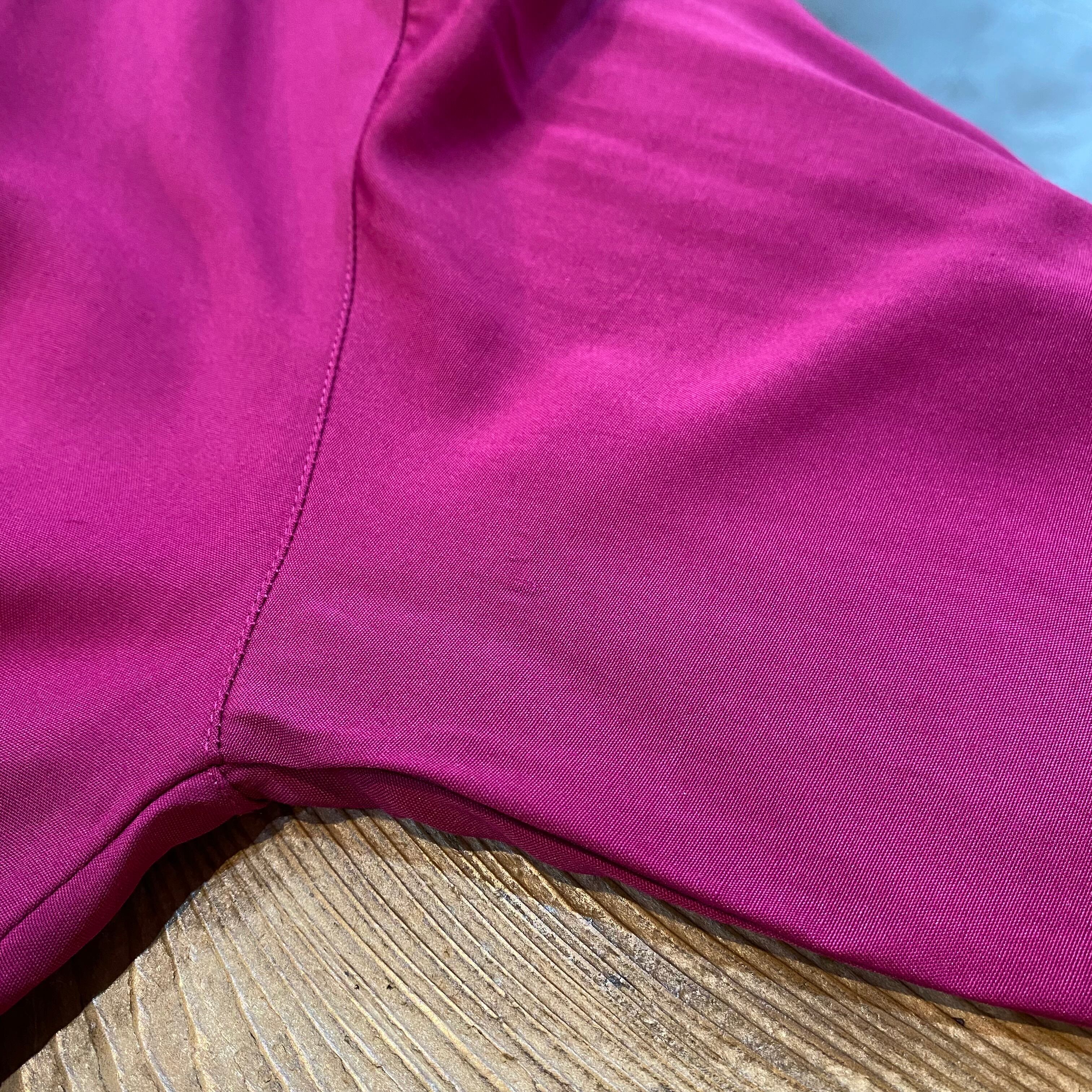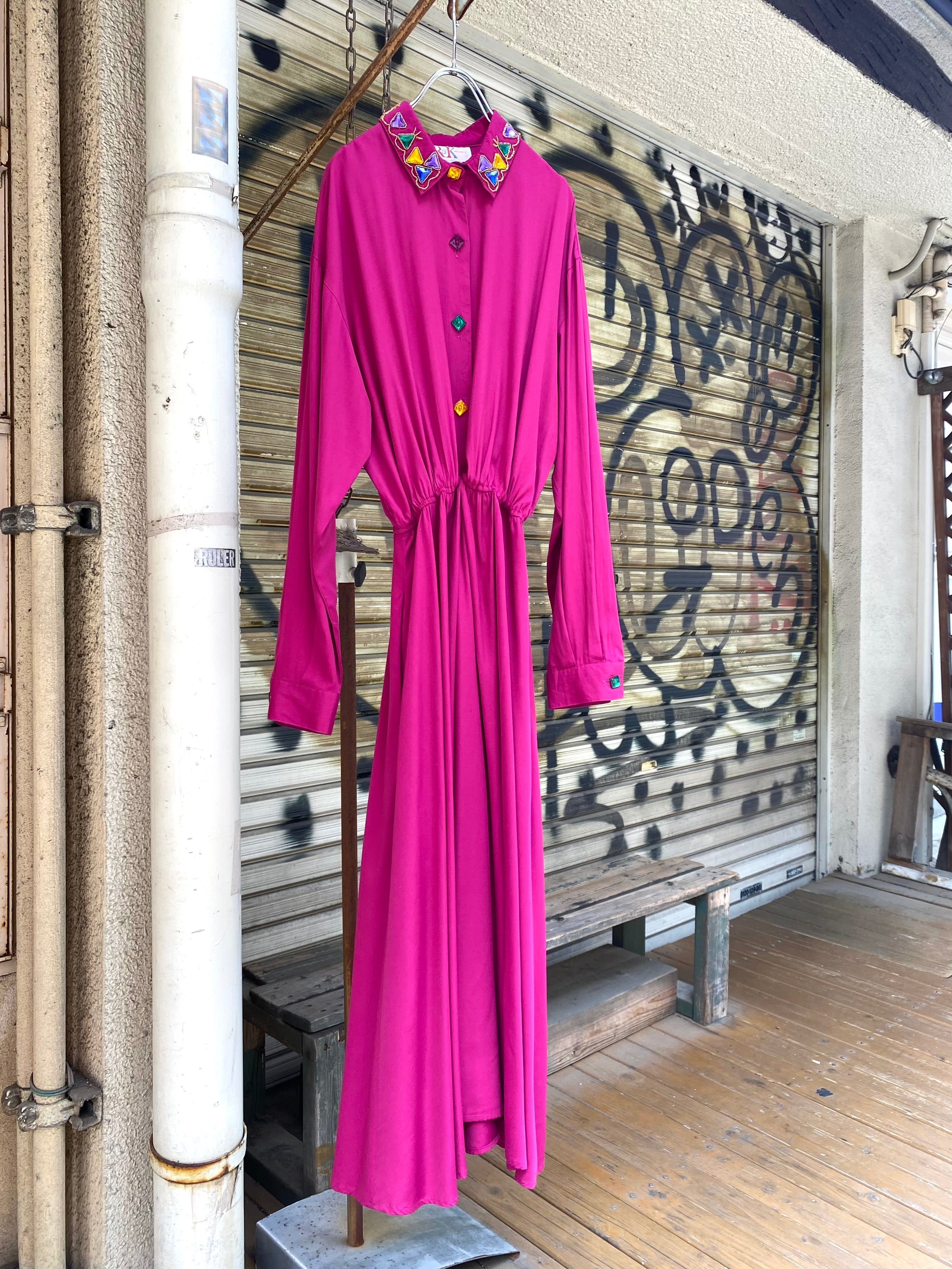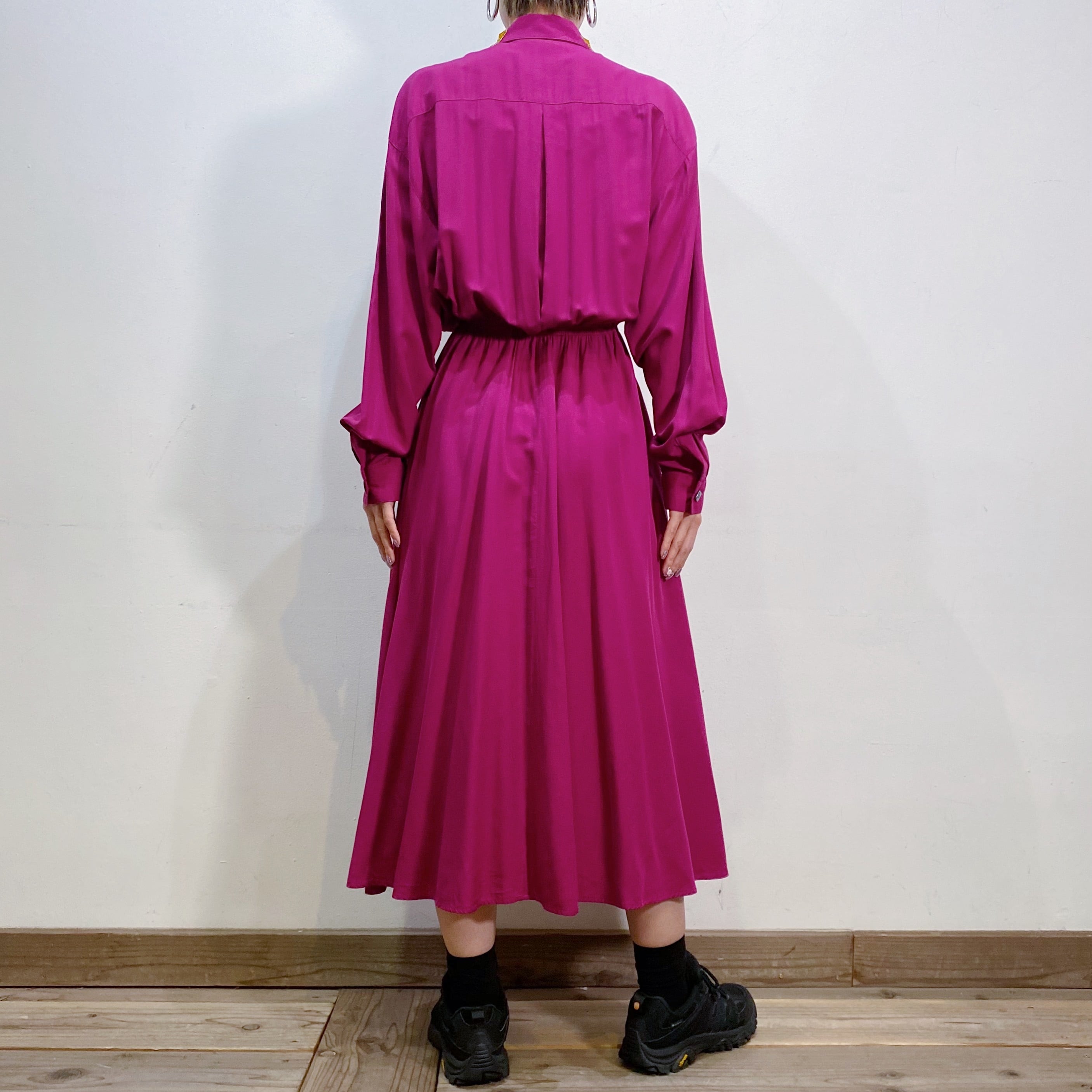 鮮やかなマゼンタカラーがパッと目を惹く、80年代のシャツワンピースです。