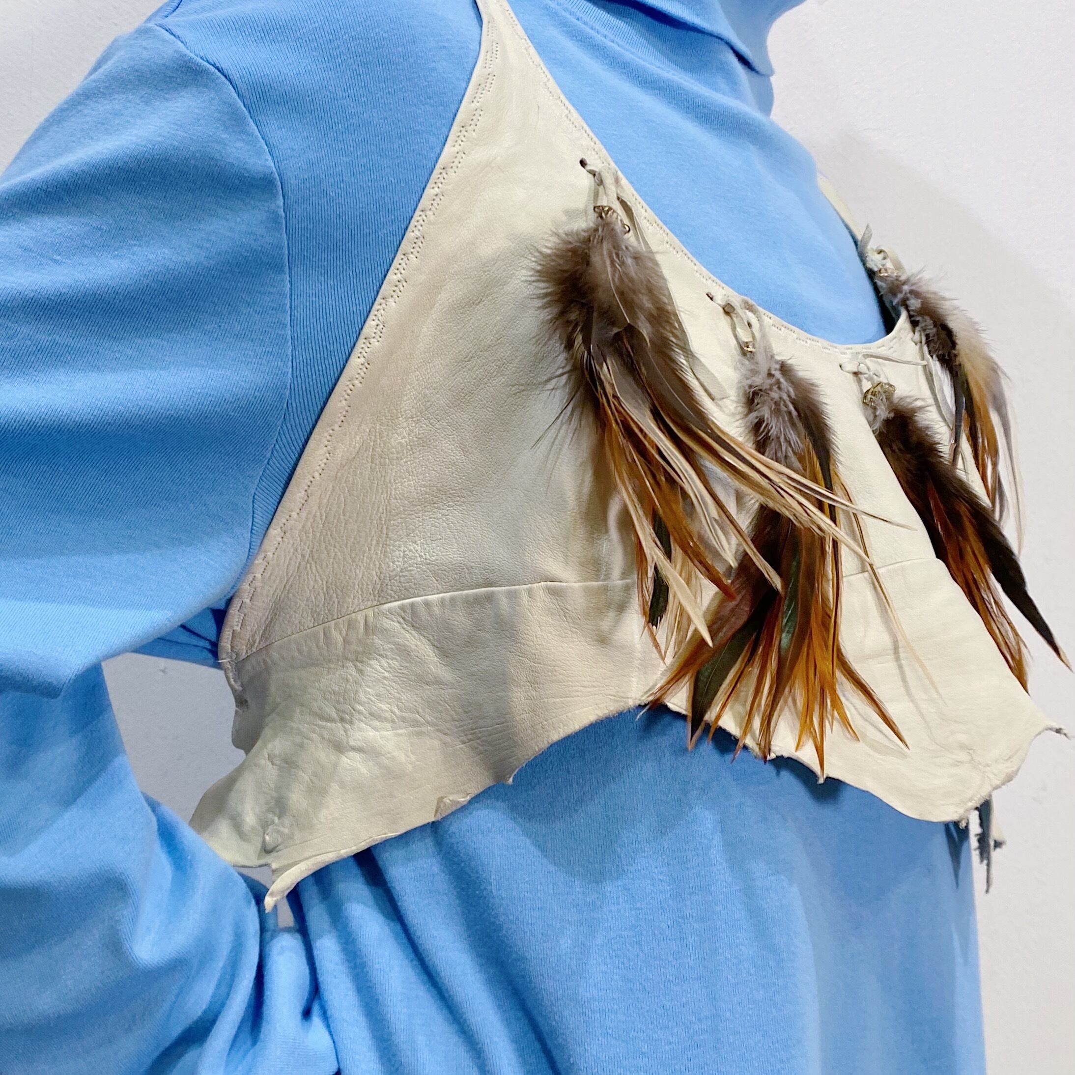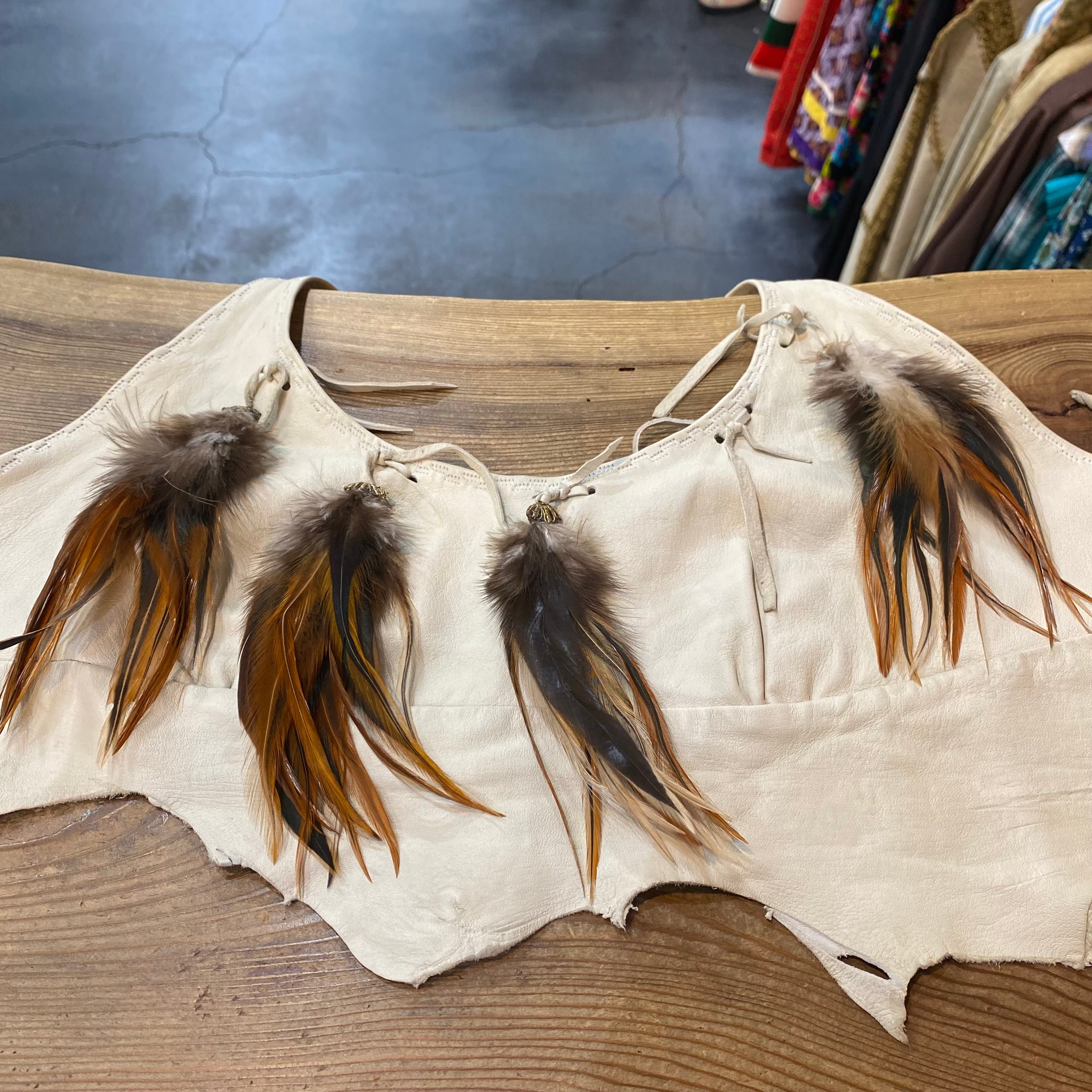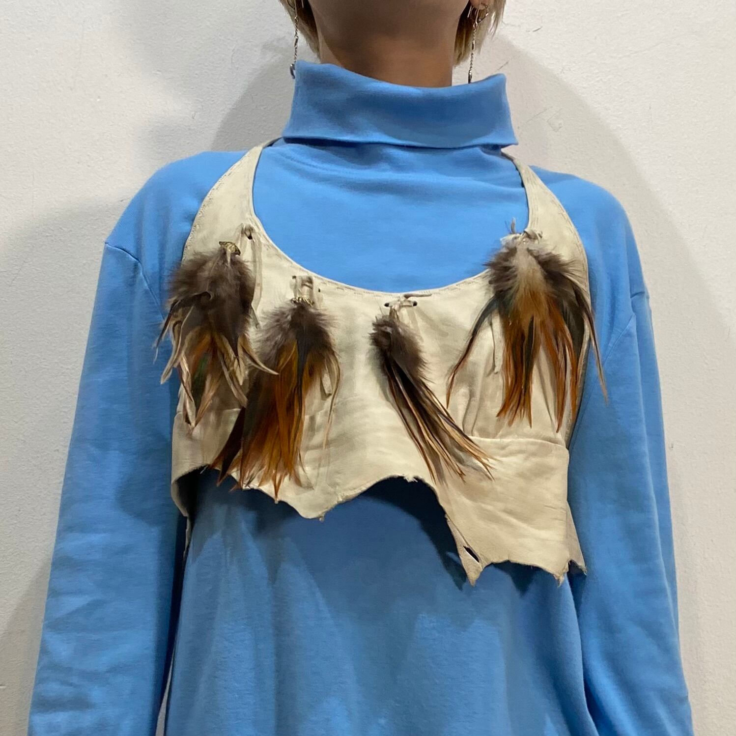 レザーに羽の装飾が可愛い、70年代のベストです。