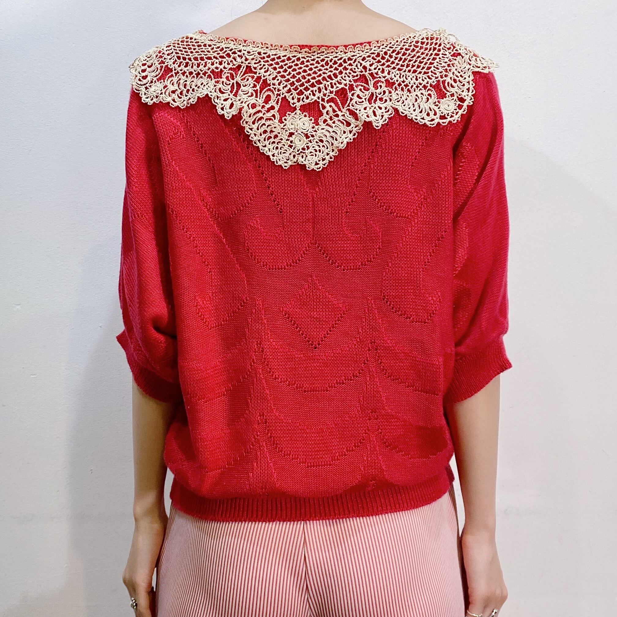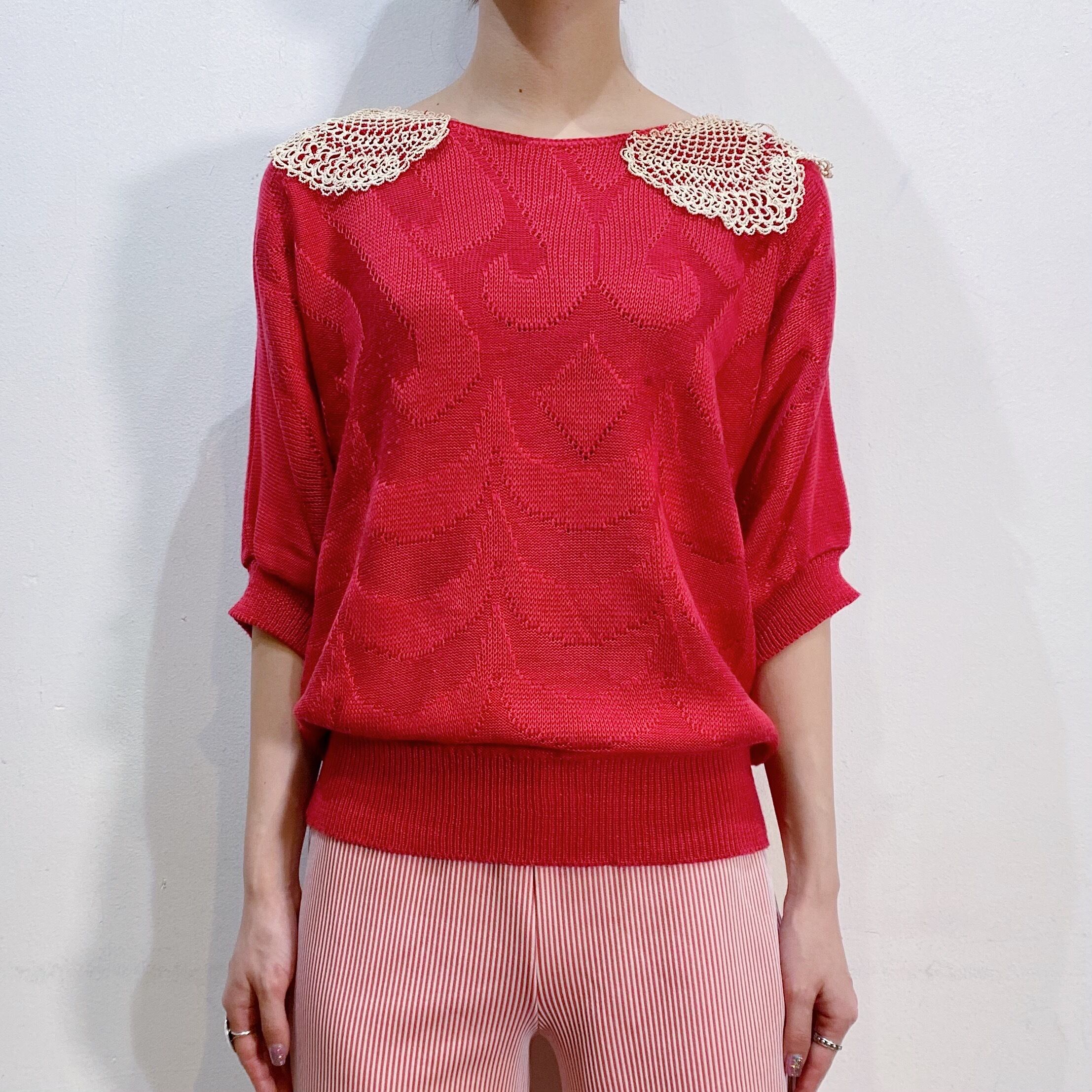 鮮やかなピンクの色合いが可愛い、80年代のサマーニットトップスです。