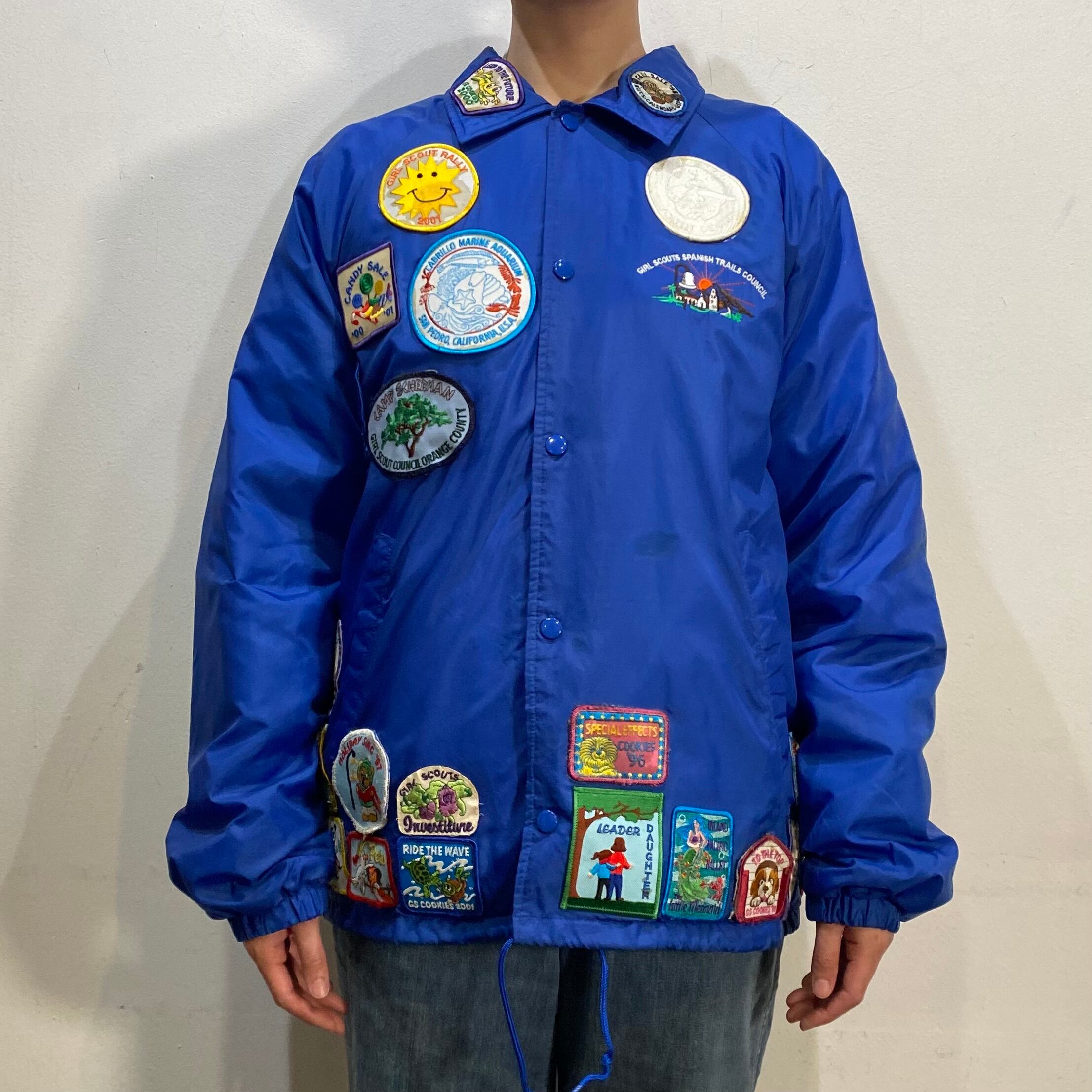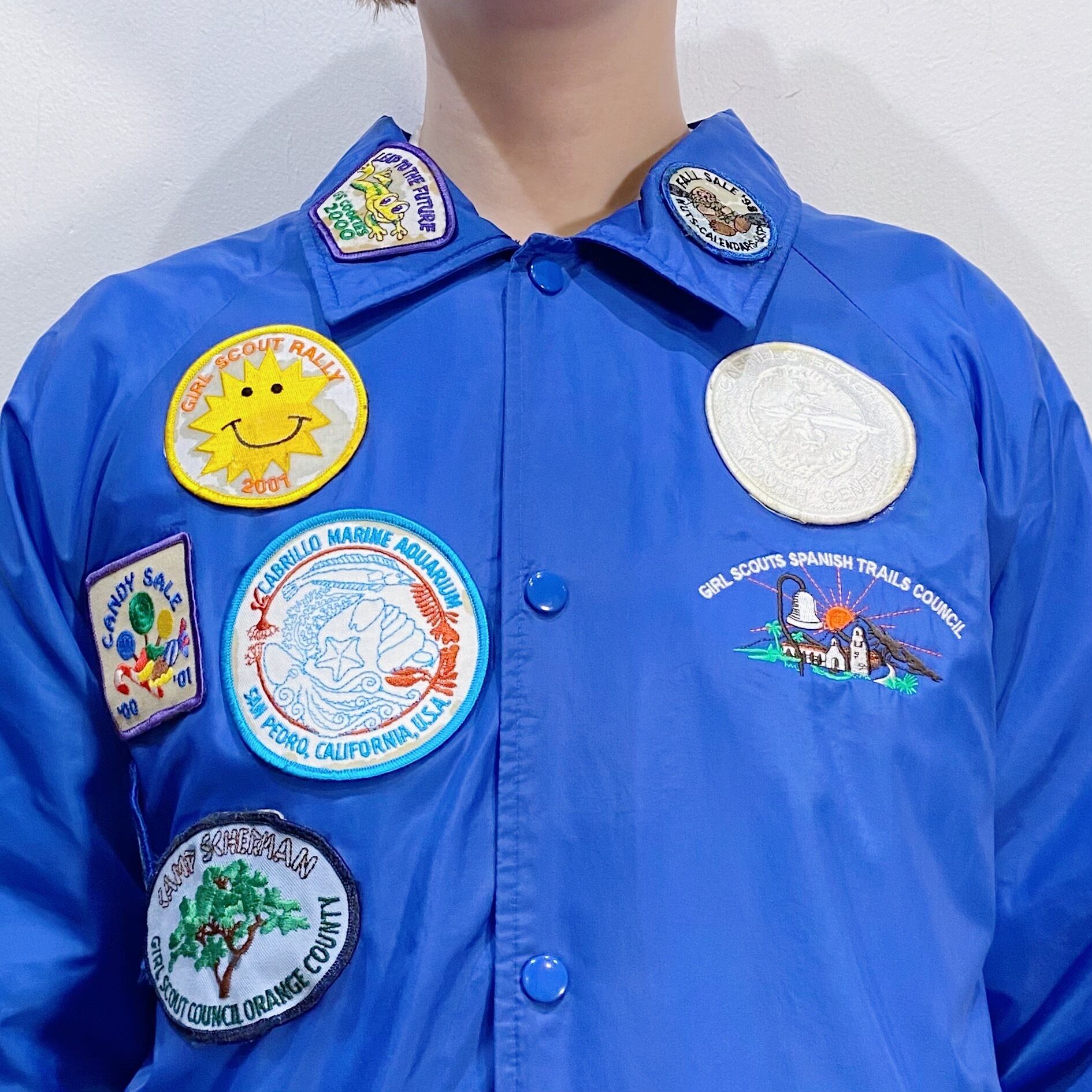 可愛くユニークなワッペンがフロントにもバックにもびっしりと贅沢に縫い付けられた、ナイロンジャケットです。