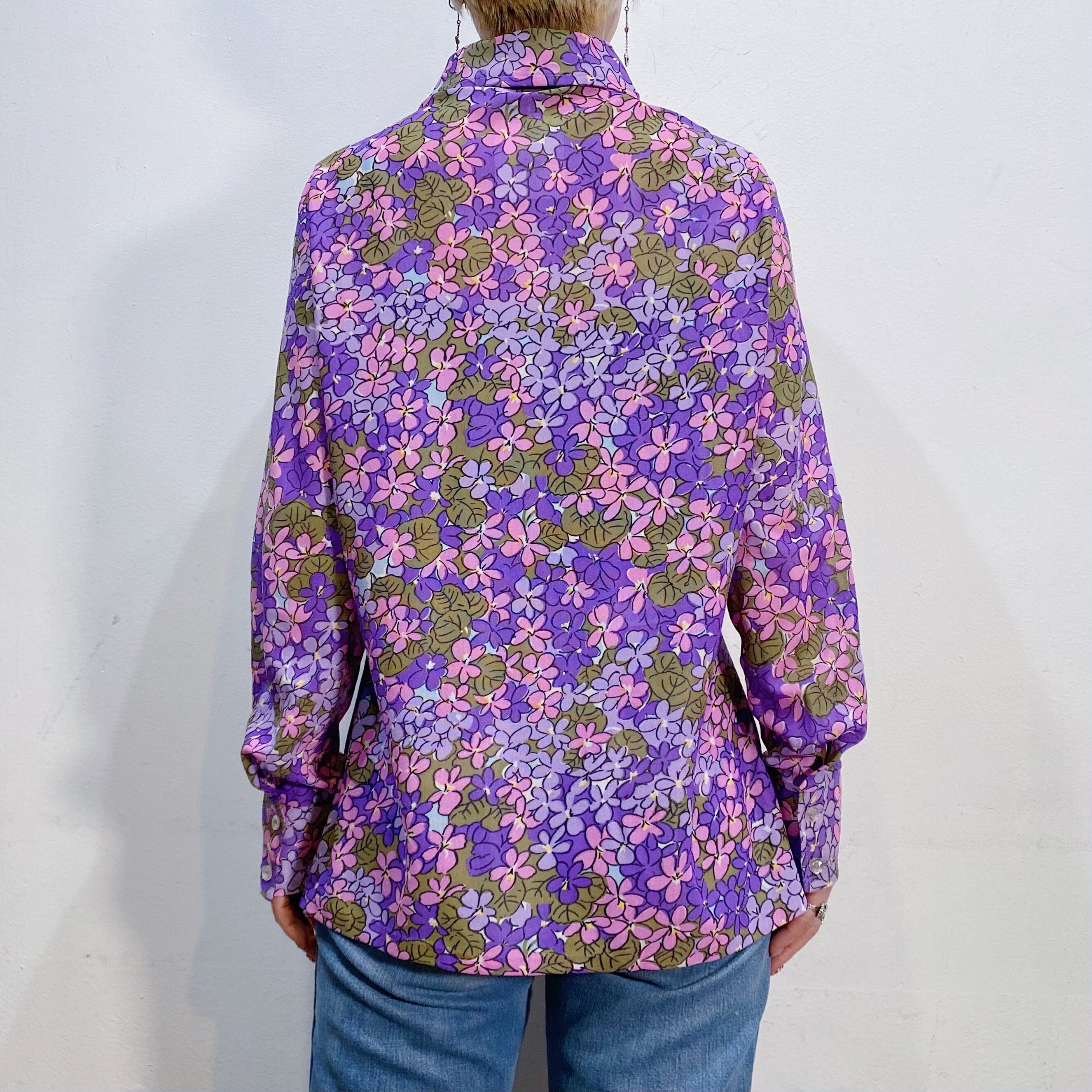 まるで紫陽花のような色合いの花柄が可愛い、70年代の長袖シャツです。