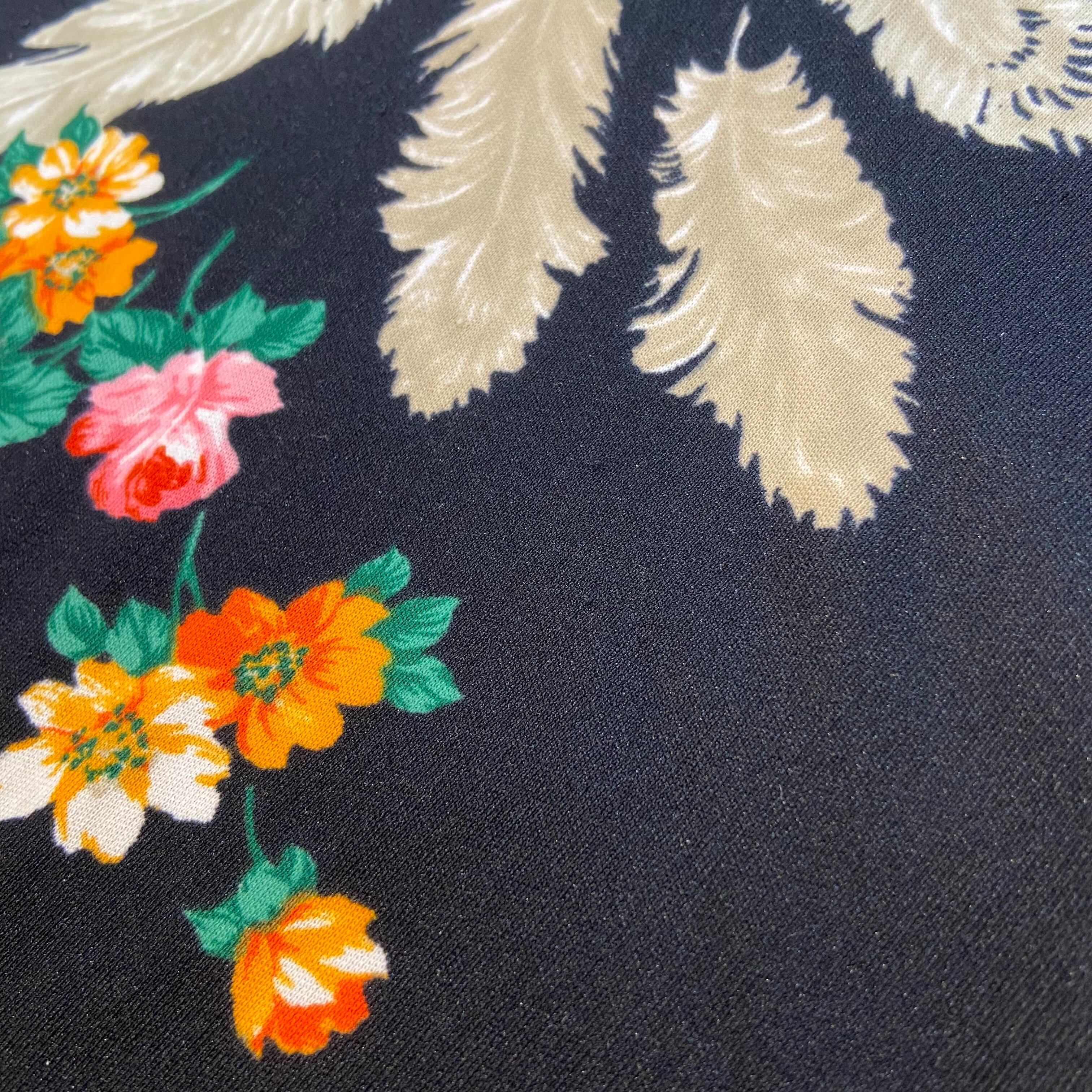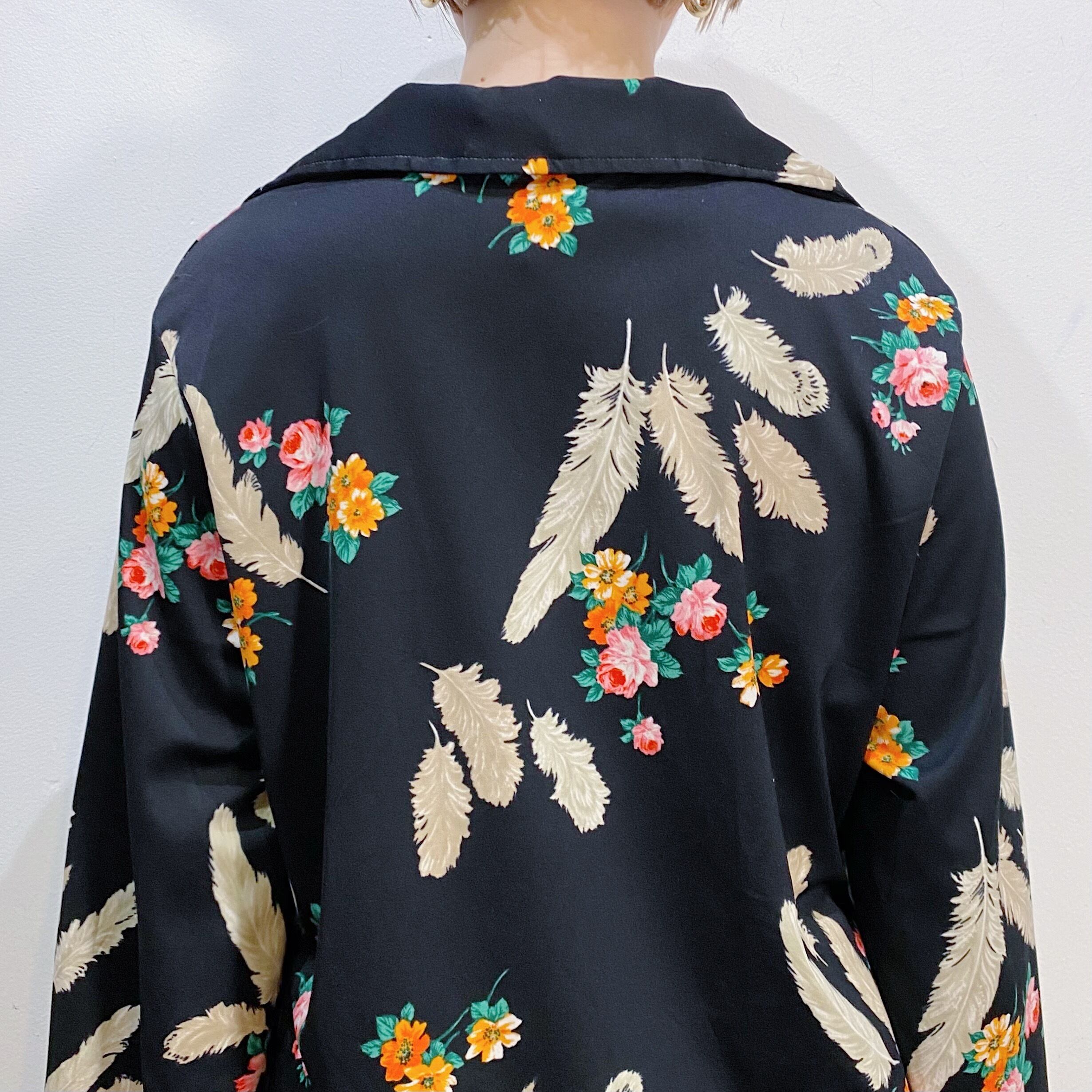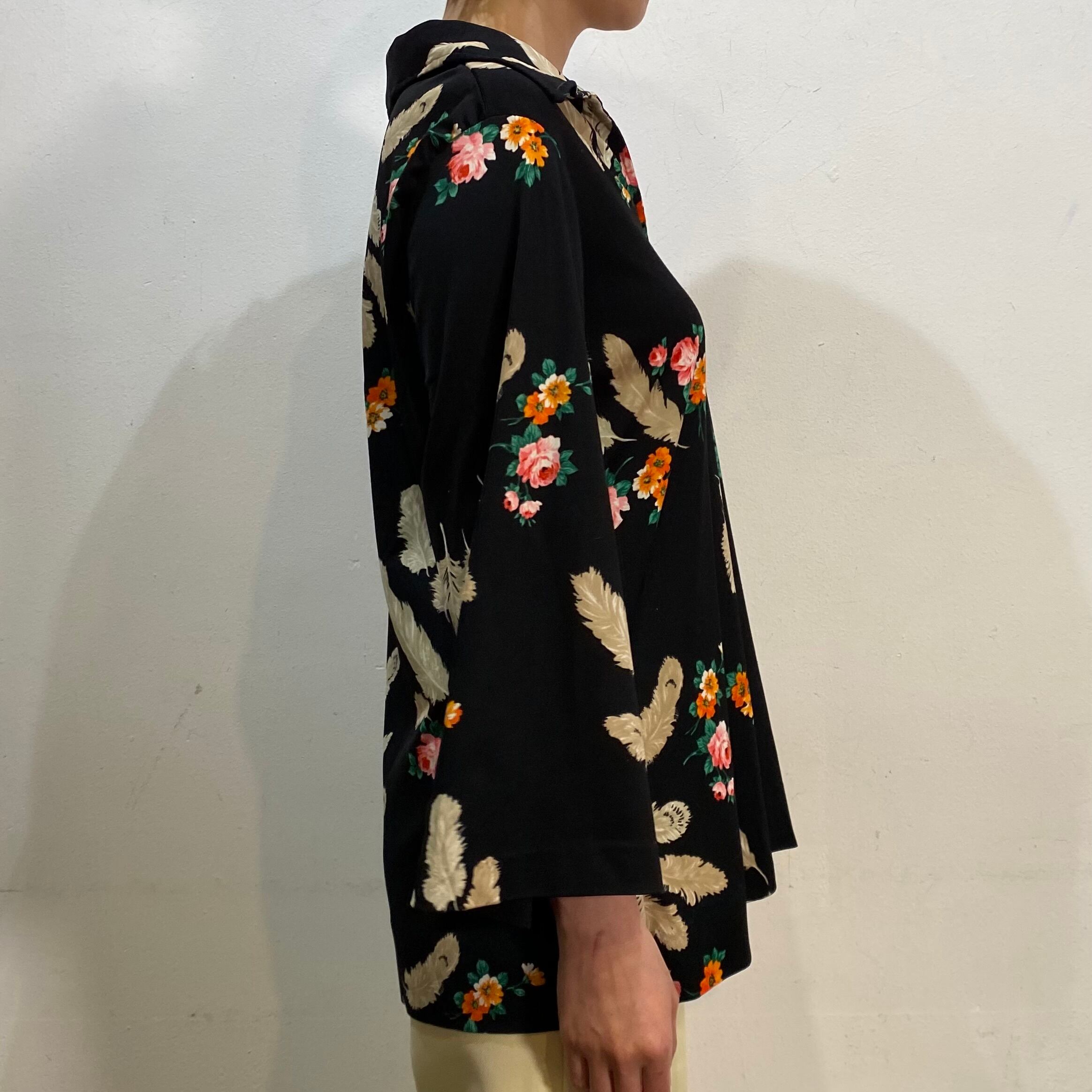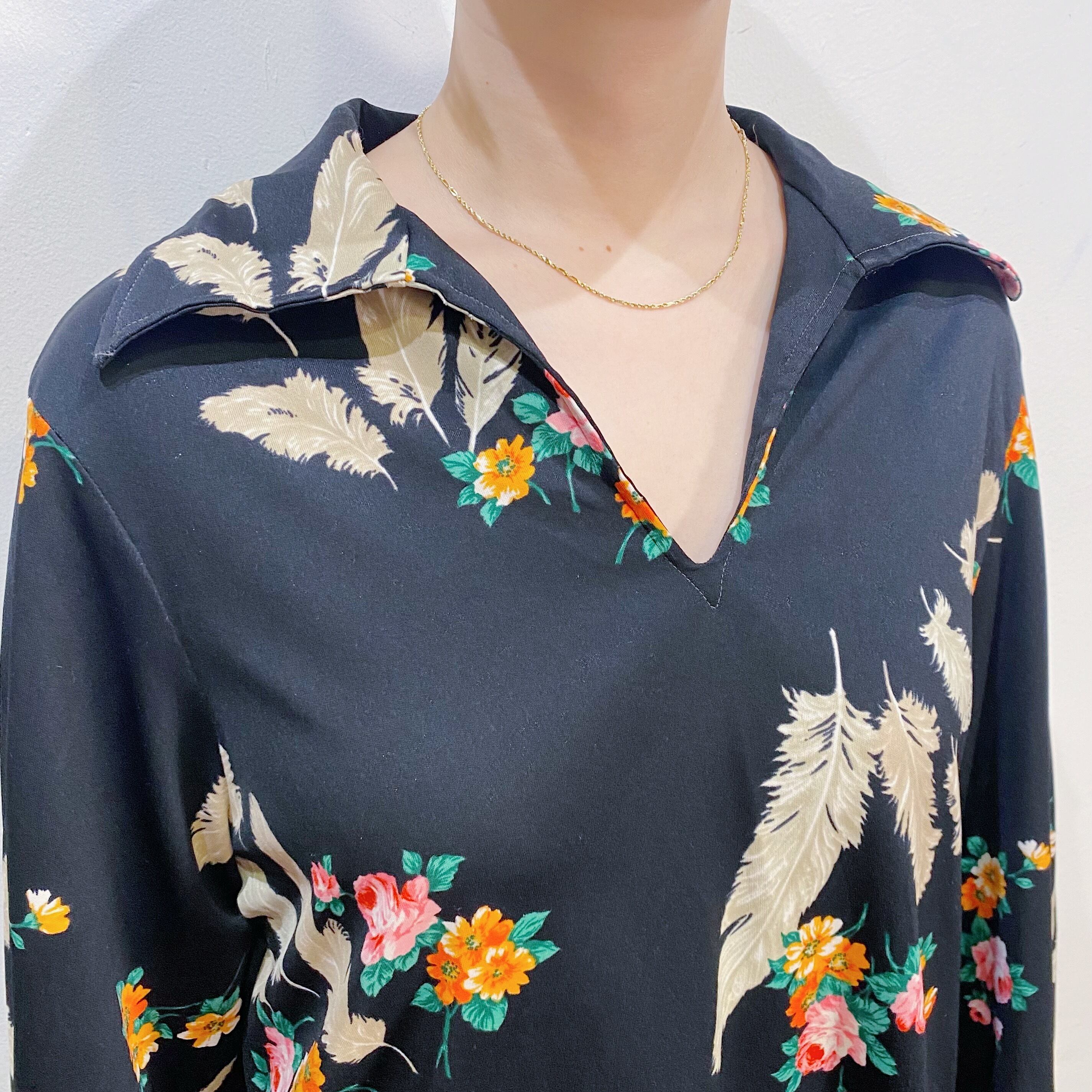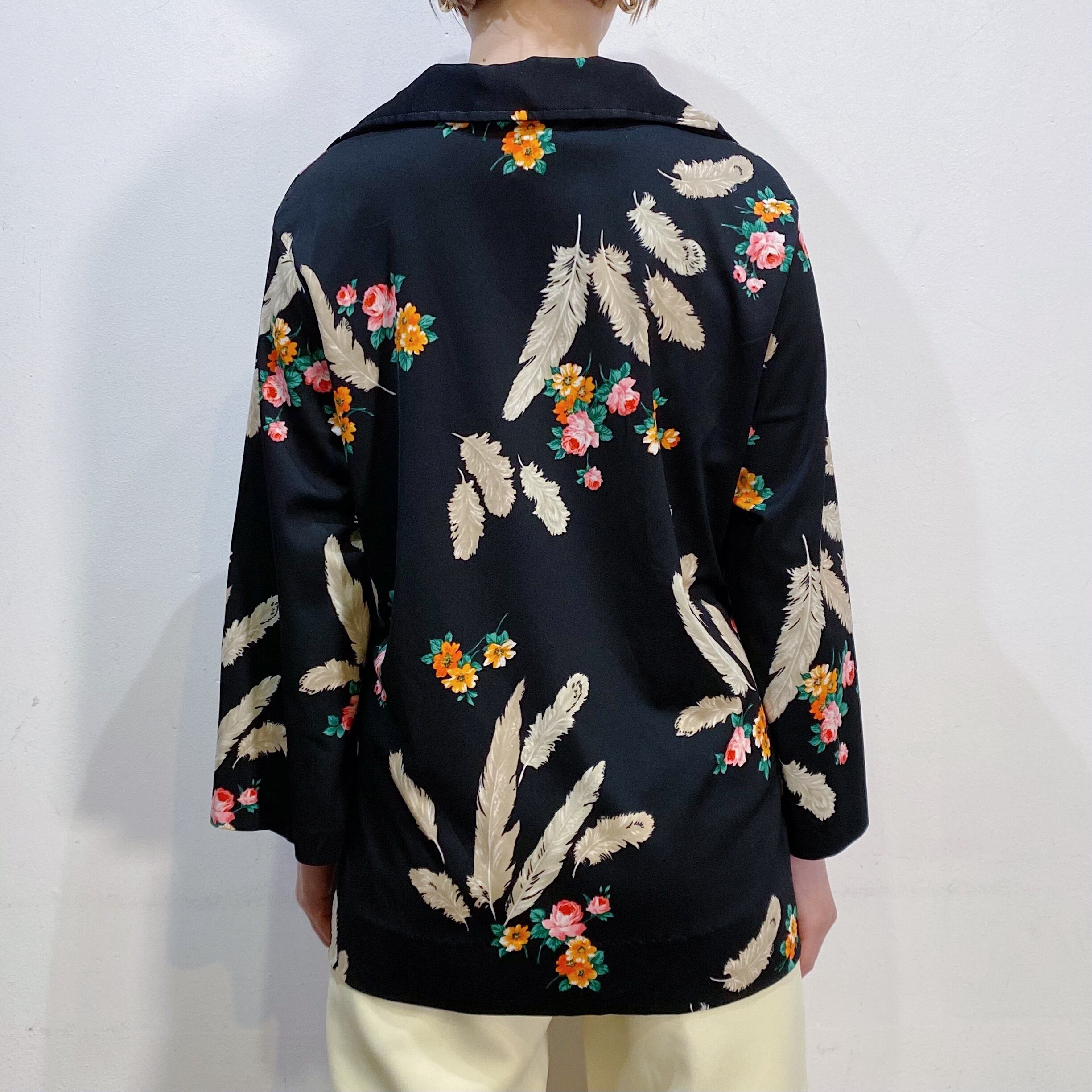 フェザーやお花のプリントが可愛い70年代のトップスです。