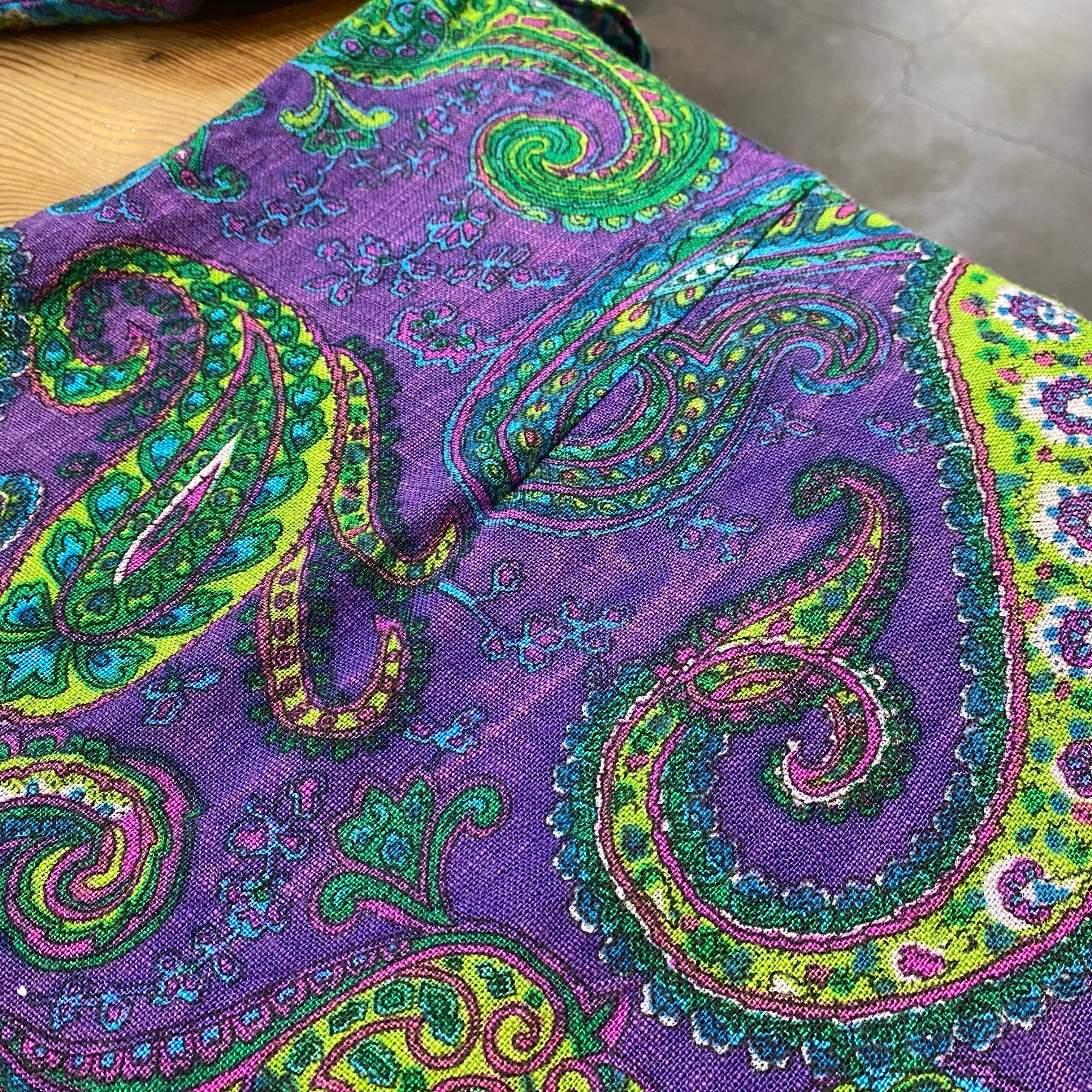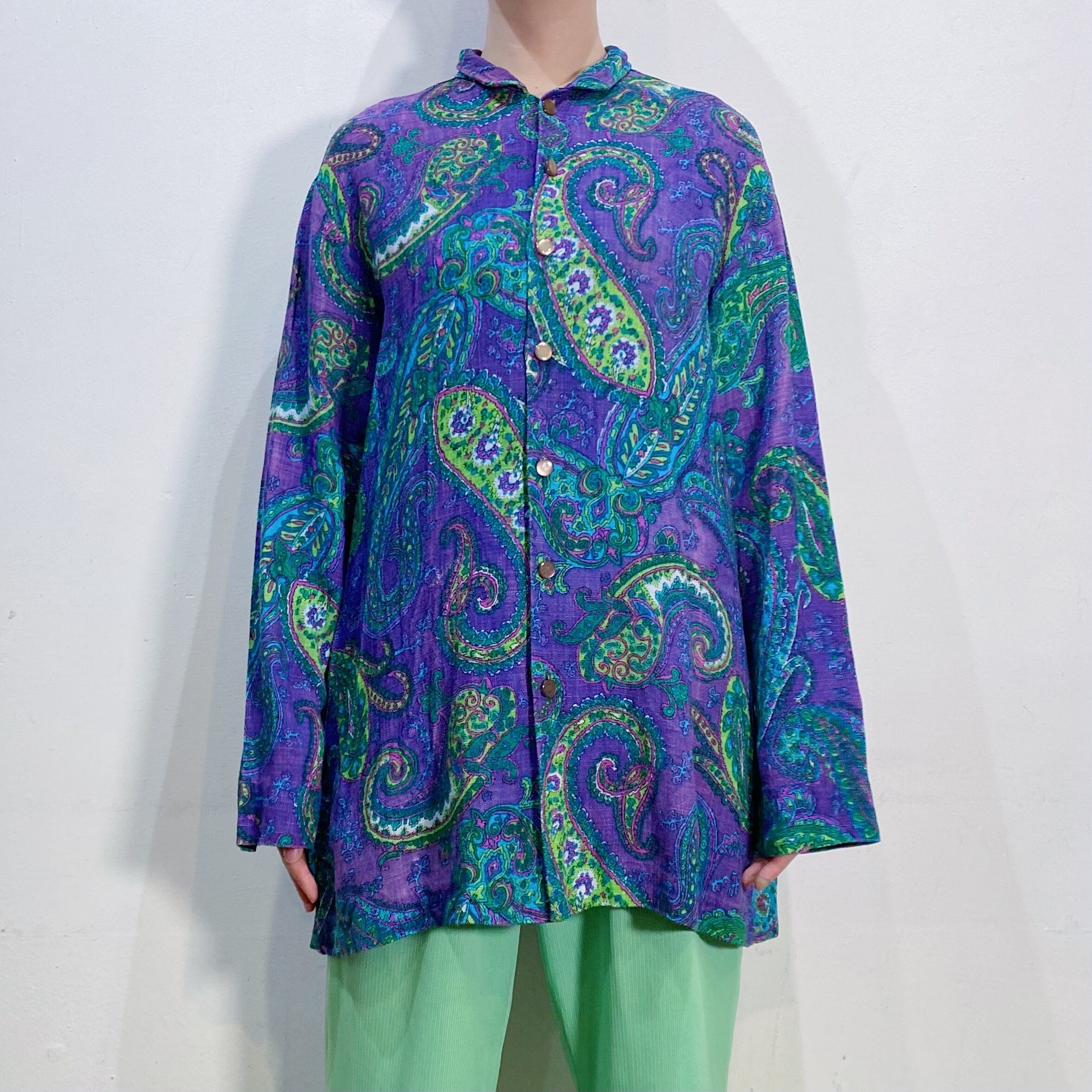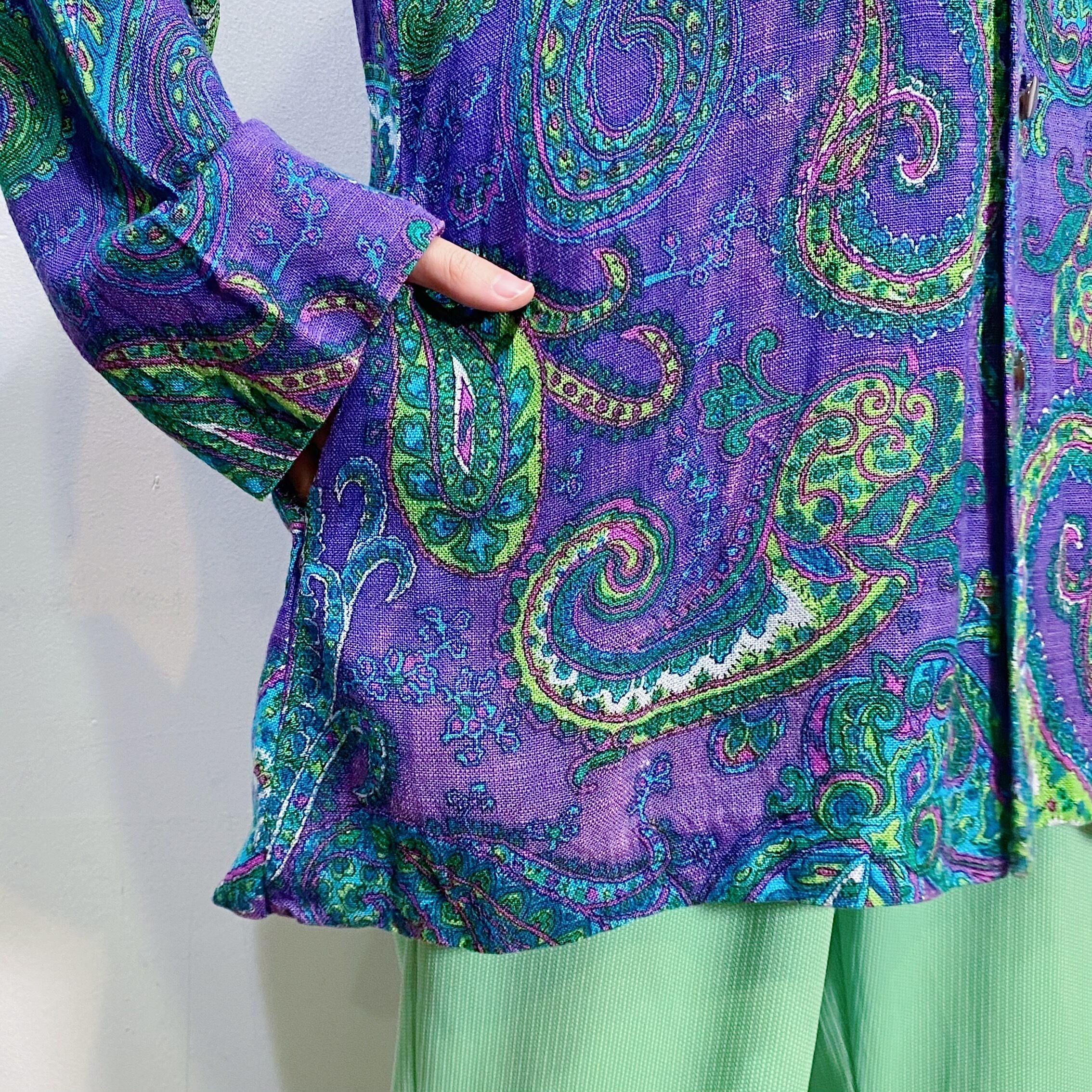 パープルやグリーンのペイズリー柄が可愛い、60~70年代の長袖シャツです。