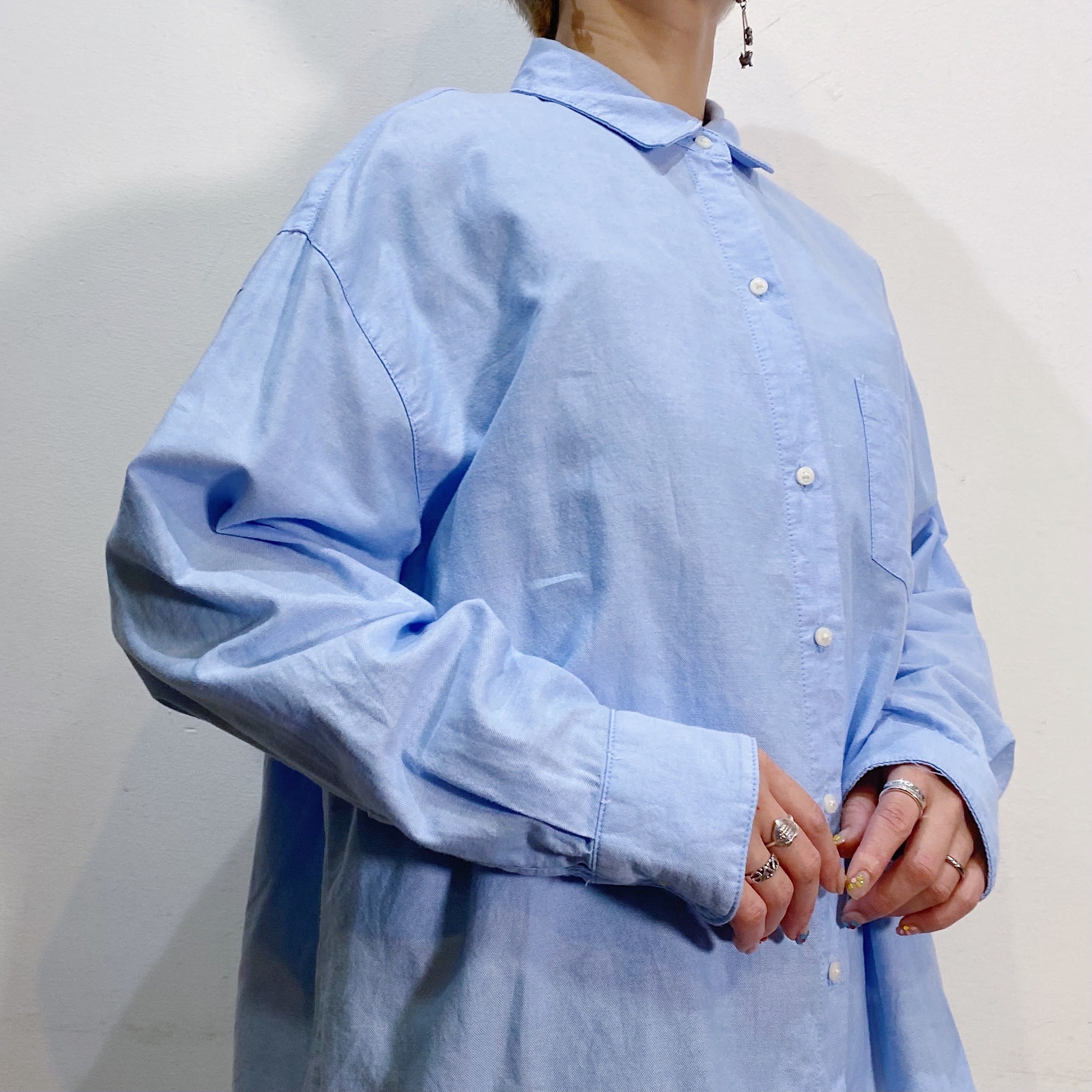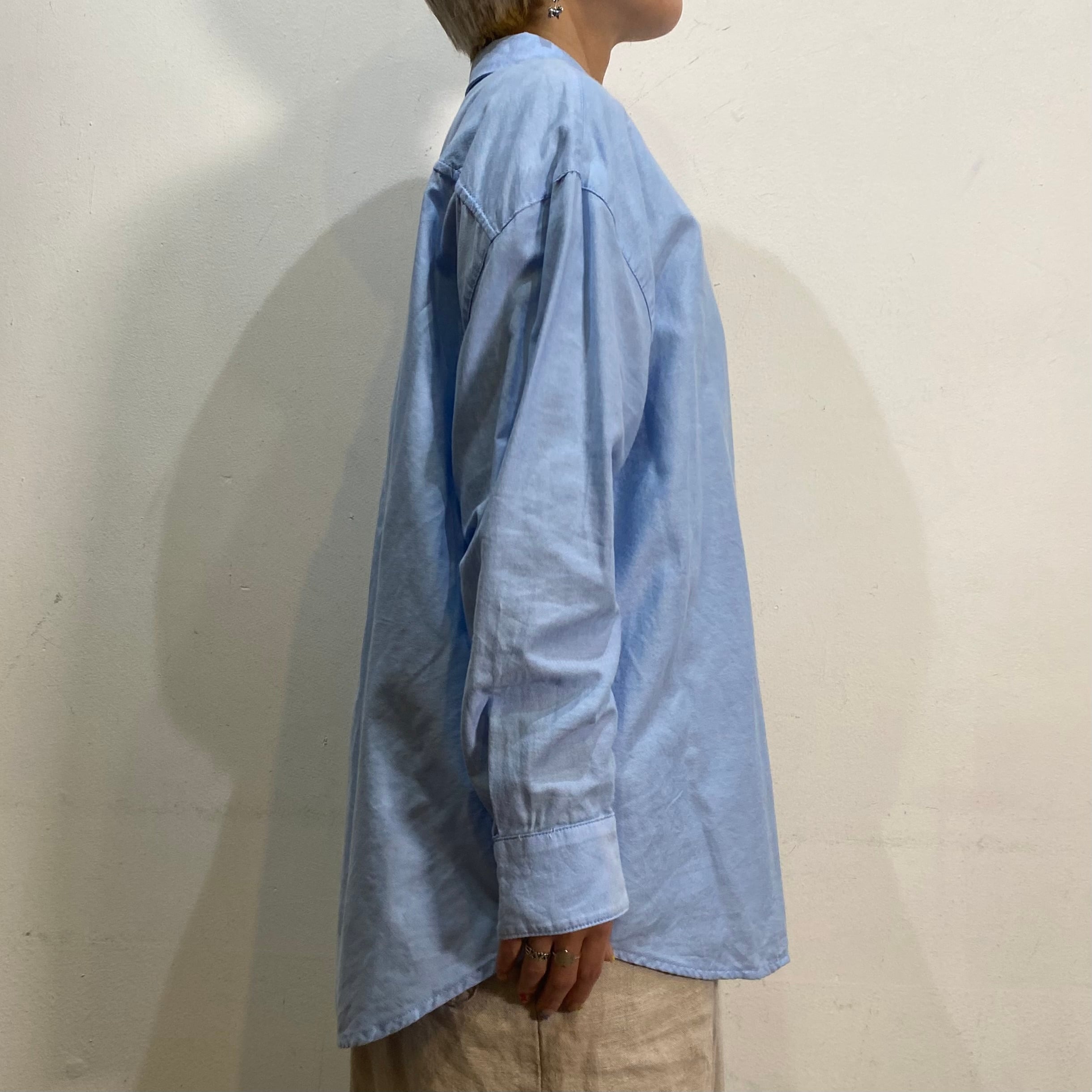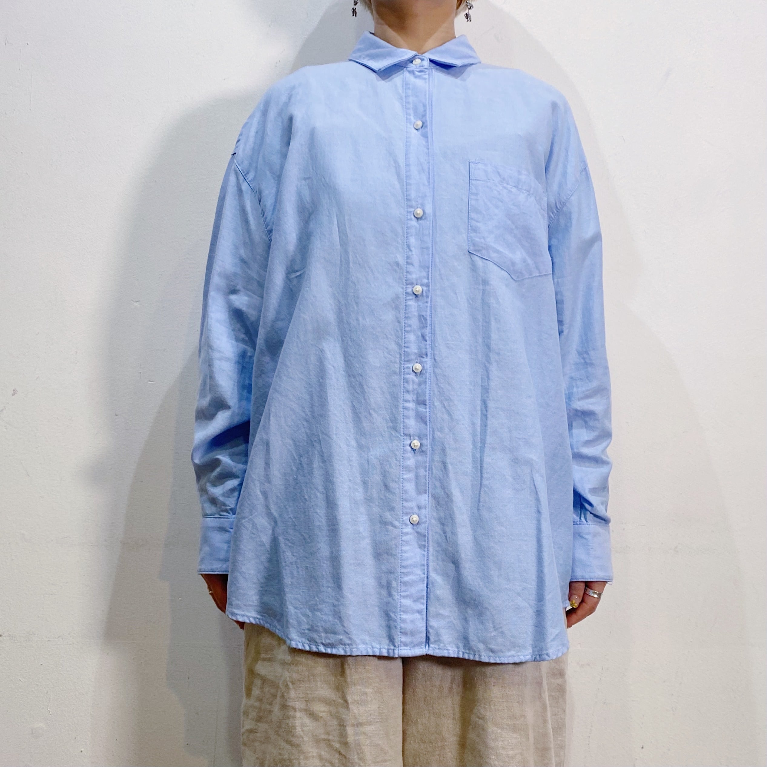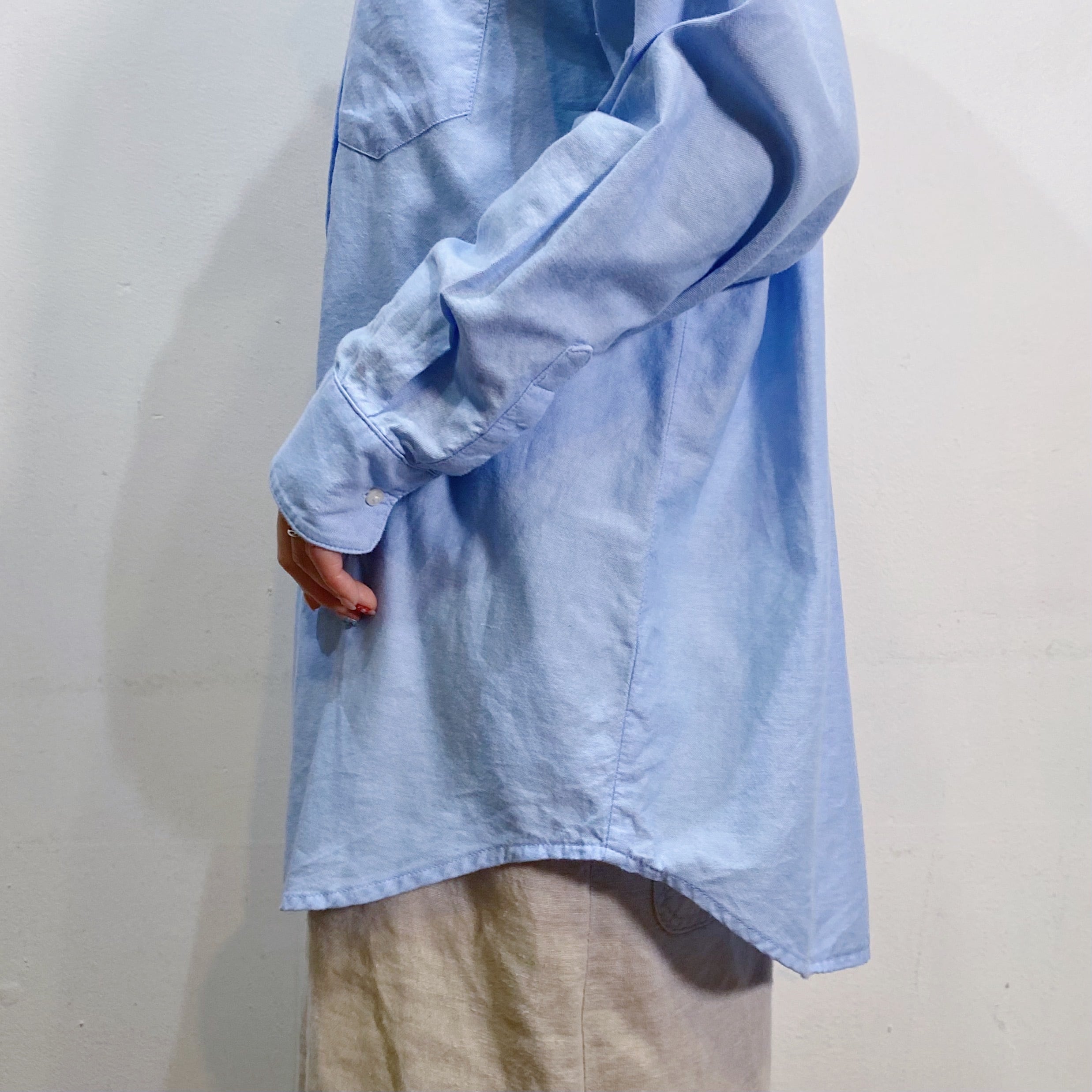 爽やかなサックスブルーカラーが可愛い長袖シャツです。