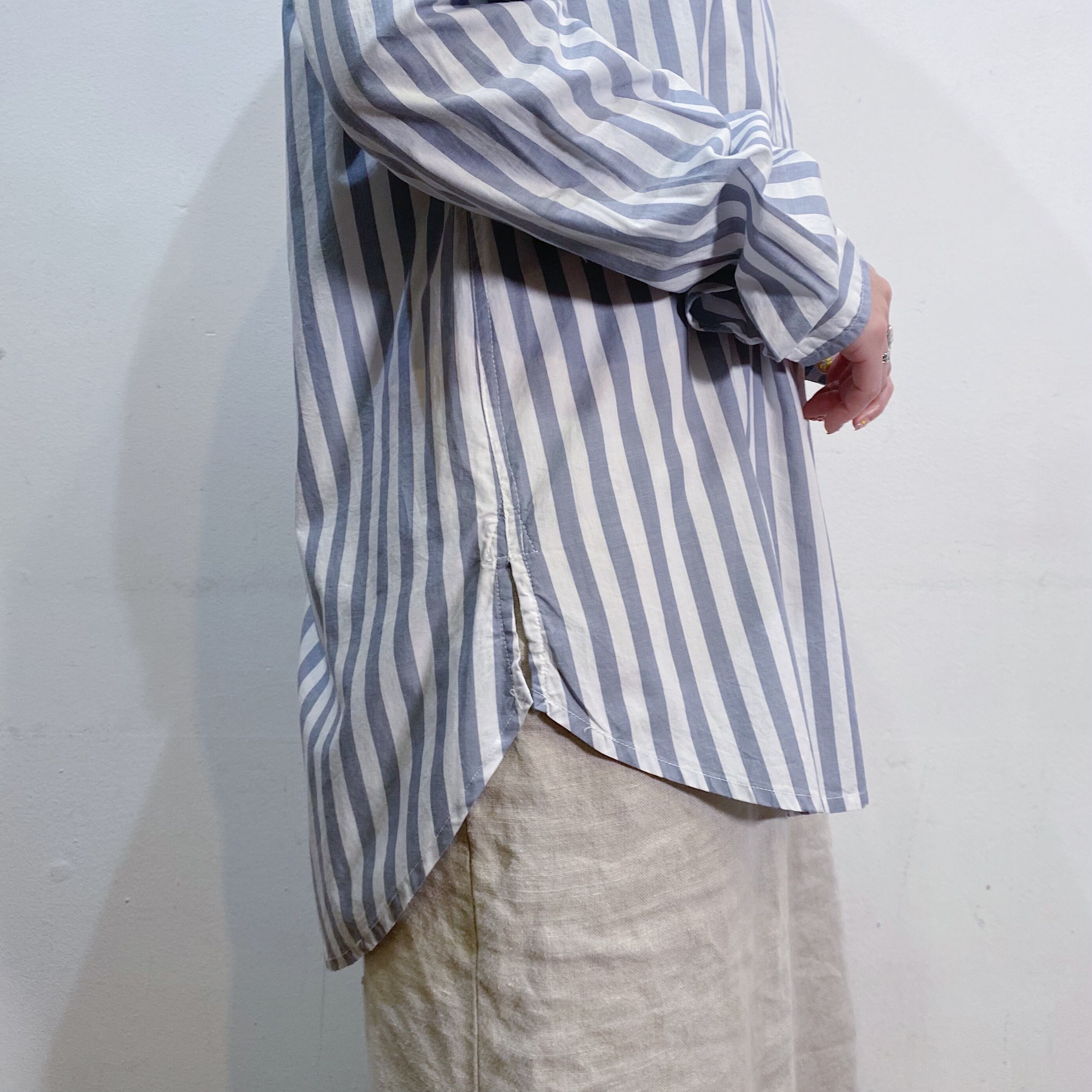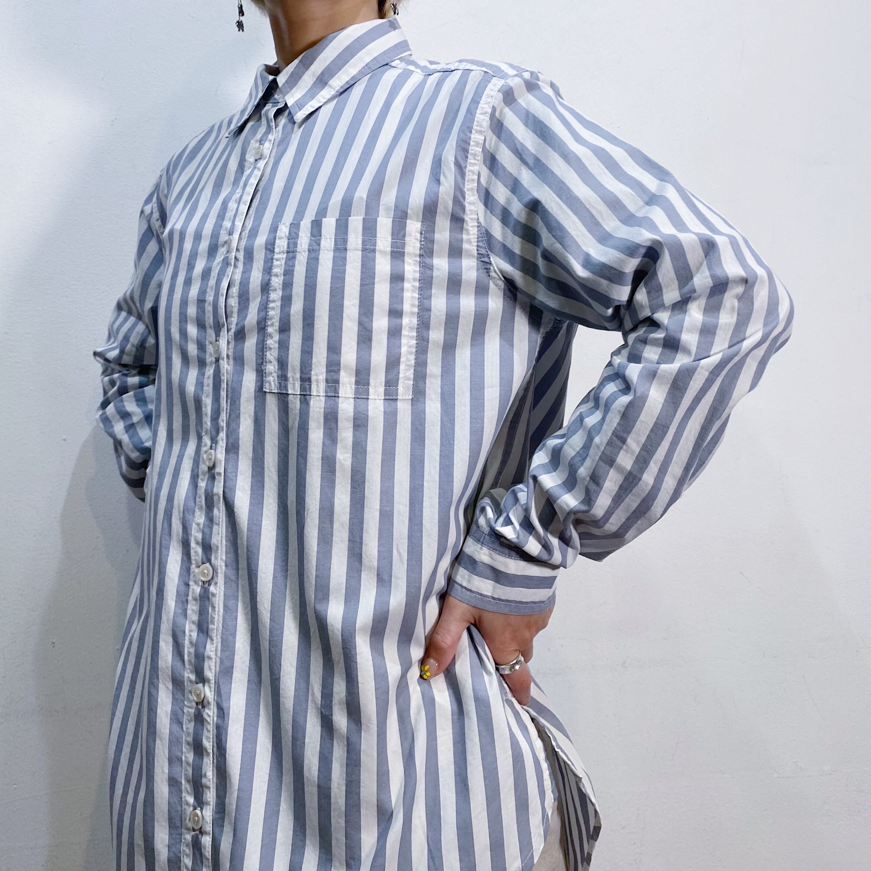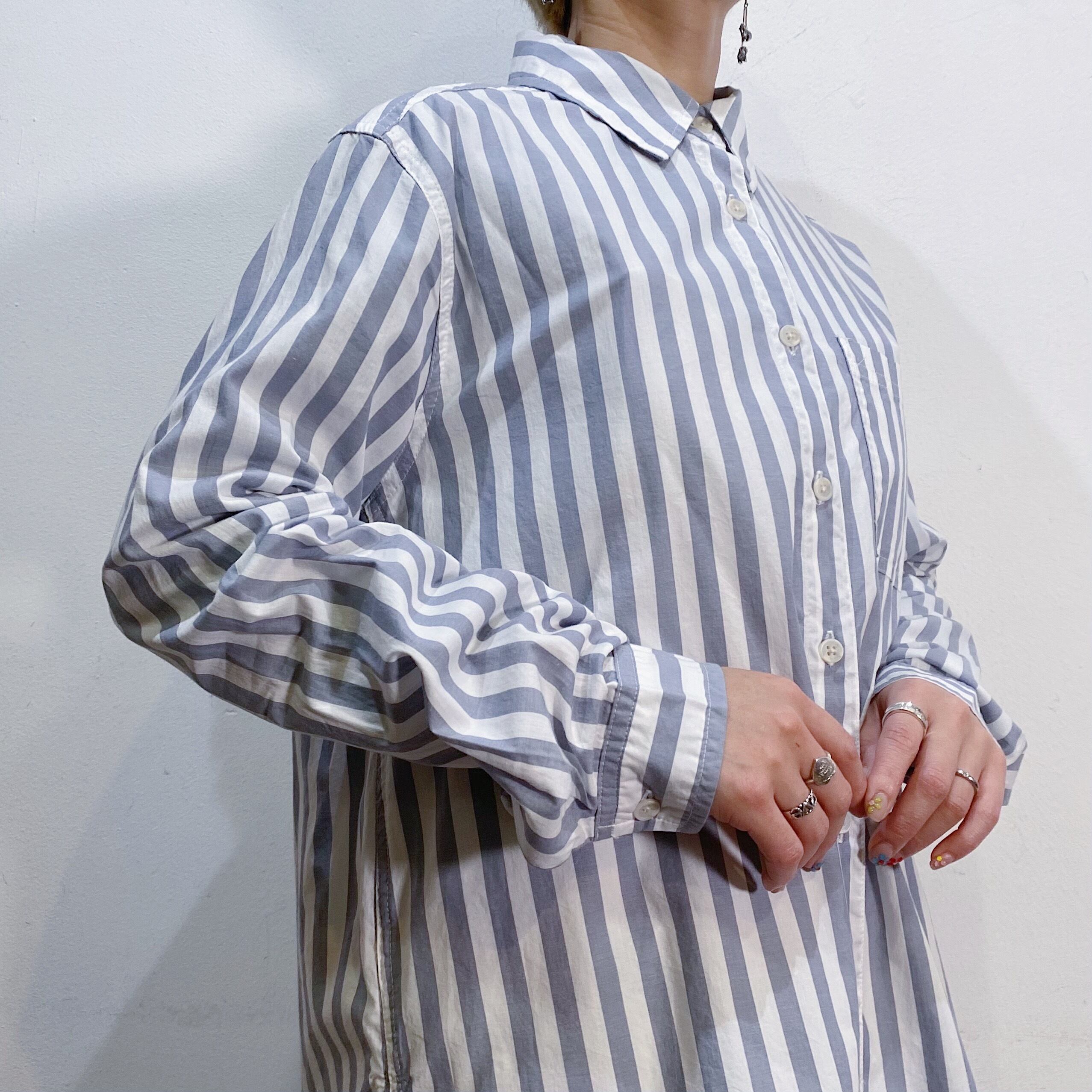 ホワイト×グレーのストライプ柄が可愛い長袖シャツです。
