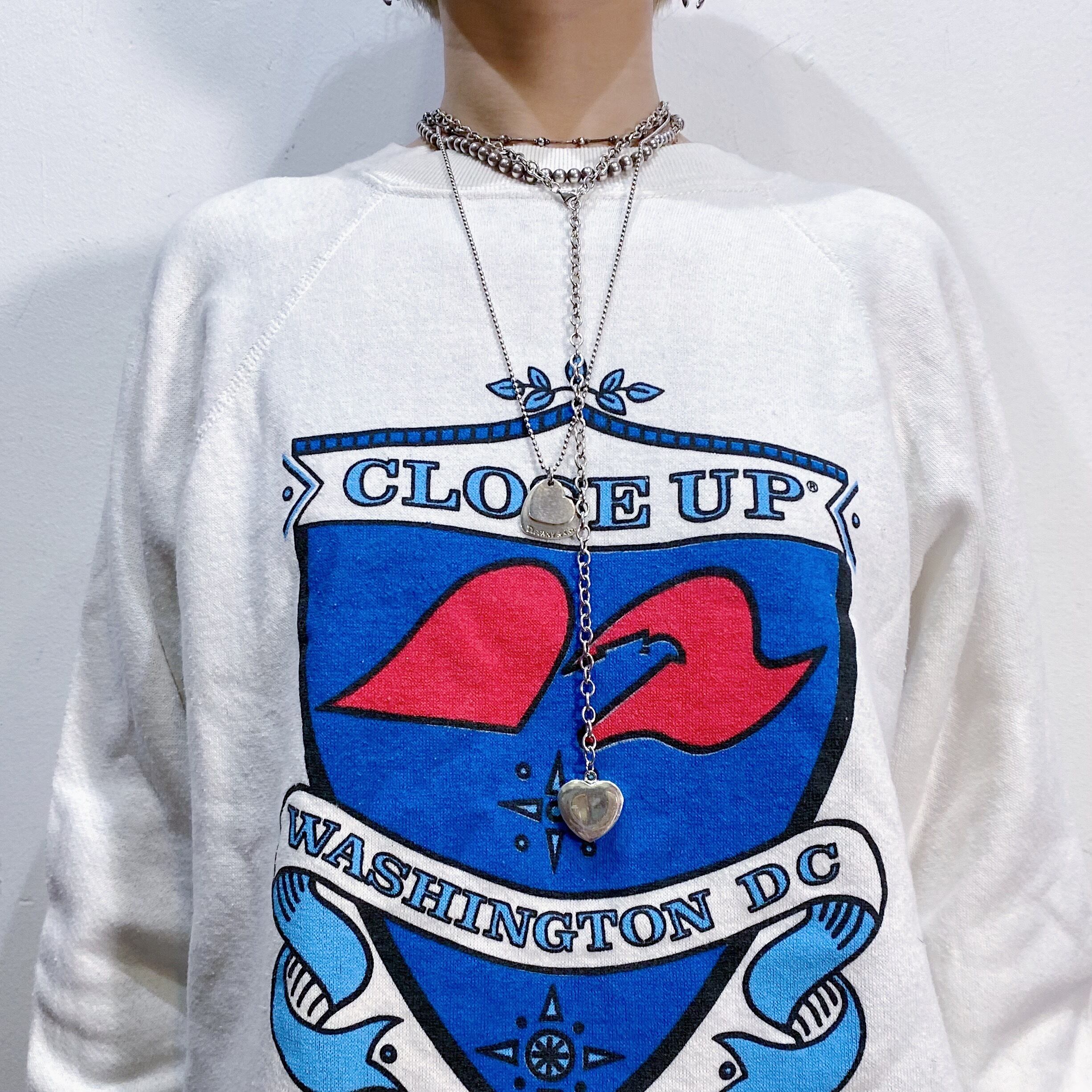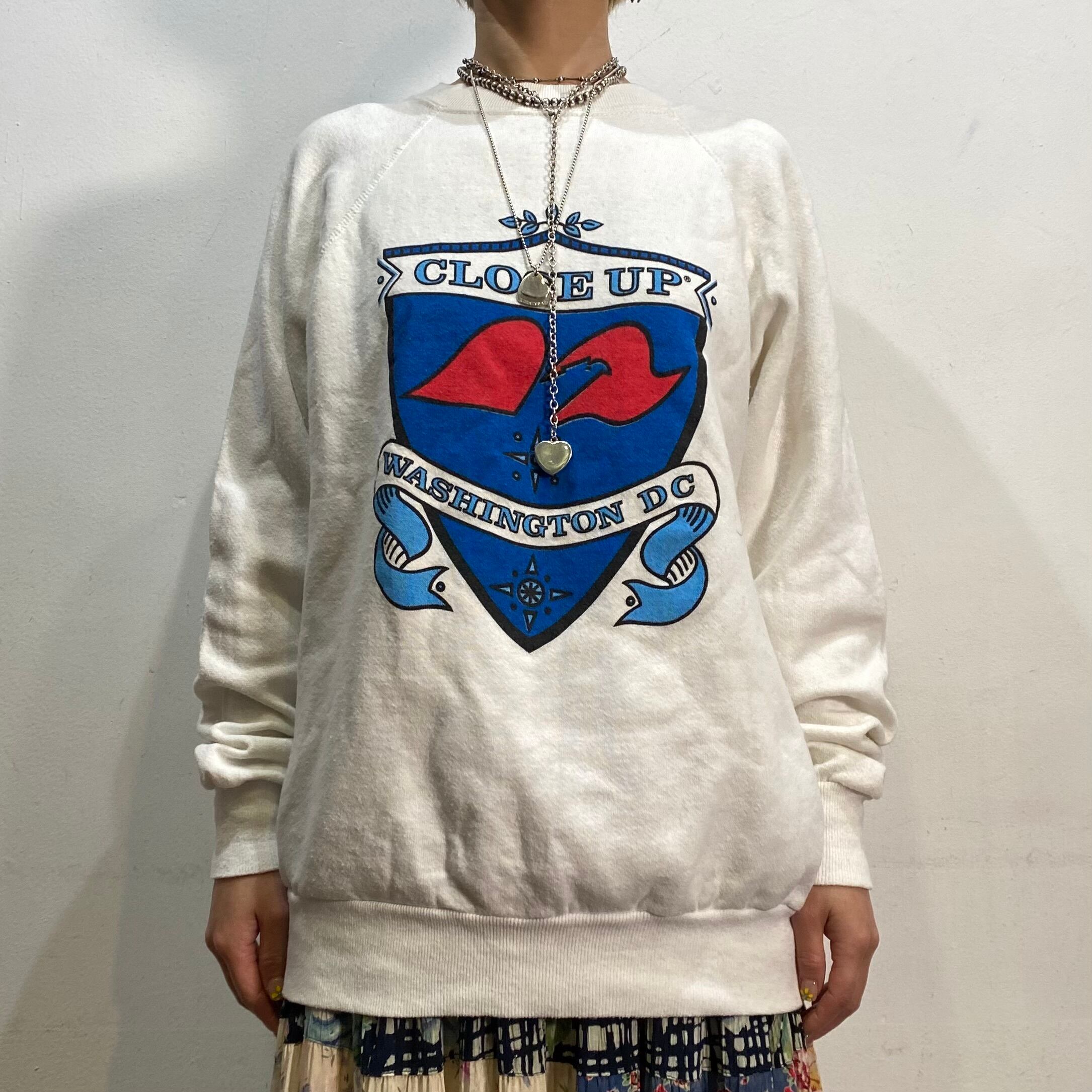 ホワイトボディにブルーとレッドのプリントが可愛い、80年代のスウェットです。