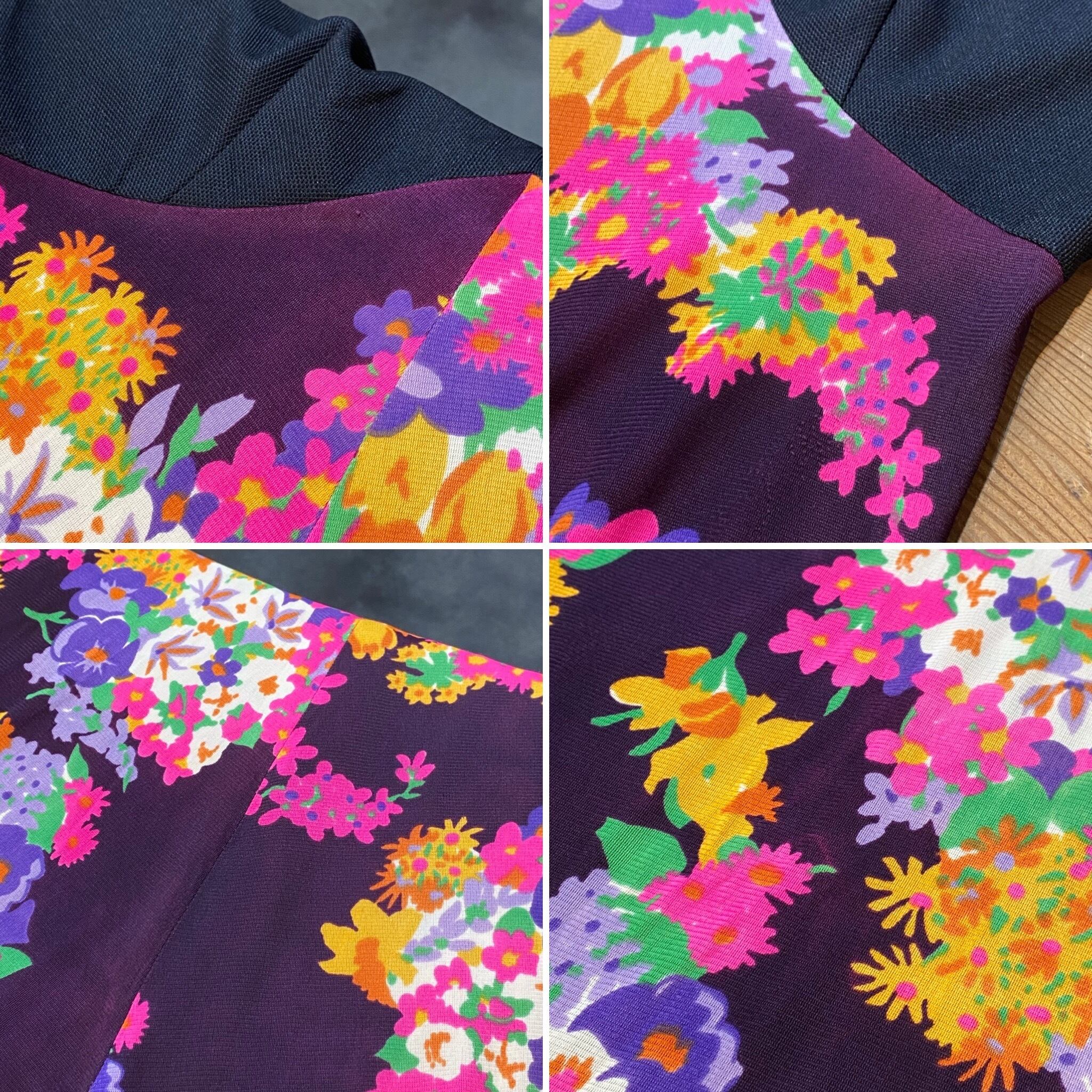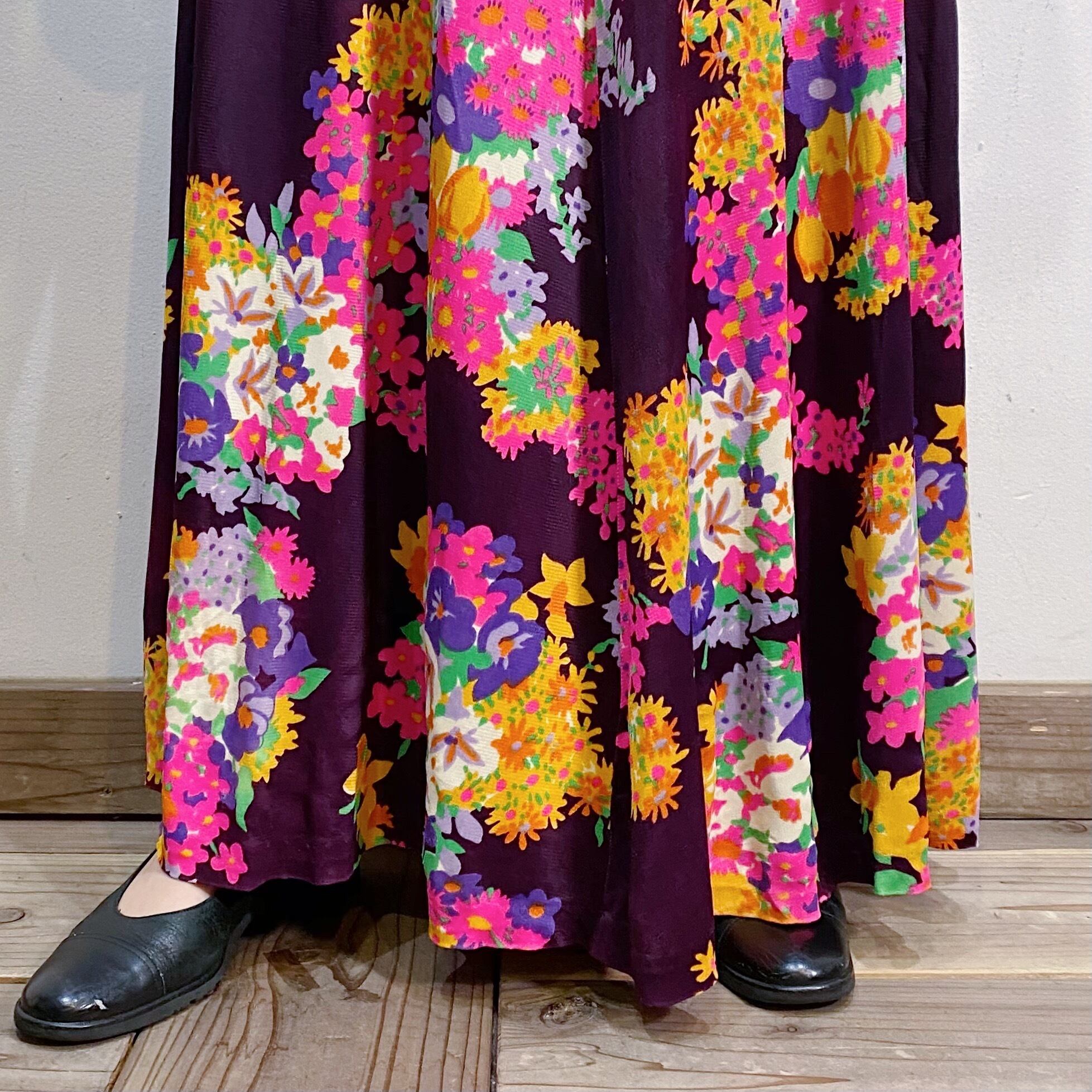 花柄との切り替えデザインが可愛い、60~70年代のロングワンピースです。