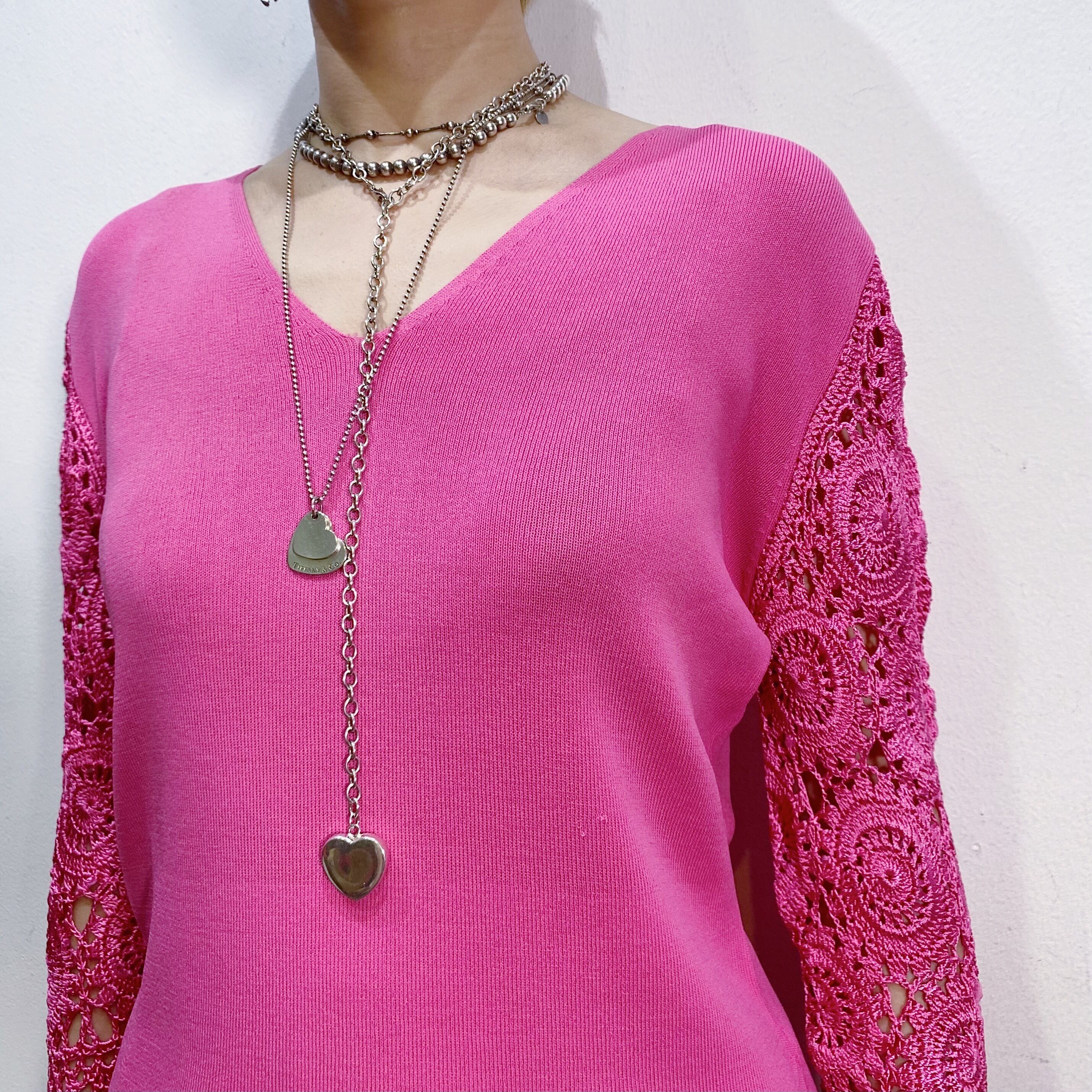 袖のクロシェ編みが可愛い、長袖トップスです。