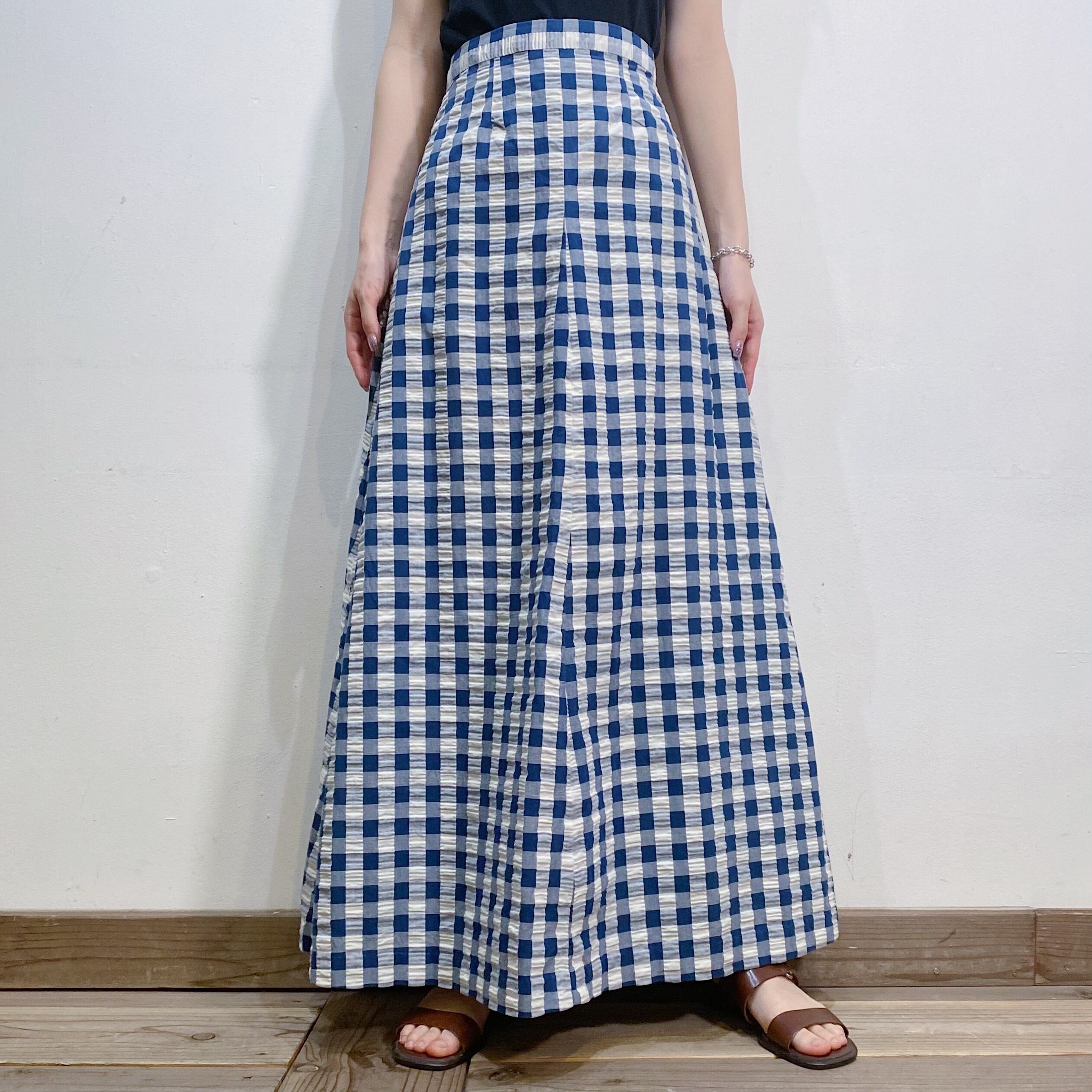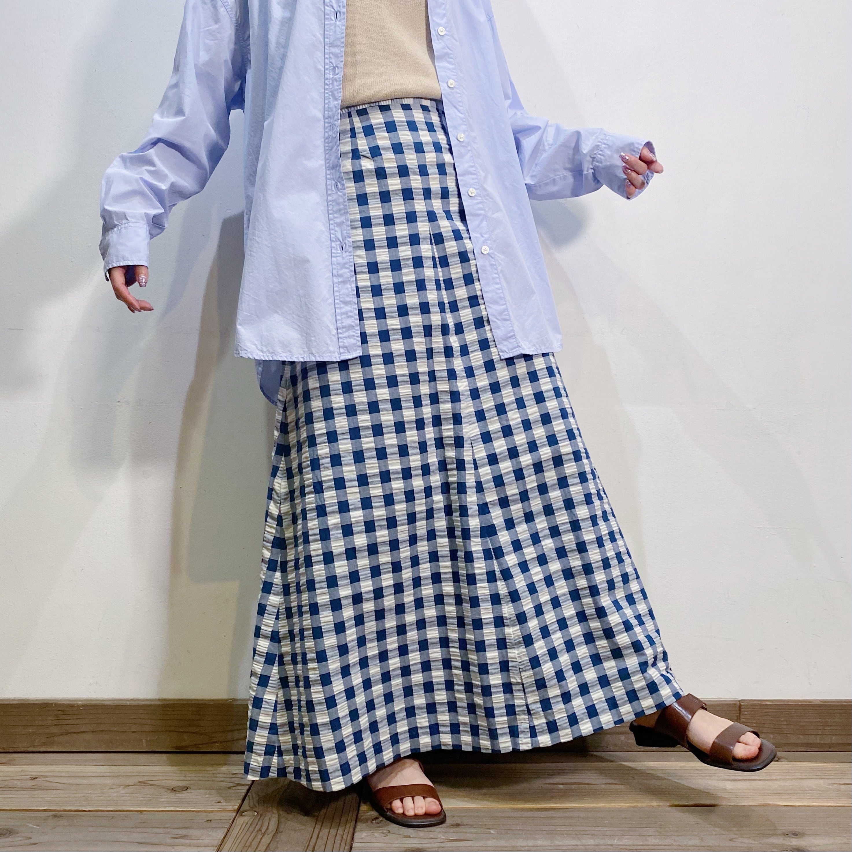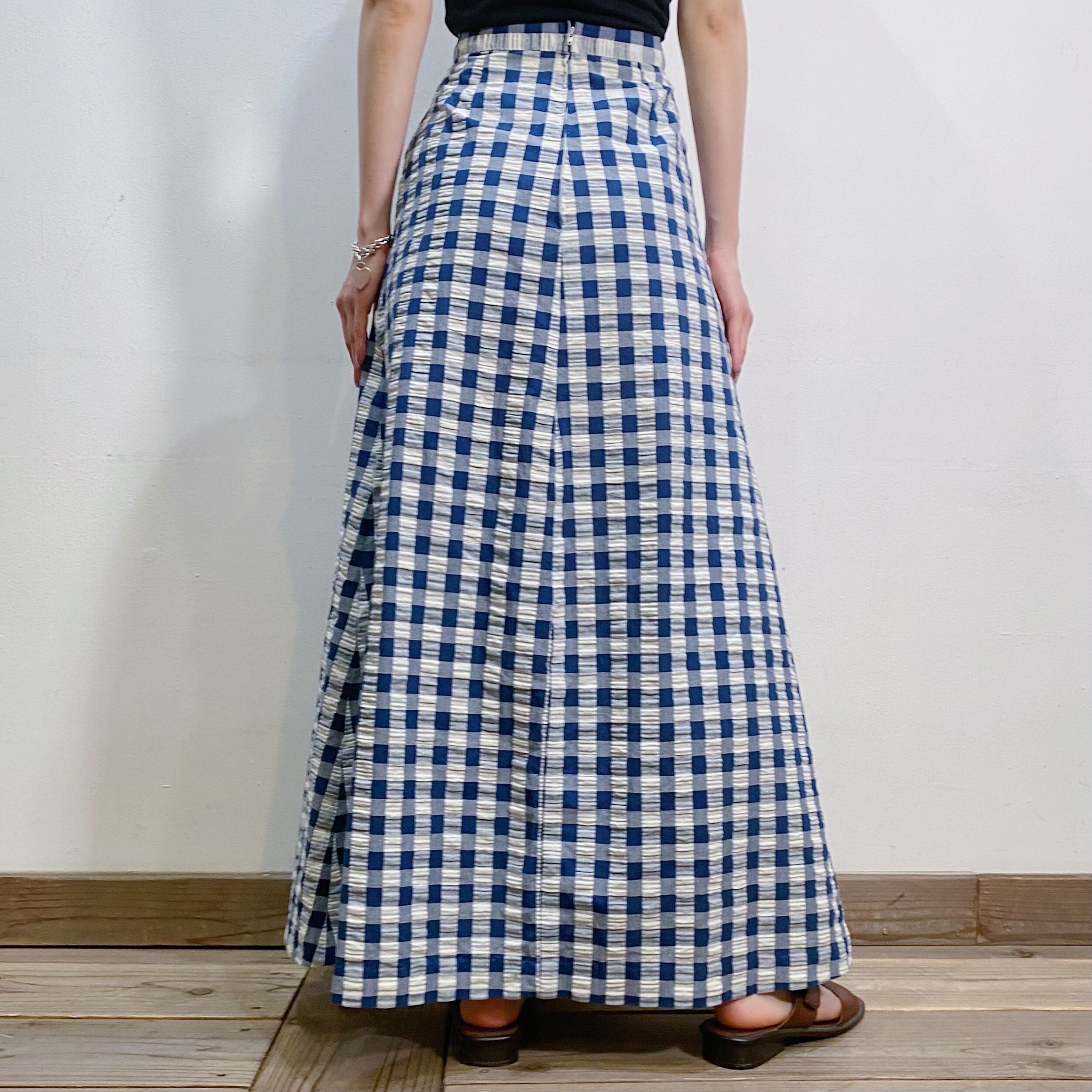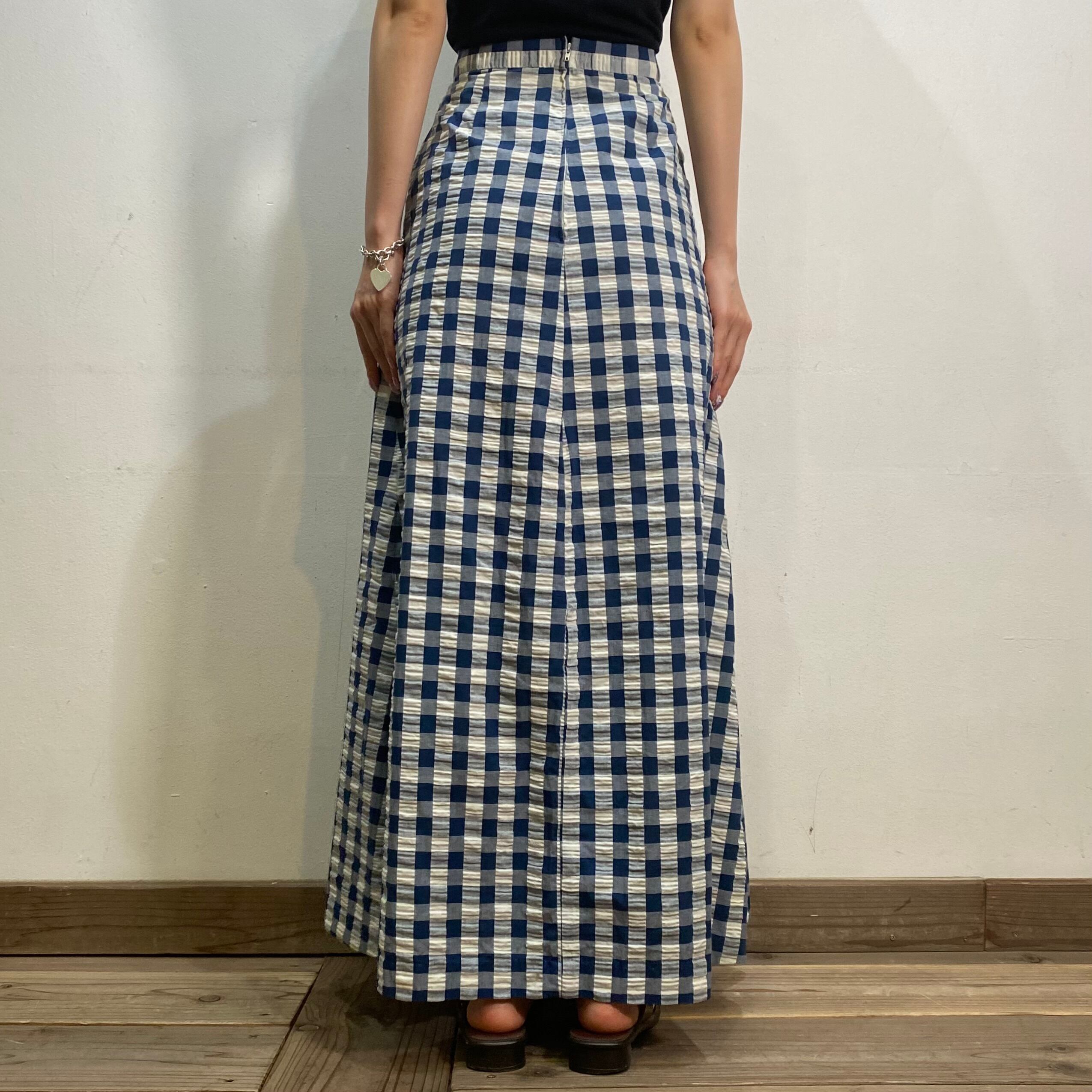 ネイビーとホワイトのギンガムチェックが可愛い、70年代のスカートです。