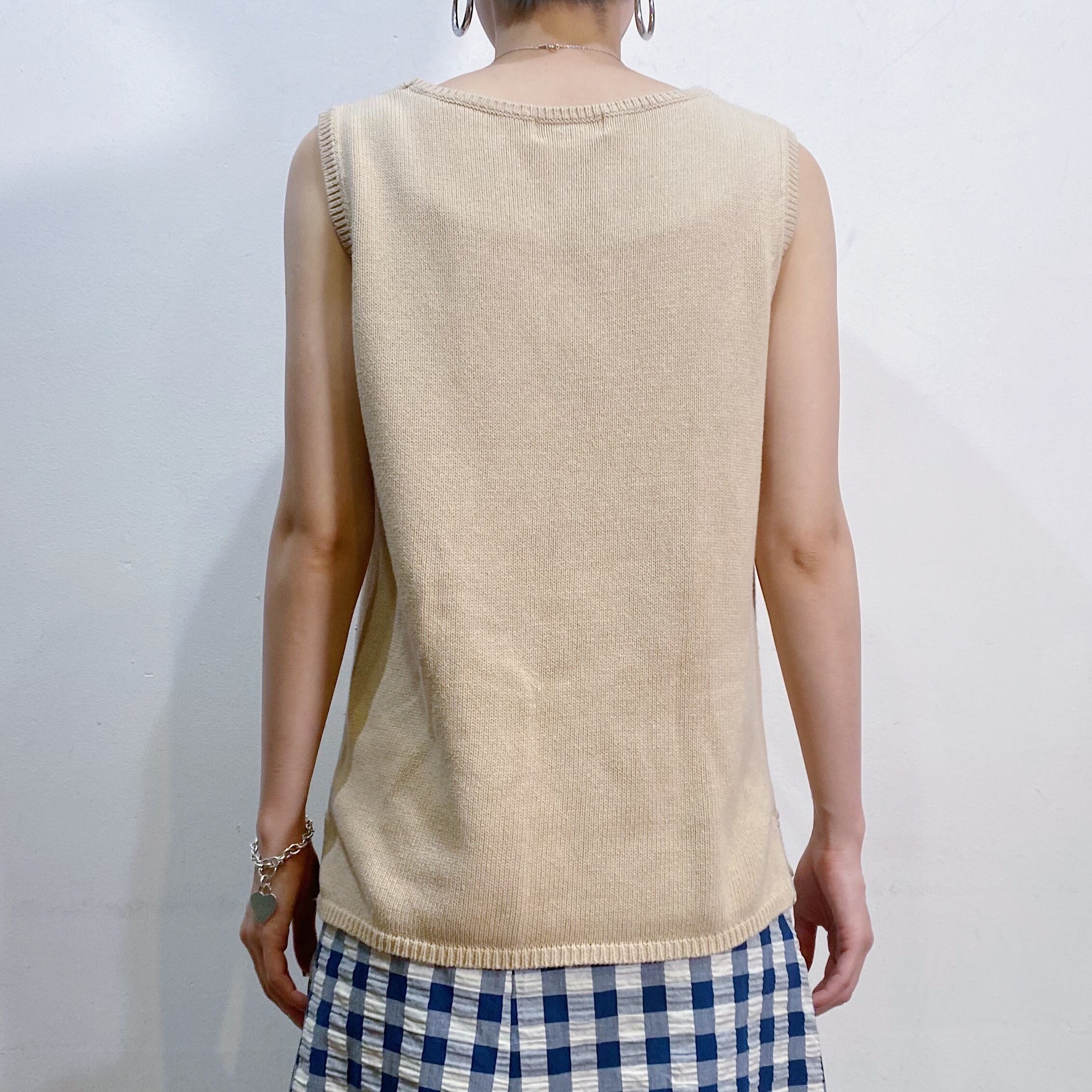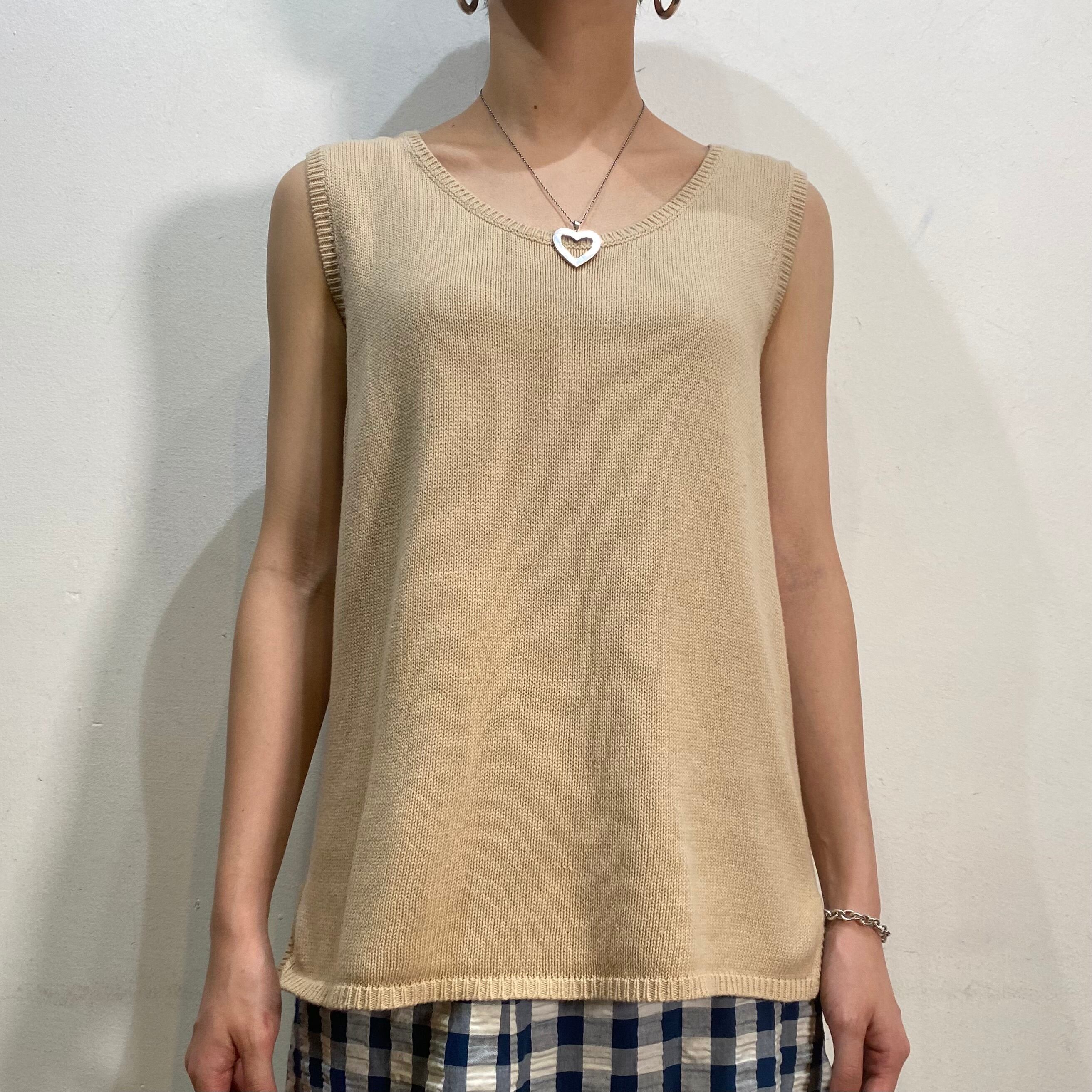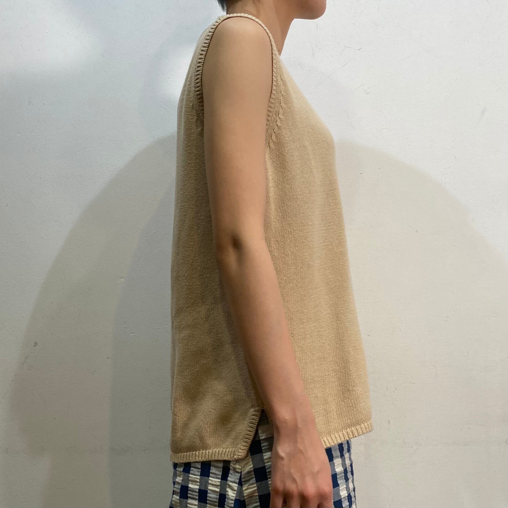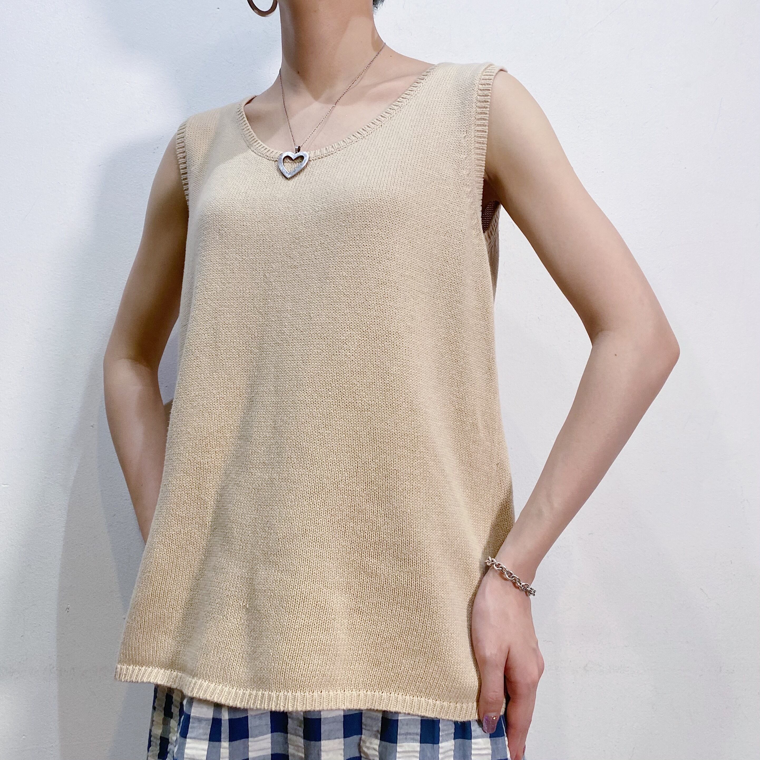 Beige cotton knit sleeveless top