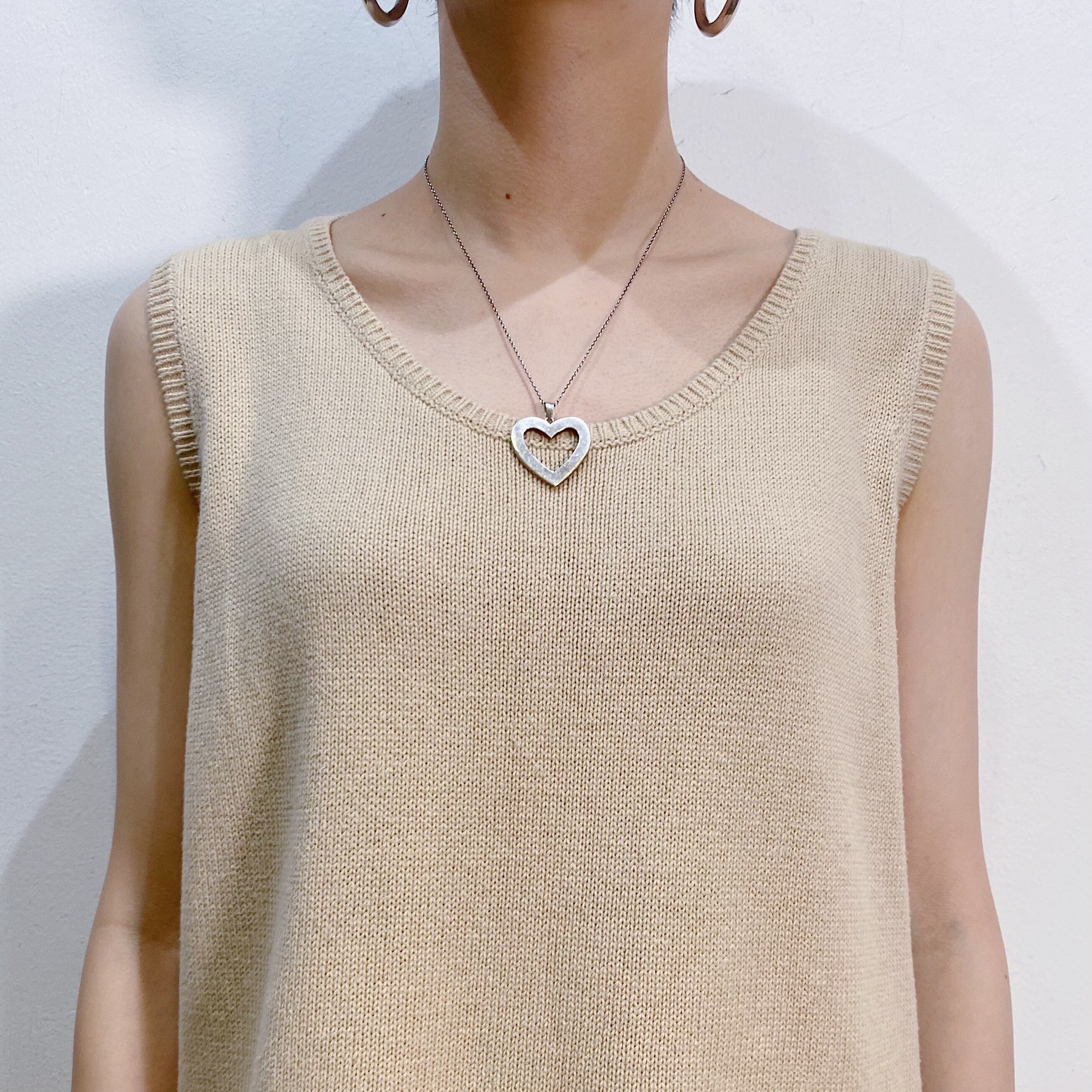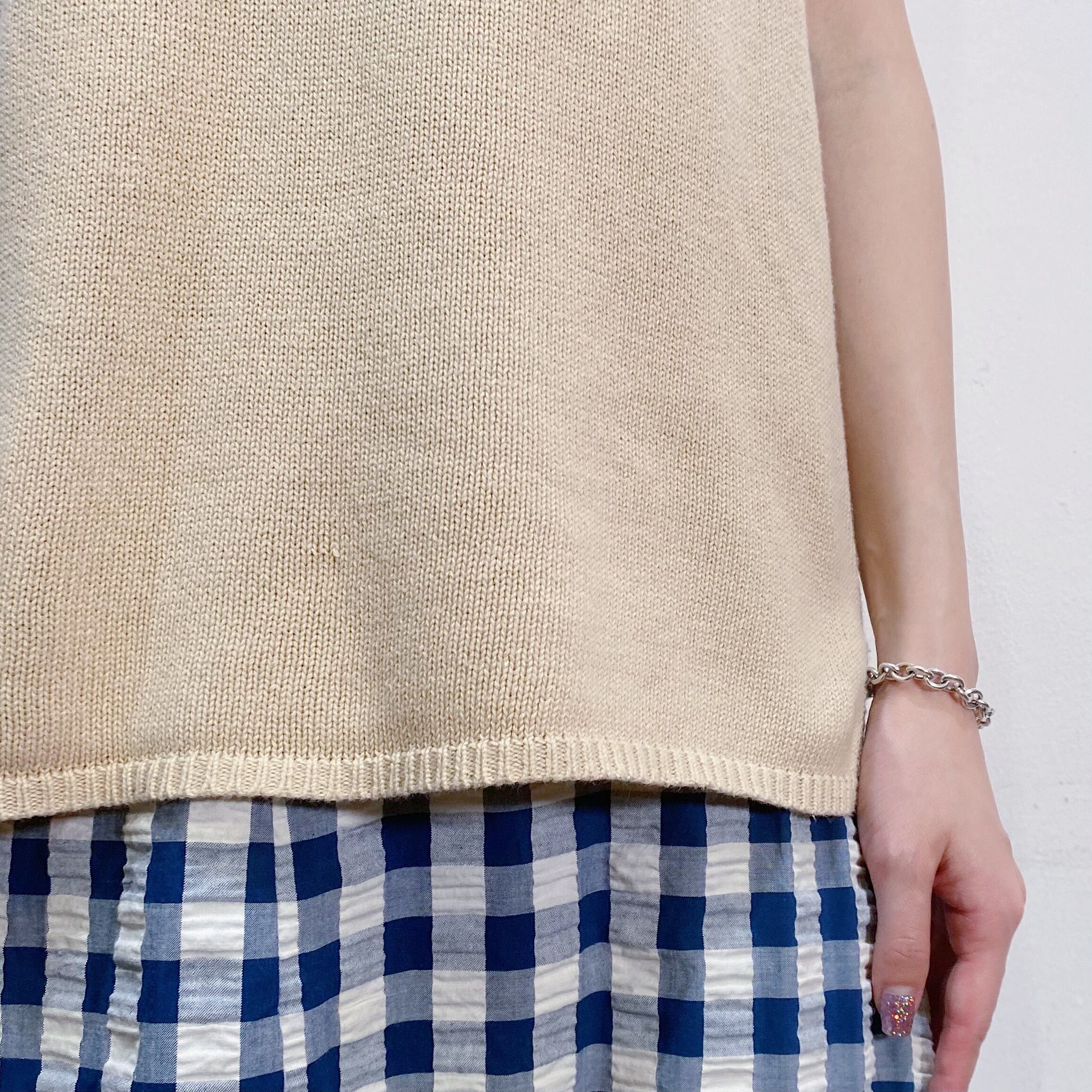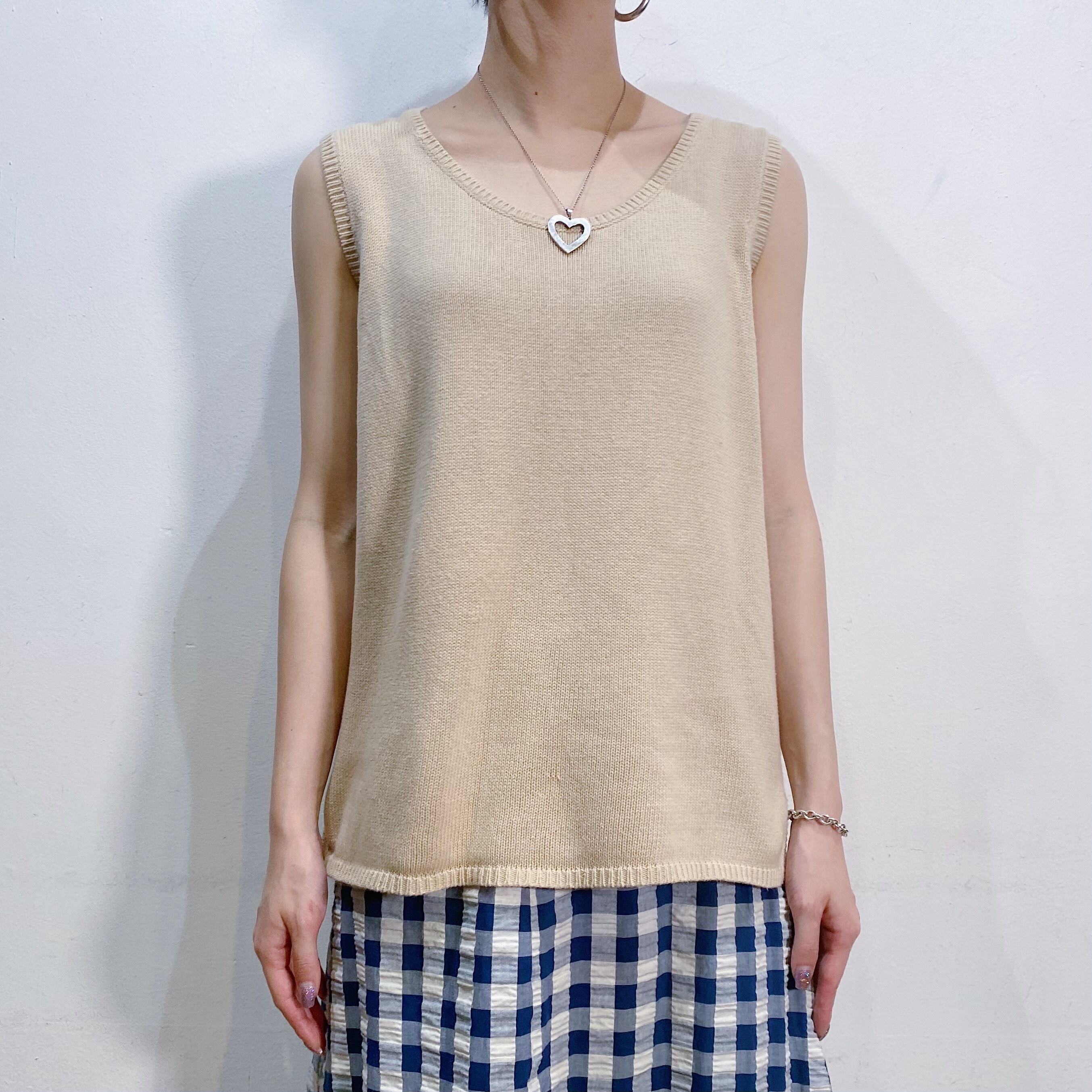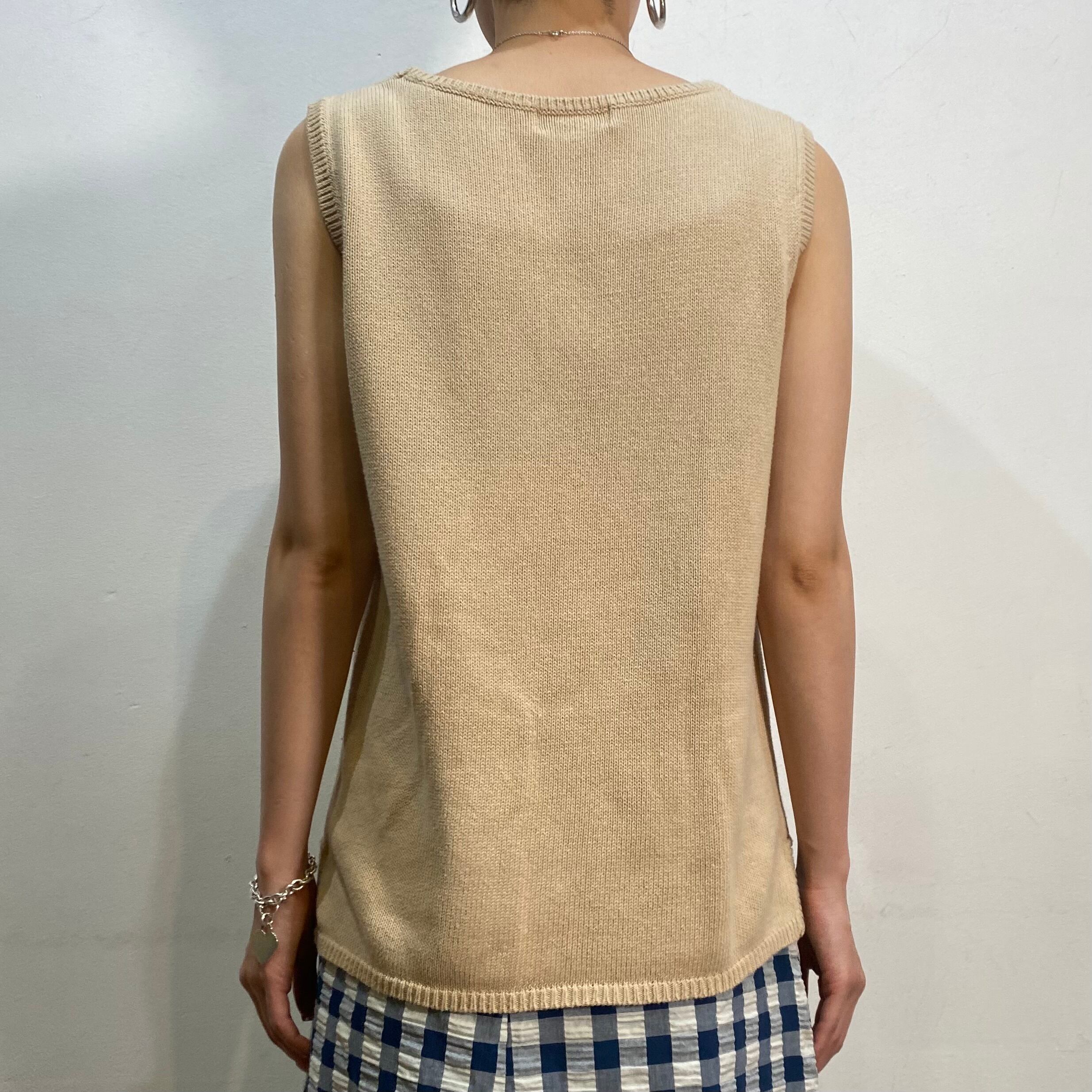 Beige cotton knit sleeveless top