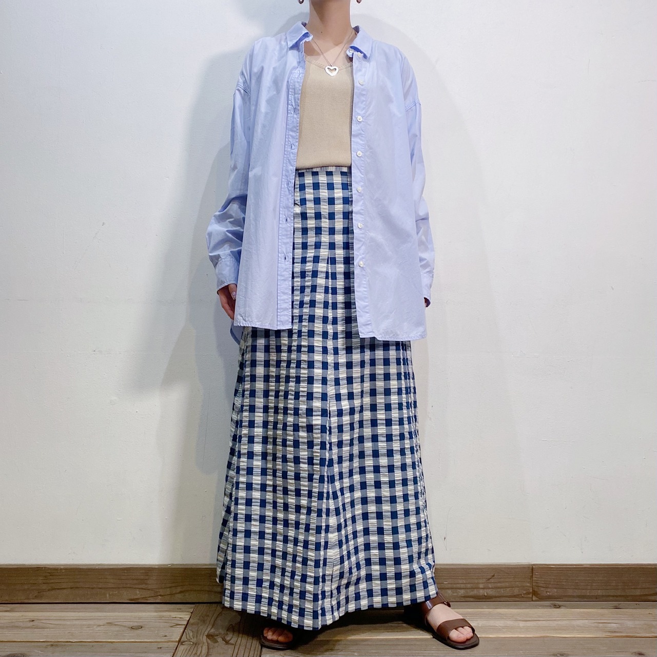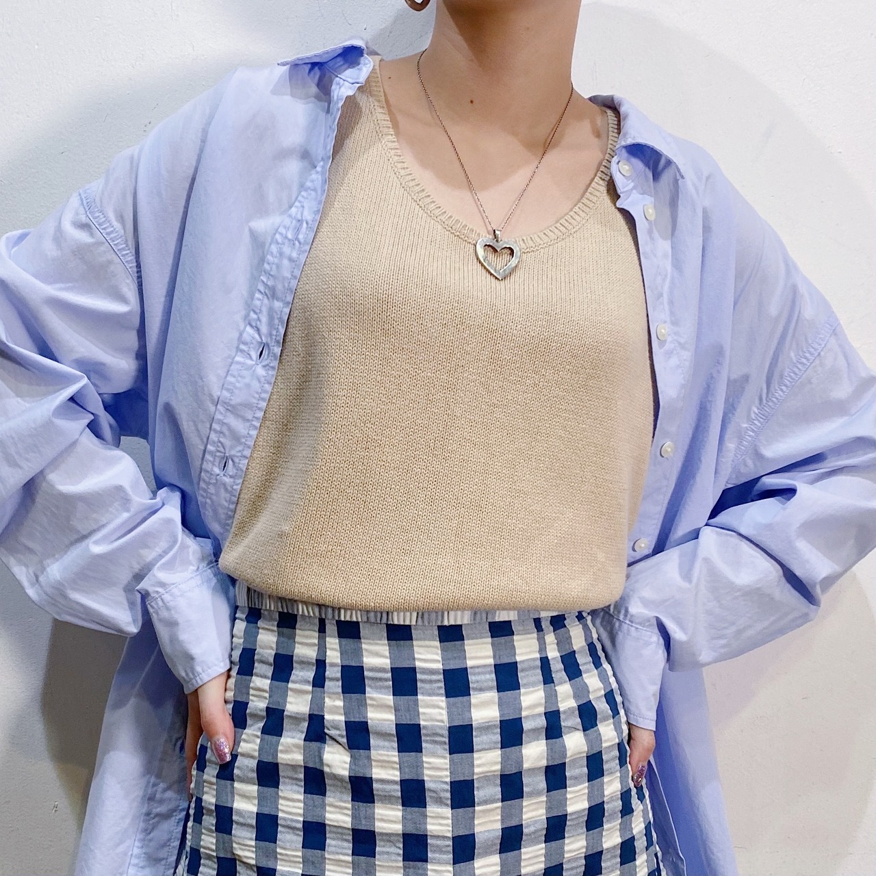 トップスメインの着こなしも、着用写真のように上からシャツなどを羽織った着こなしも可愛いです。