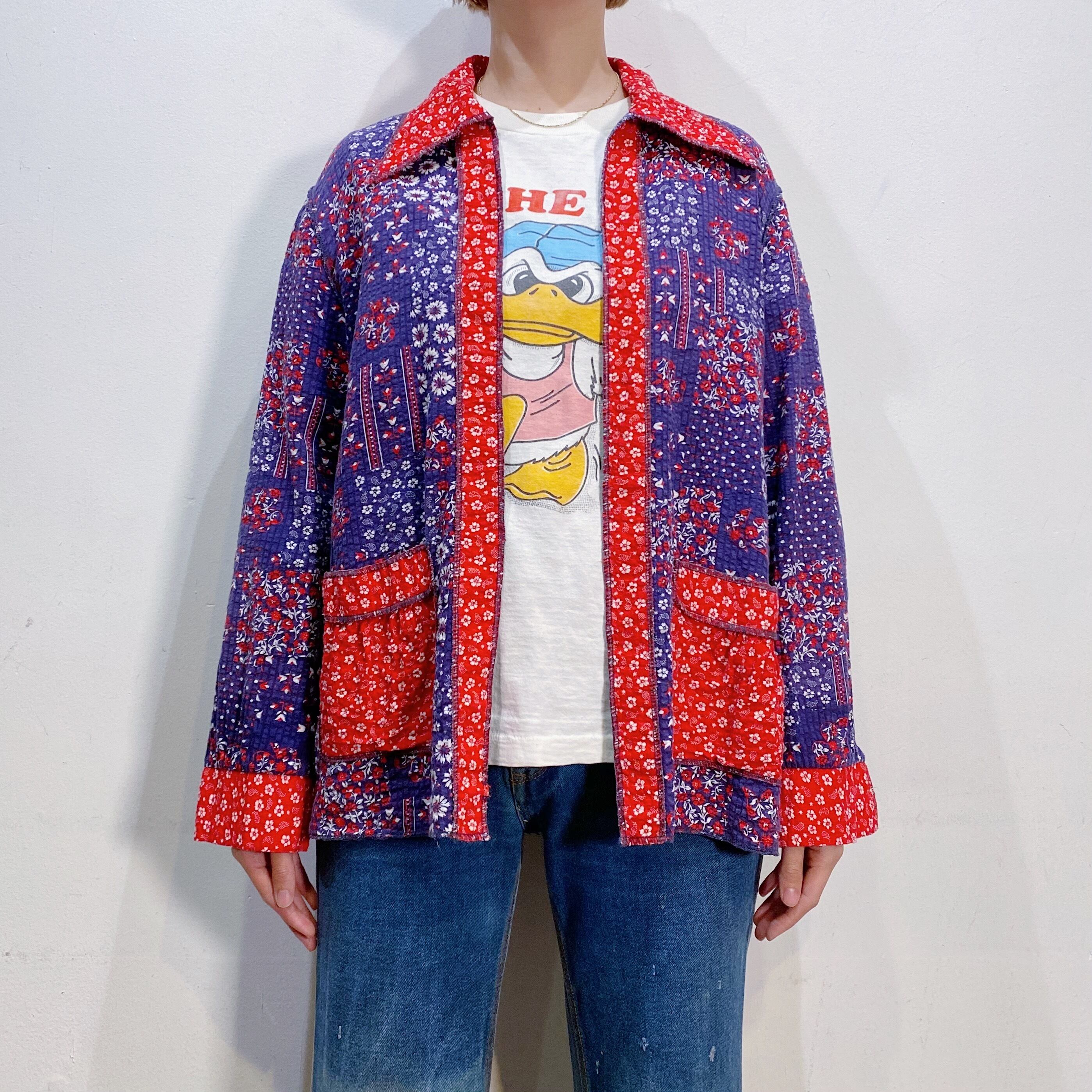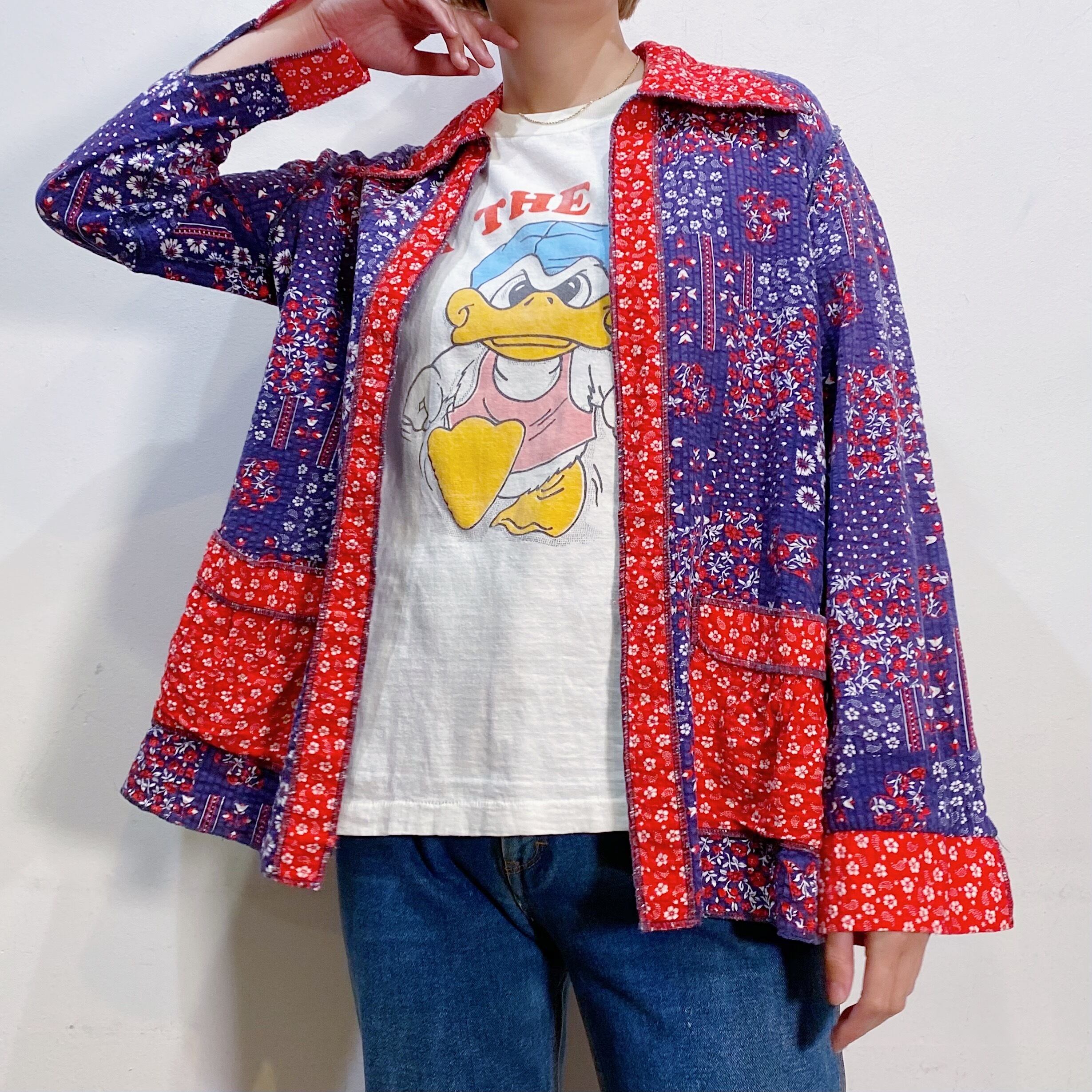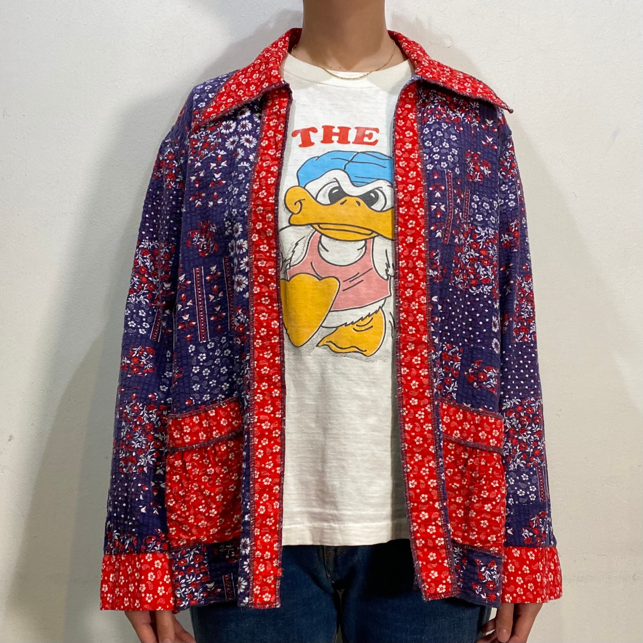 赤とネイビーの色合わせが可愛い、70年代の長袖シャツです。