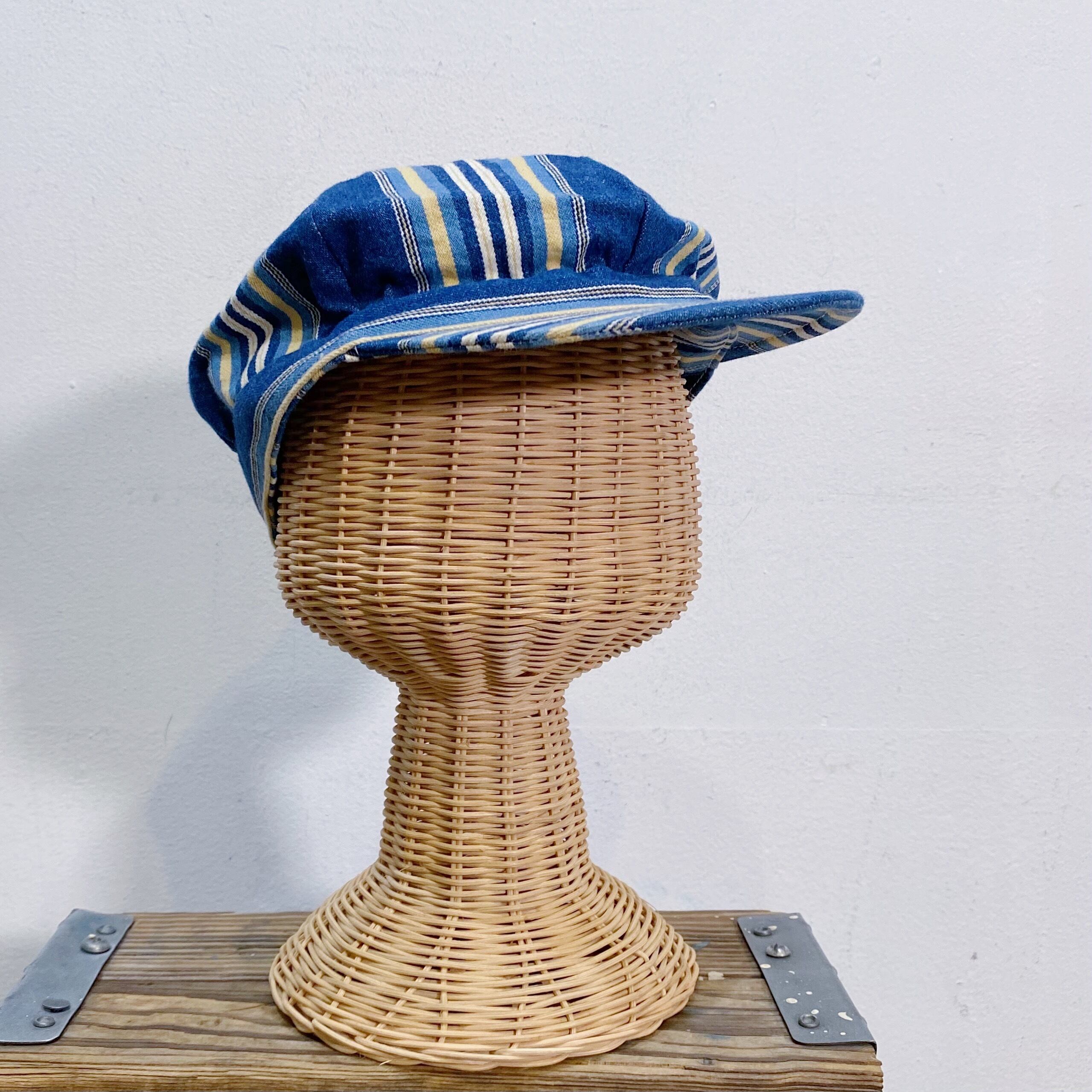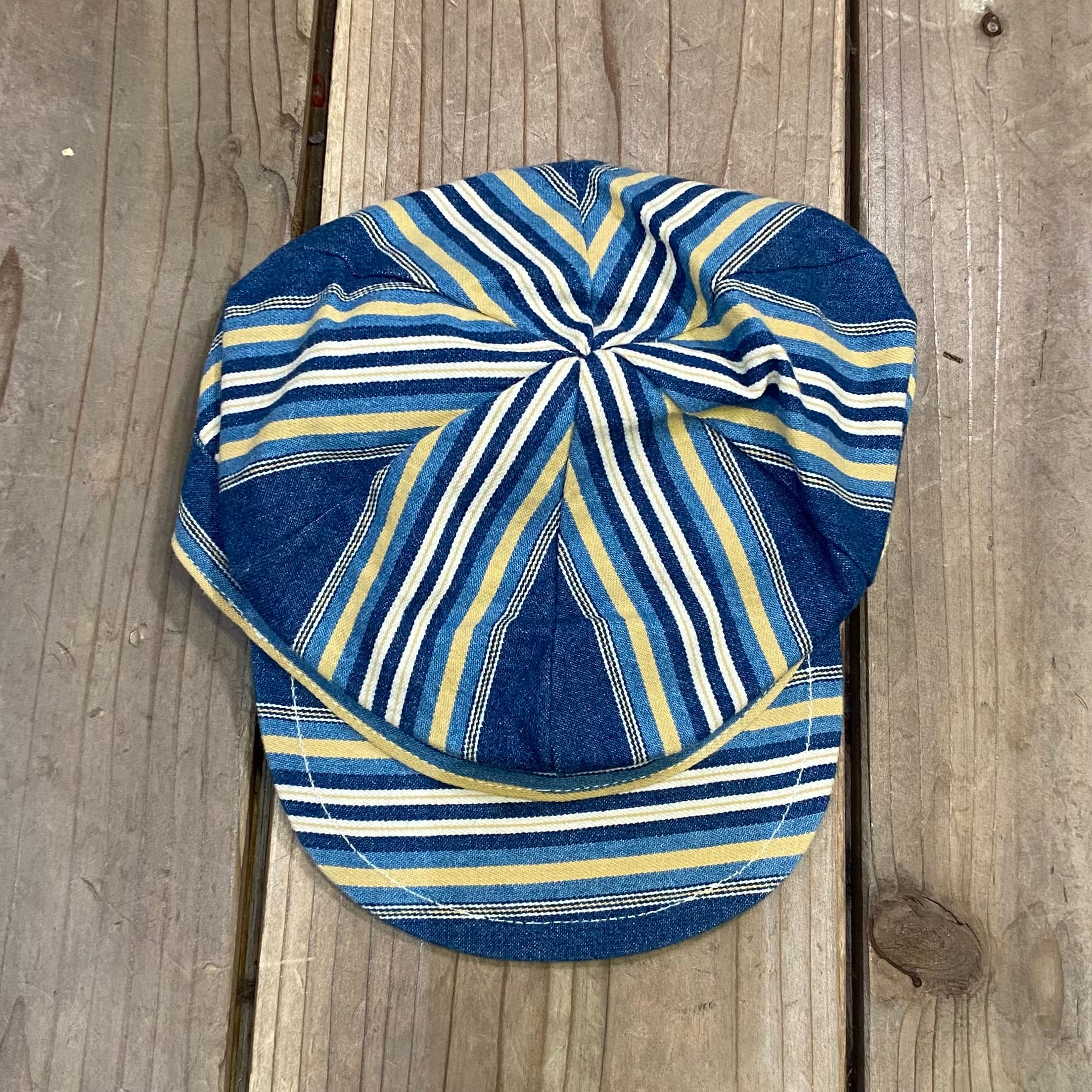 ブルーとイエローのストライプが可愛い、70年代のキャスケットです。