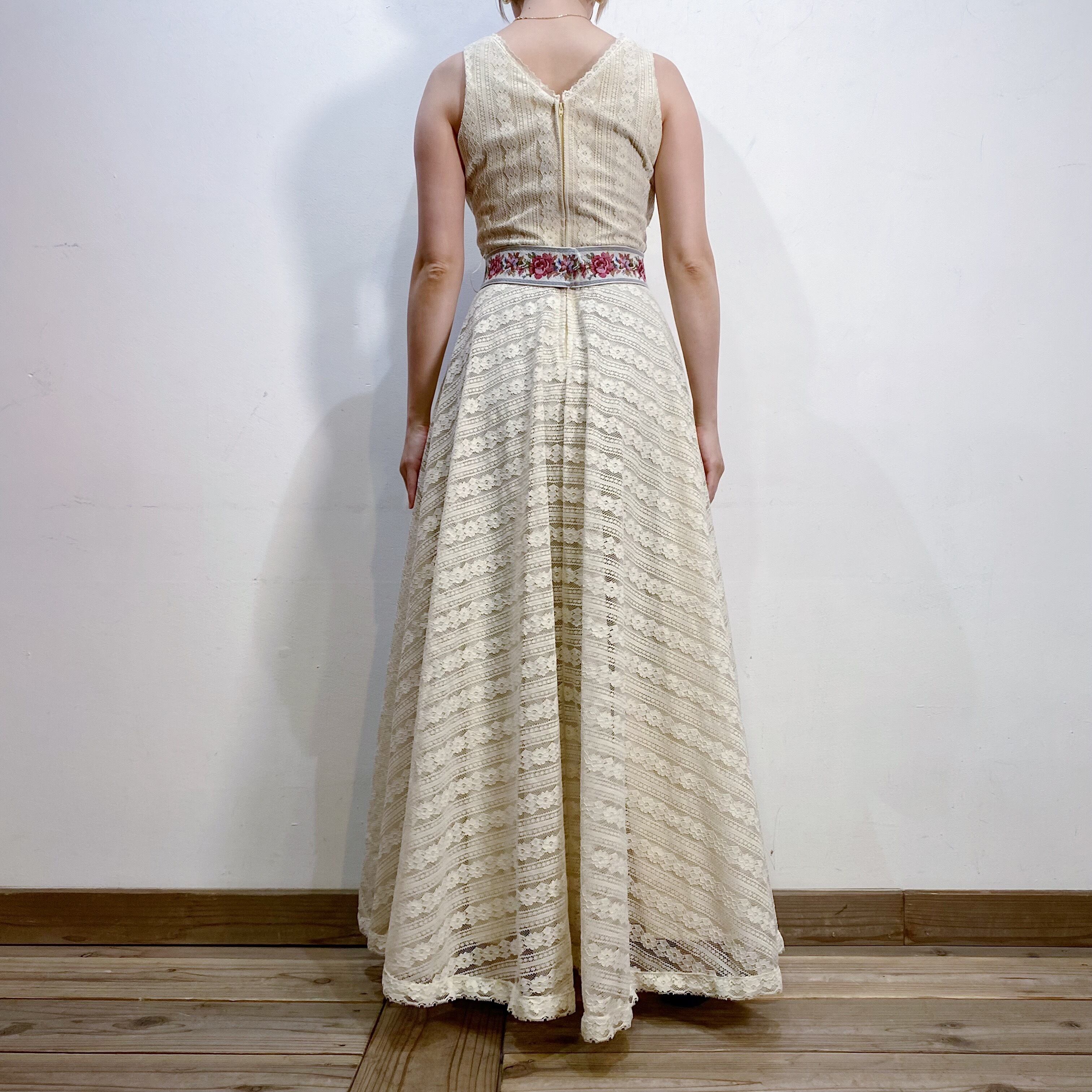お花の総レースがとっても素敵な、70年代のロングワンピースです。