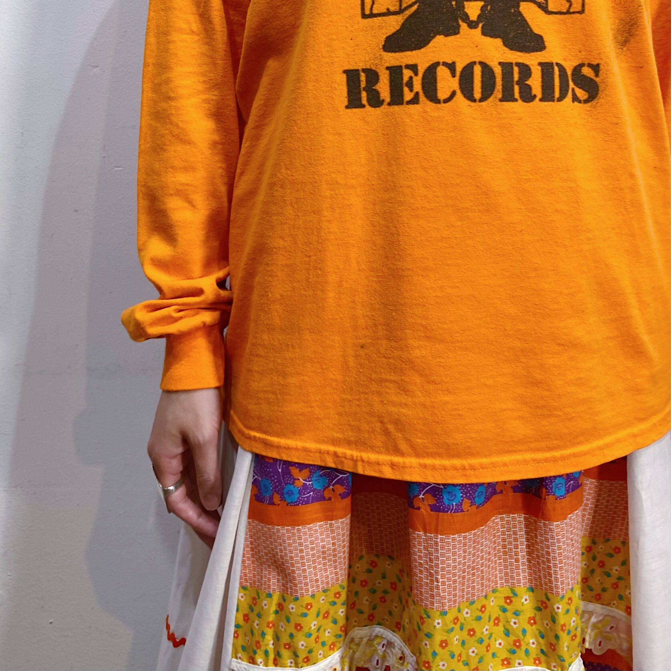 オレンジボディにフロントバックだけでなく、袖にまでプリントが入った一枚。