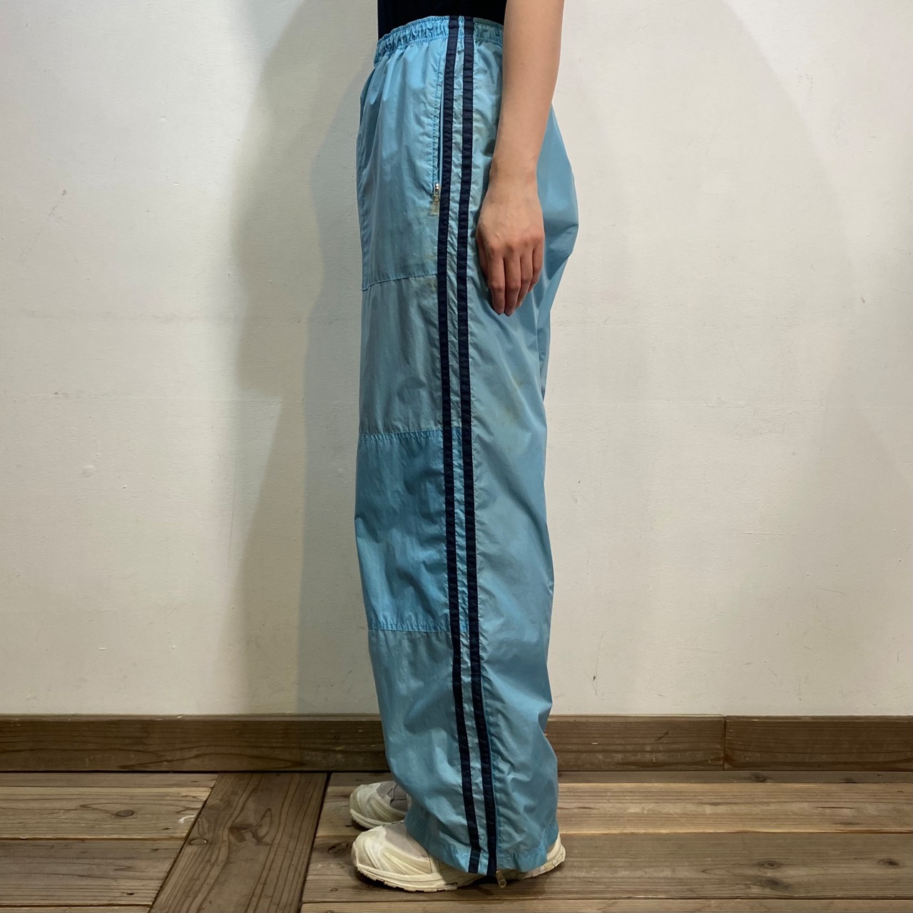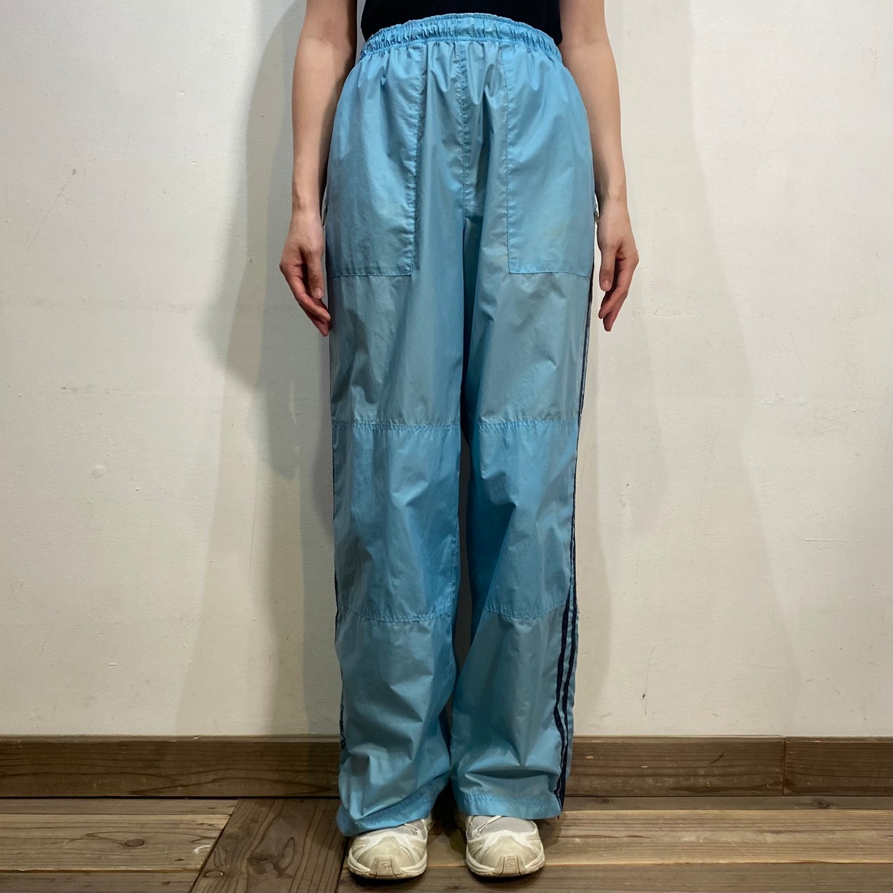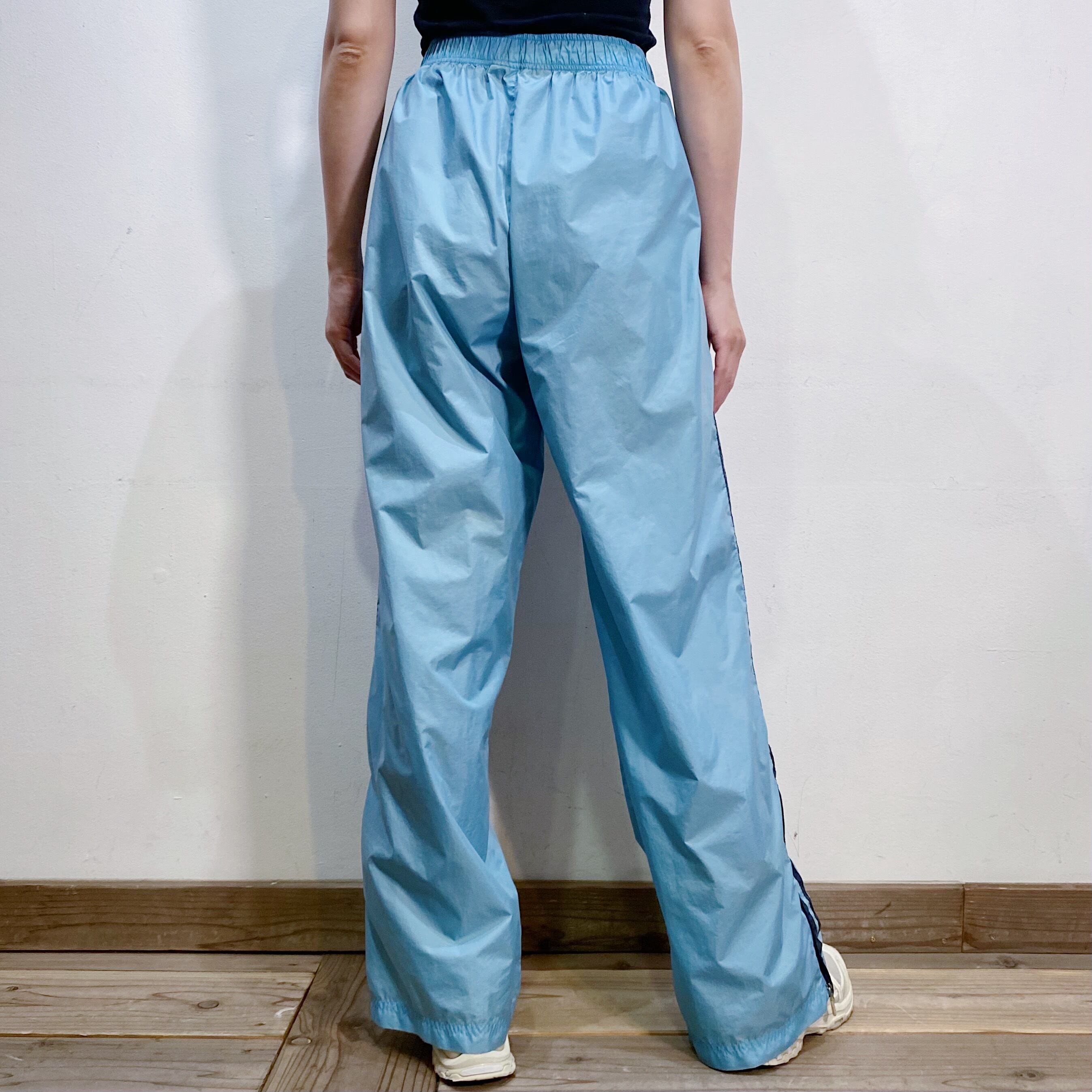 サックスブルーにネイビーのラインが可愛い、トラックパンツです。