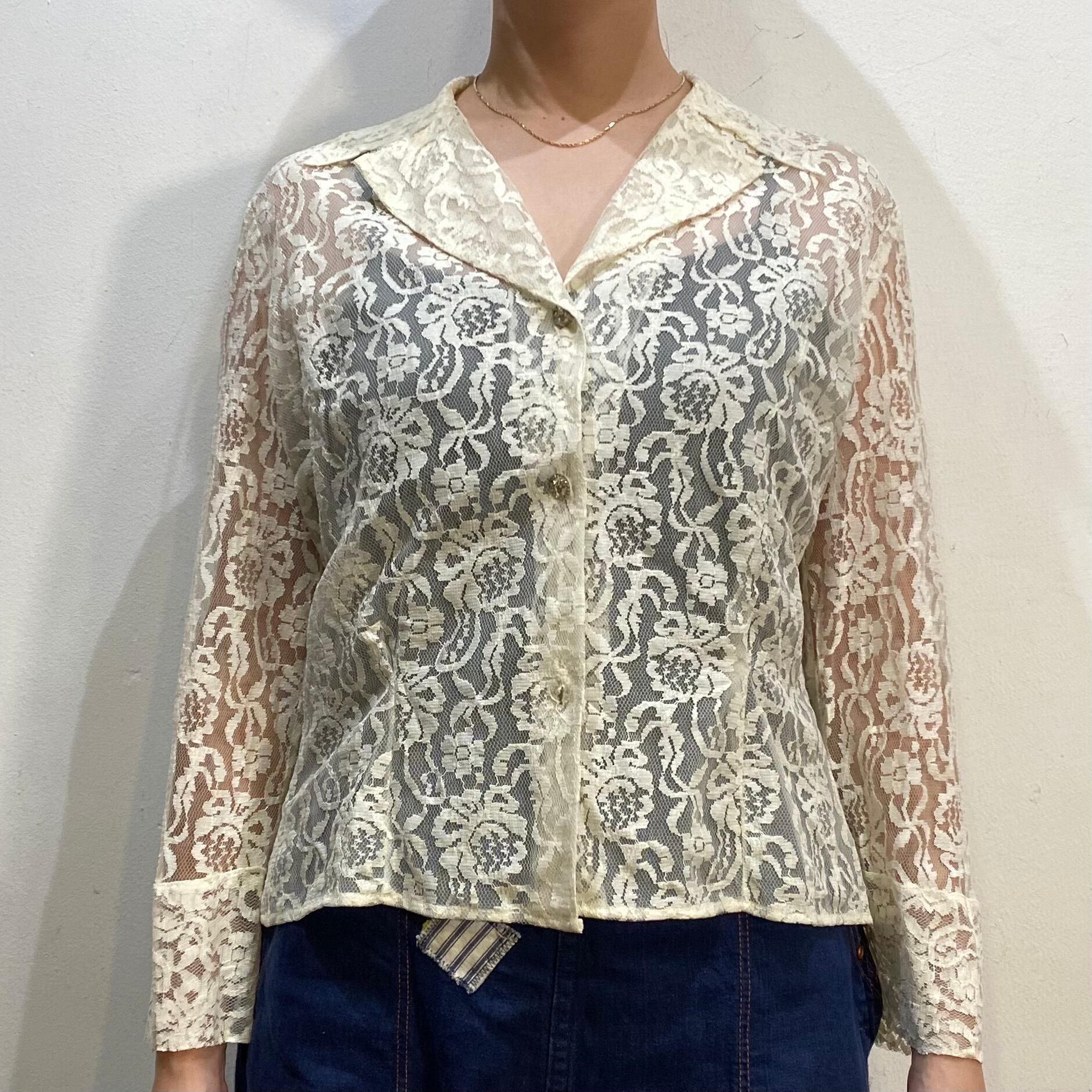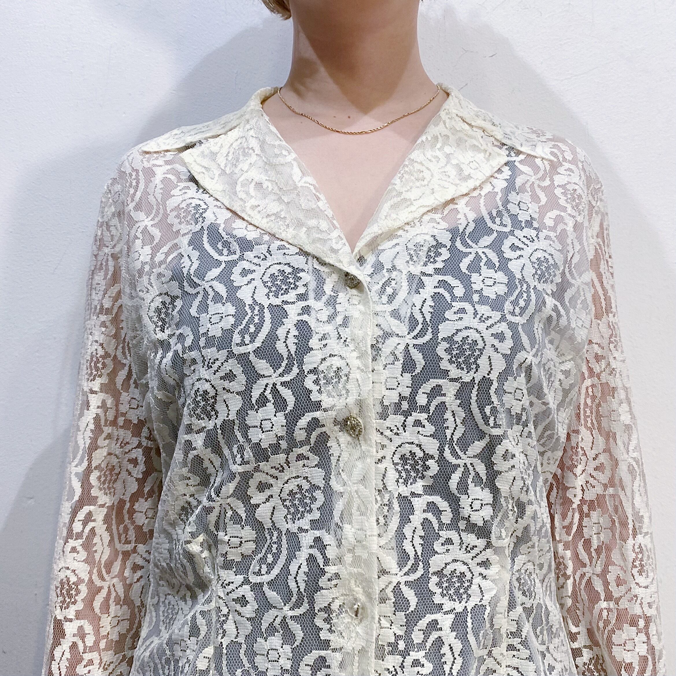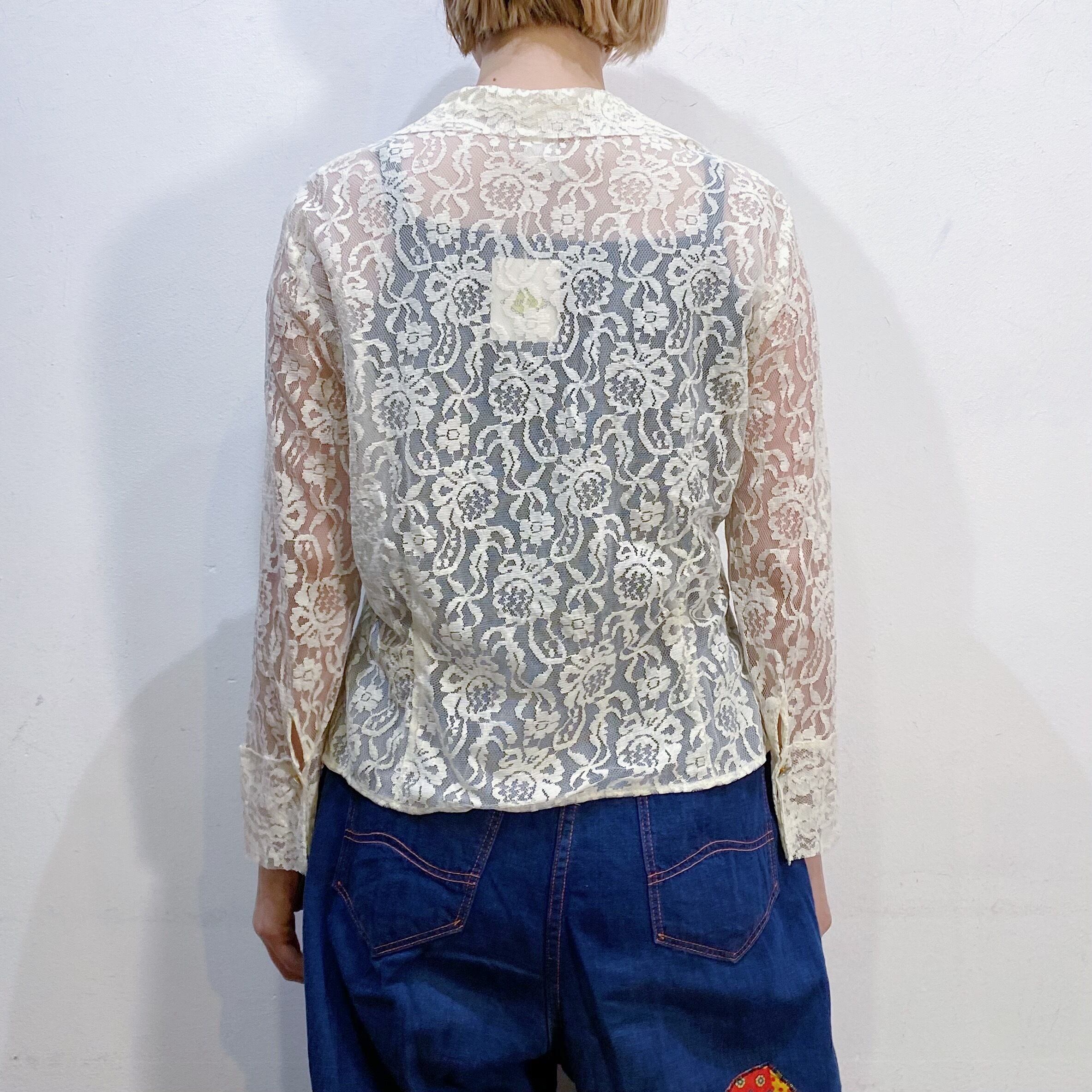 お花の繊細な総レースがとても可愛く美しい、50年代のブラウスです。
