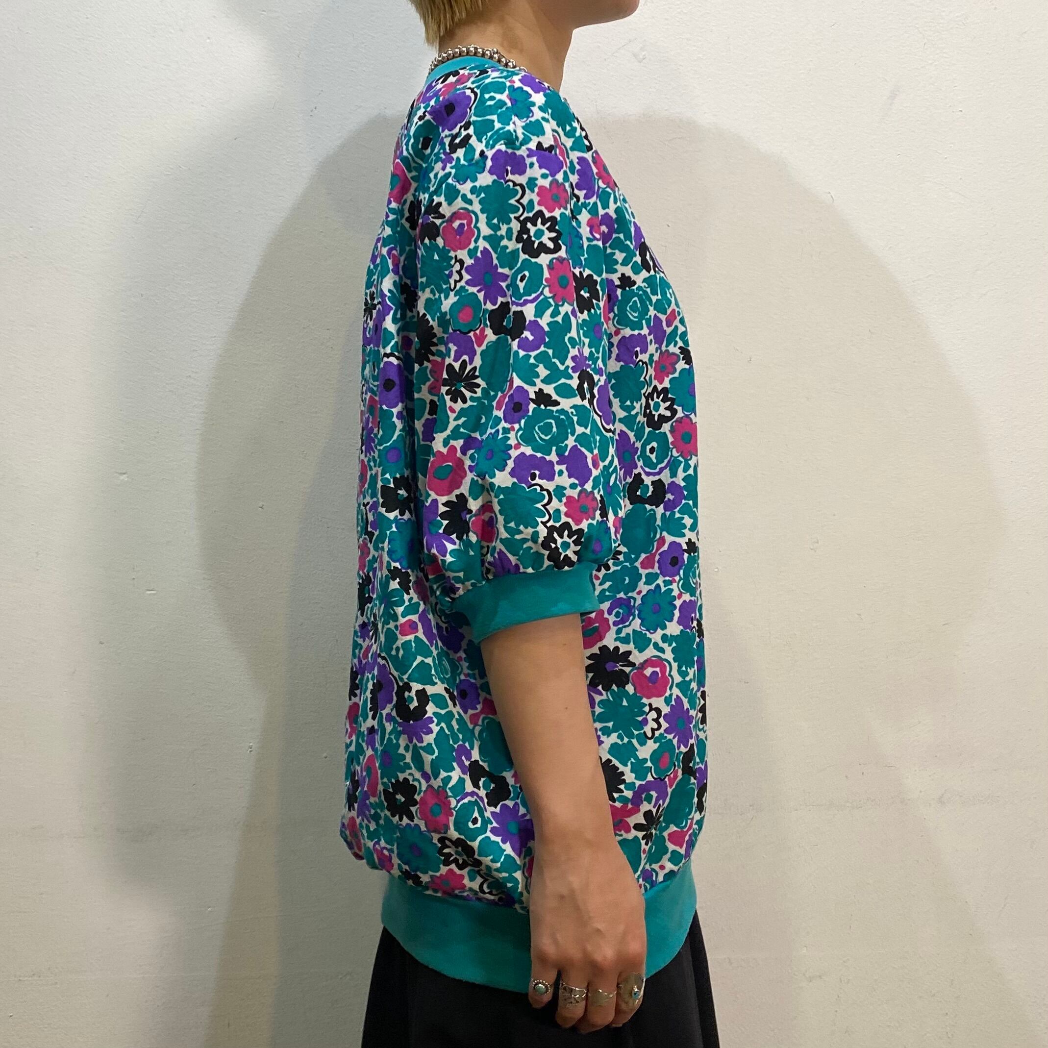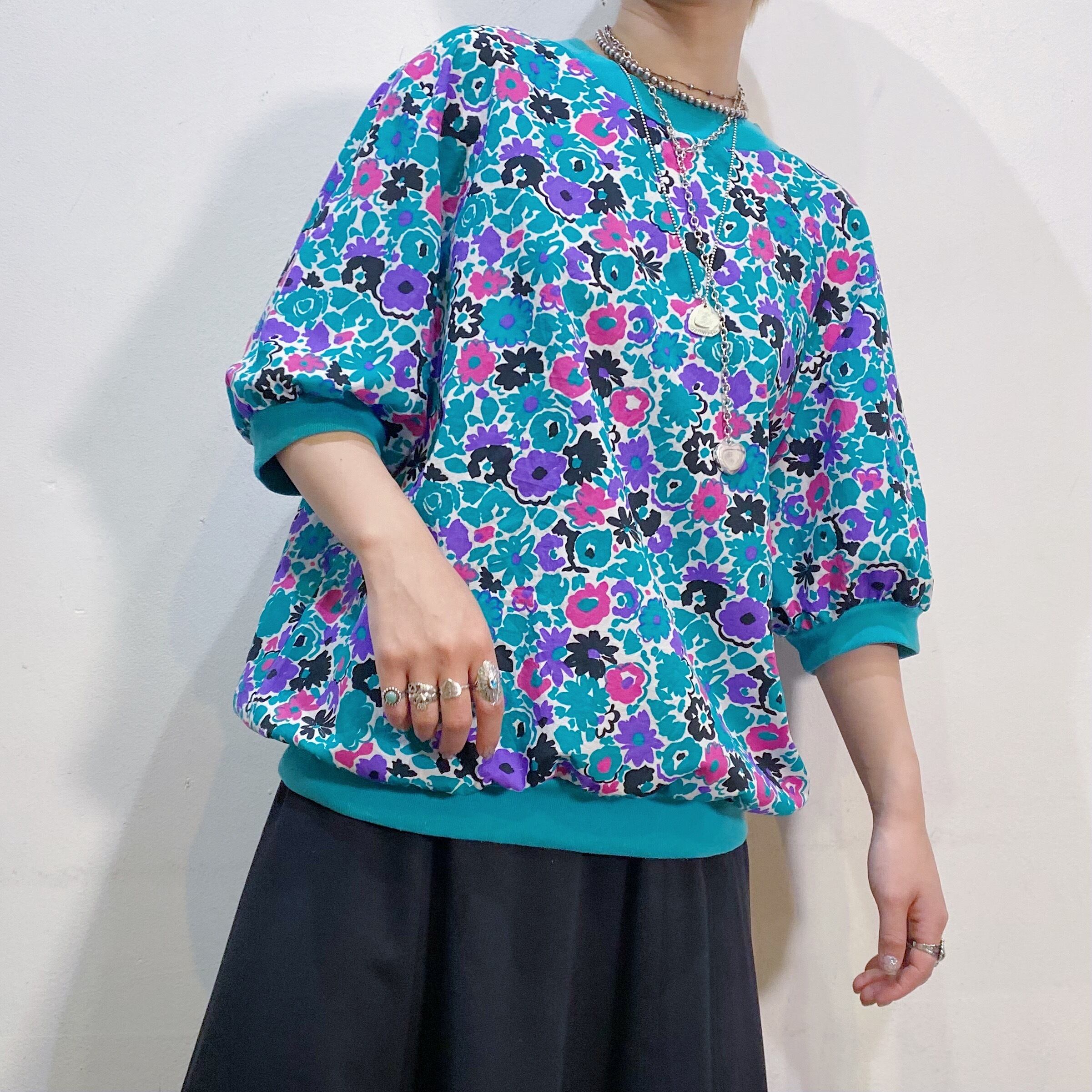 エメラルドグリーンのような絶妙な色合いが可愛い、80年代の半袖トップスです。