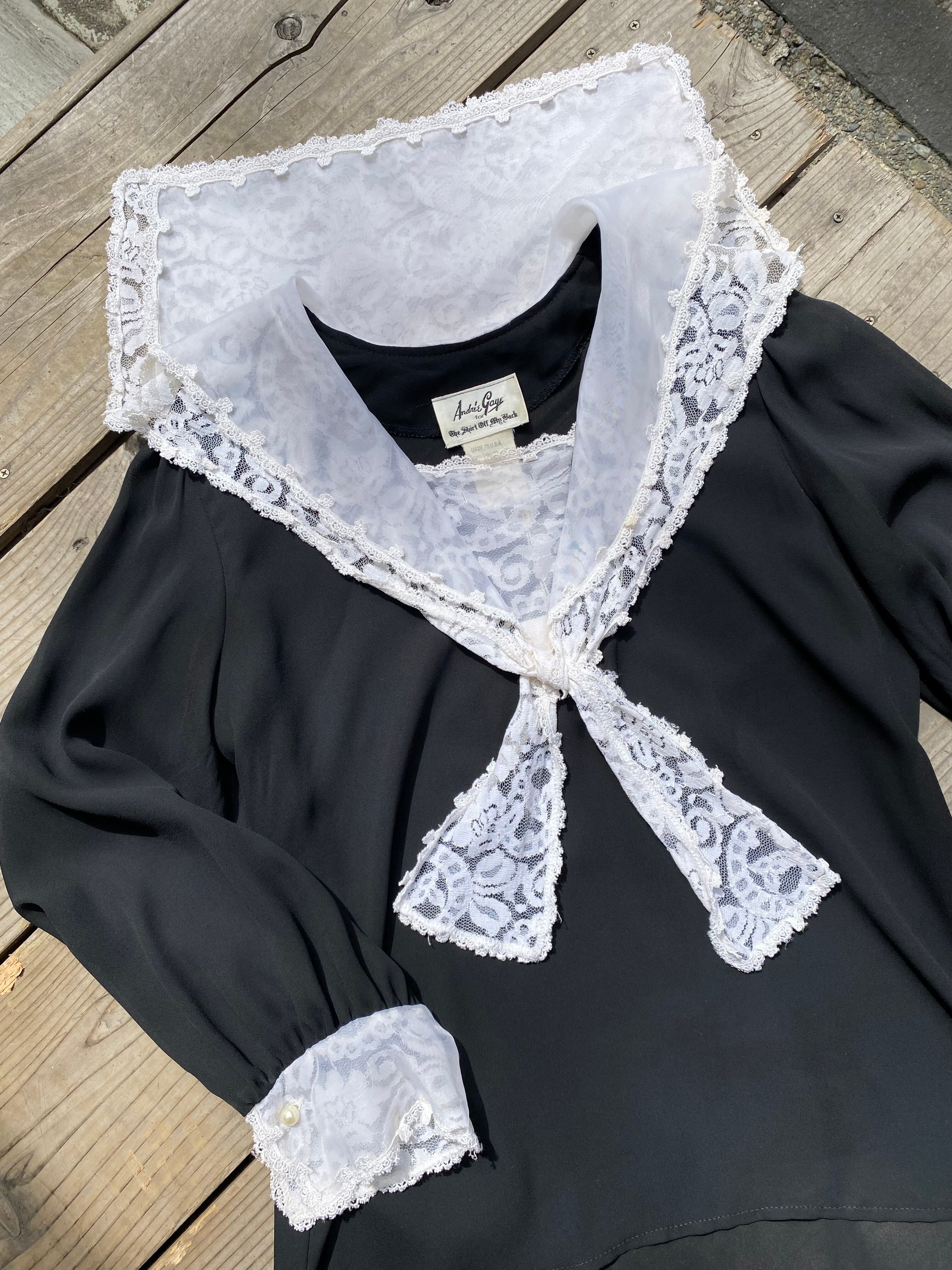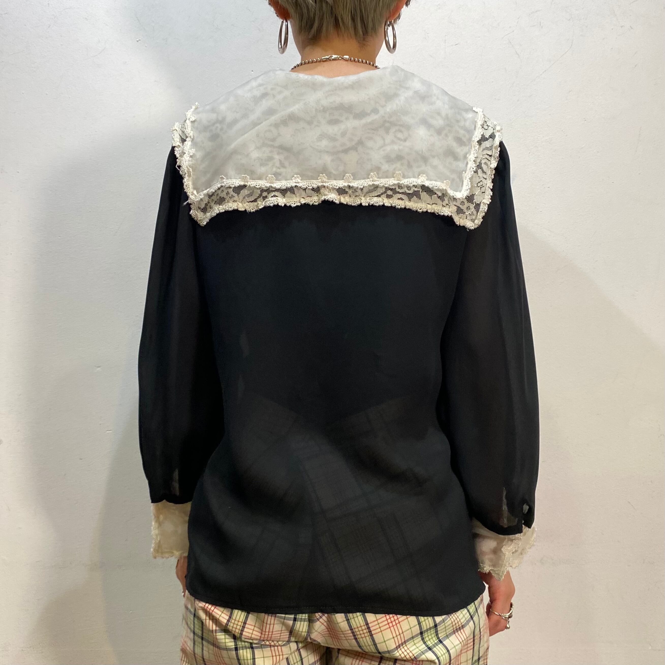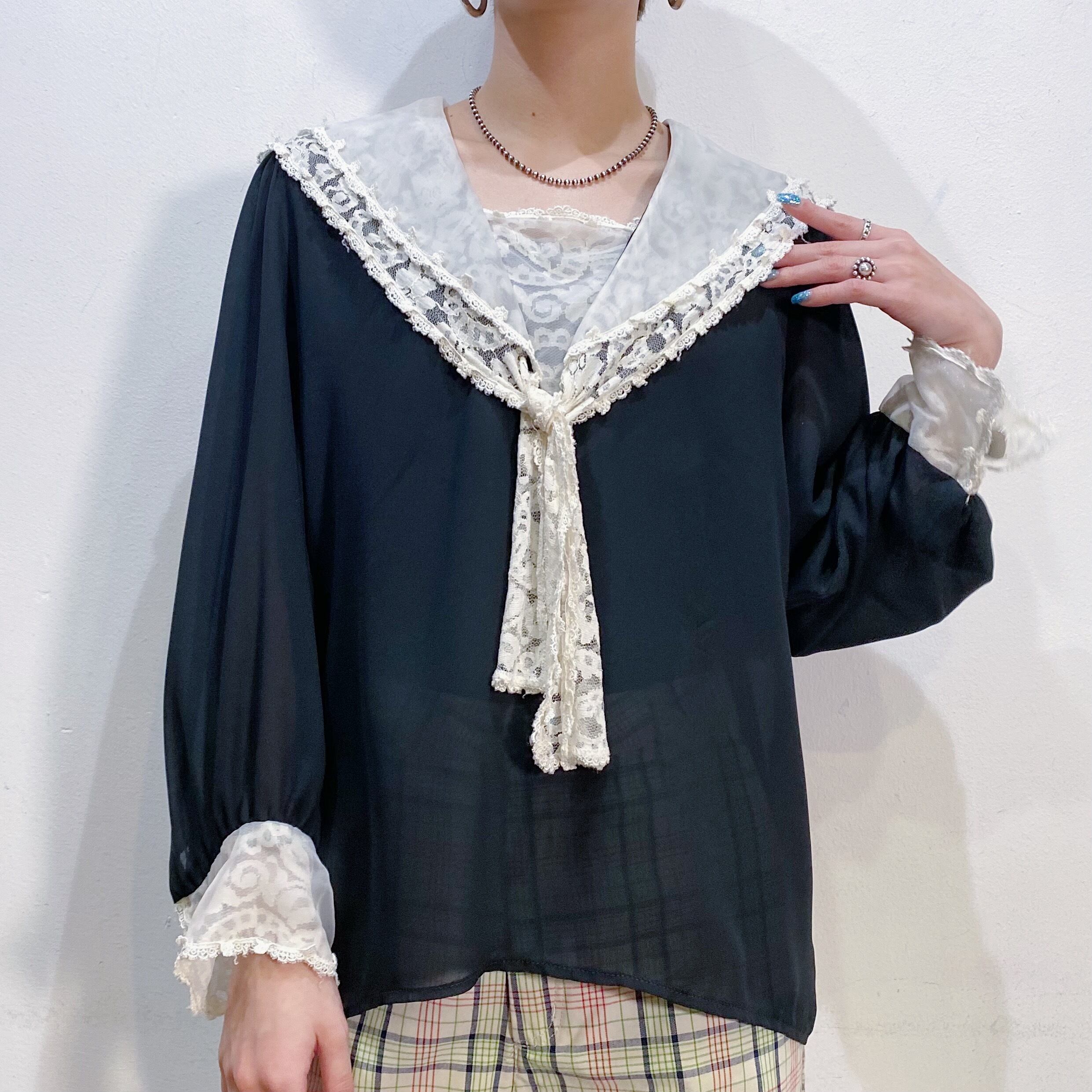 レースとオーガンジーのセーラーカラーとカフスがとっても可愛い、80年代のトップスです。