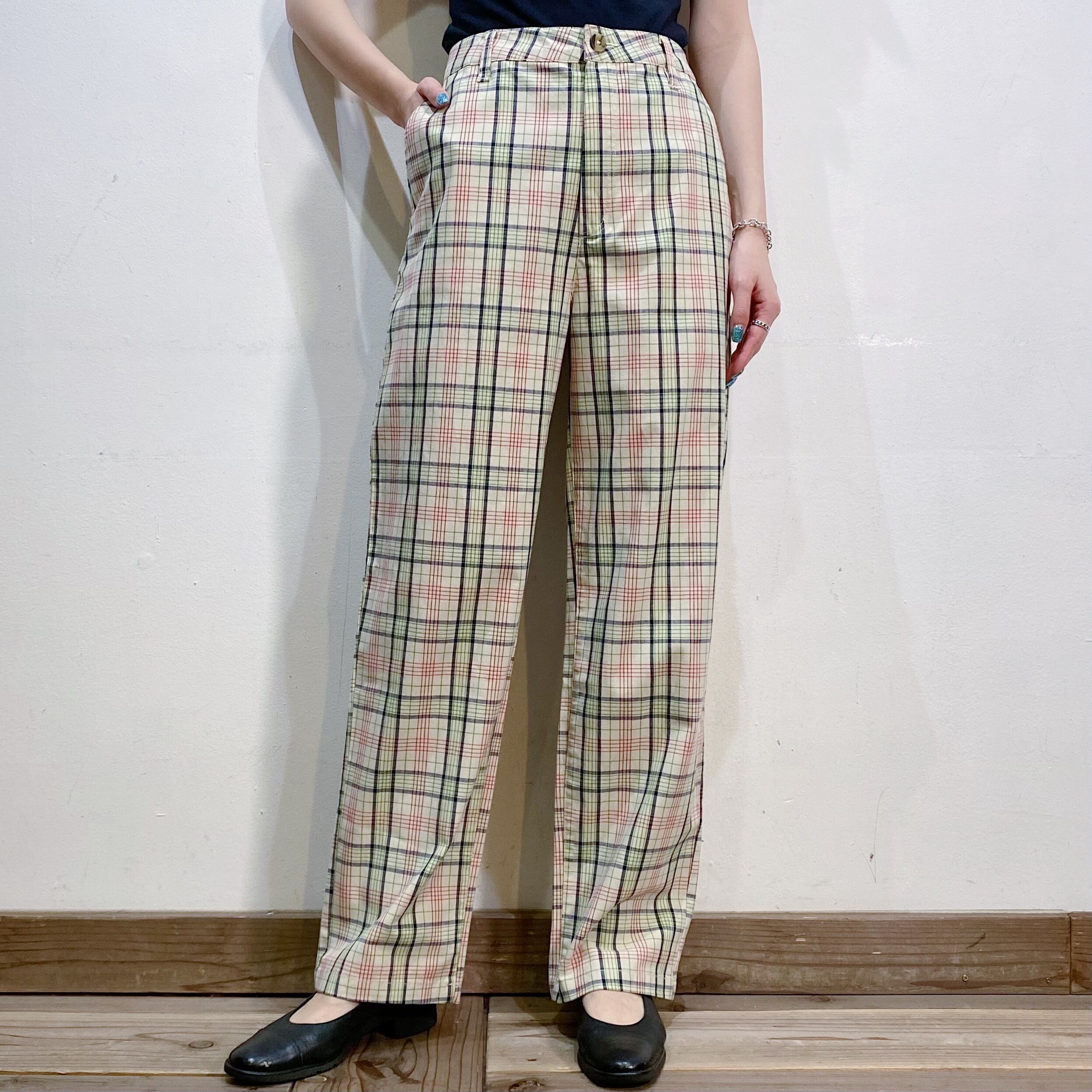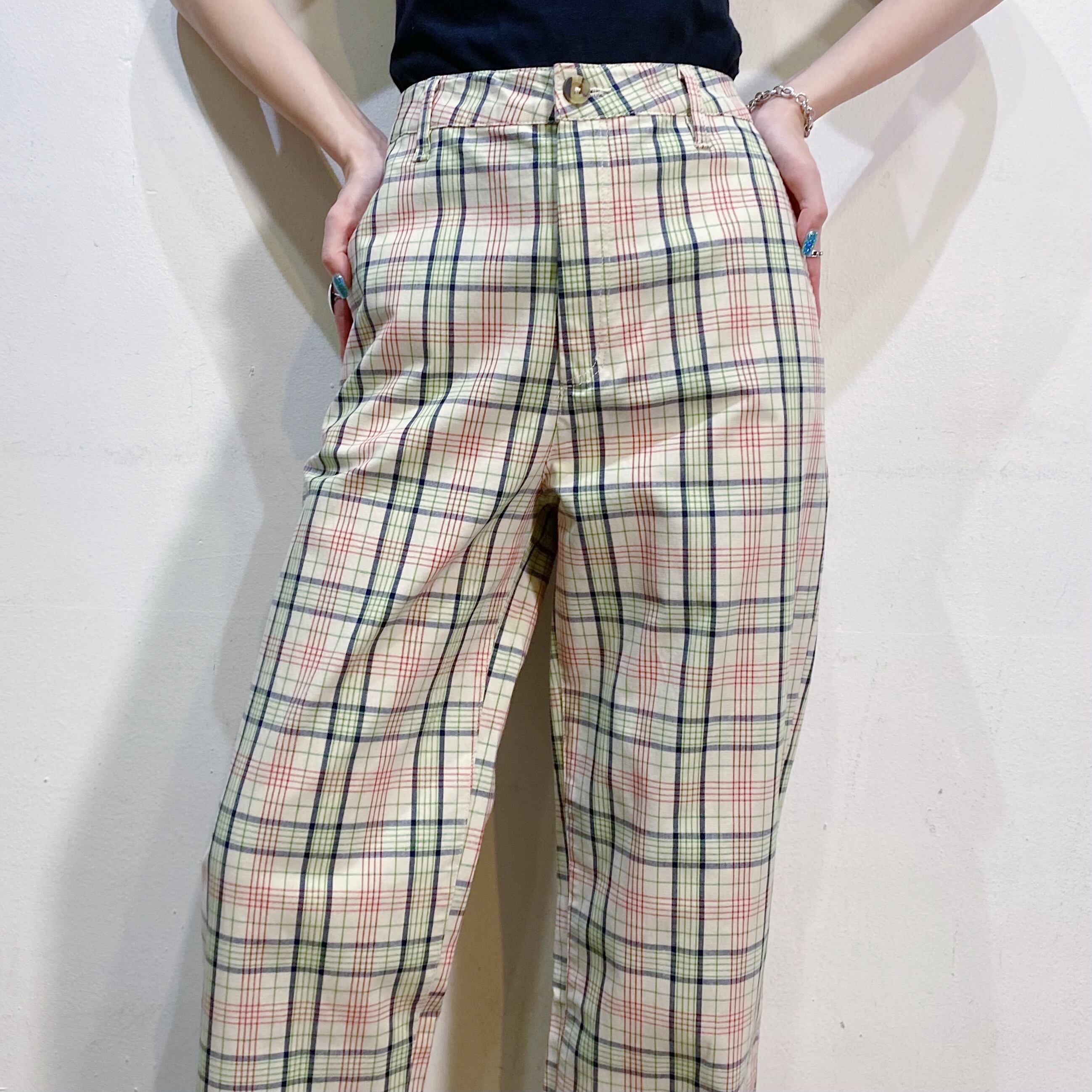 グリーン×レッド×ネイビーのチェック柄が可愛い、コットンパンツです。