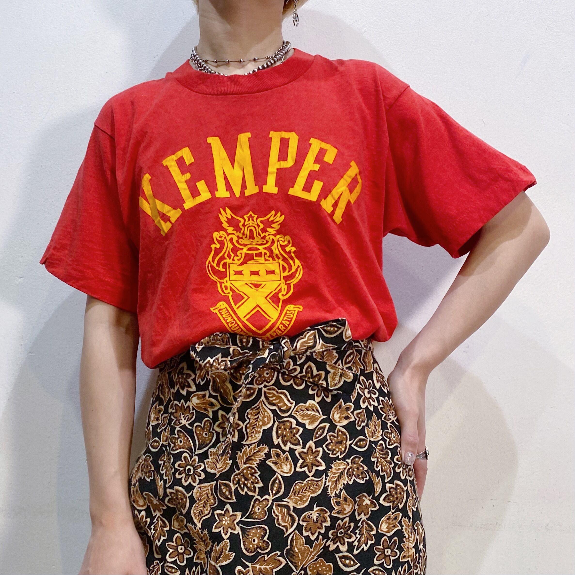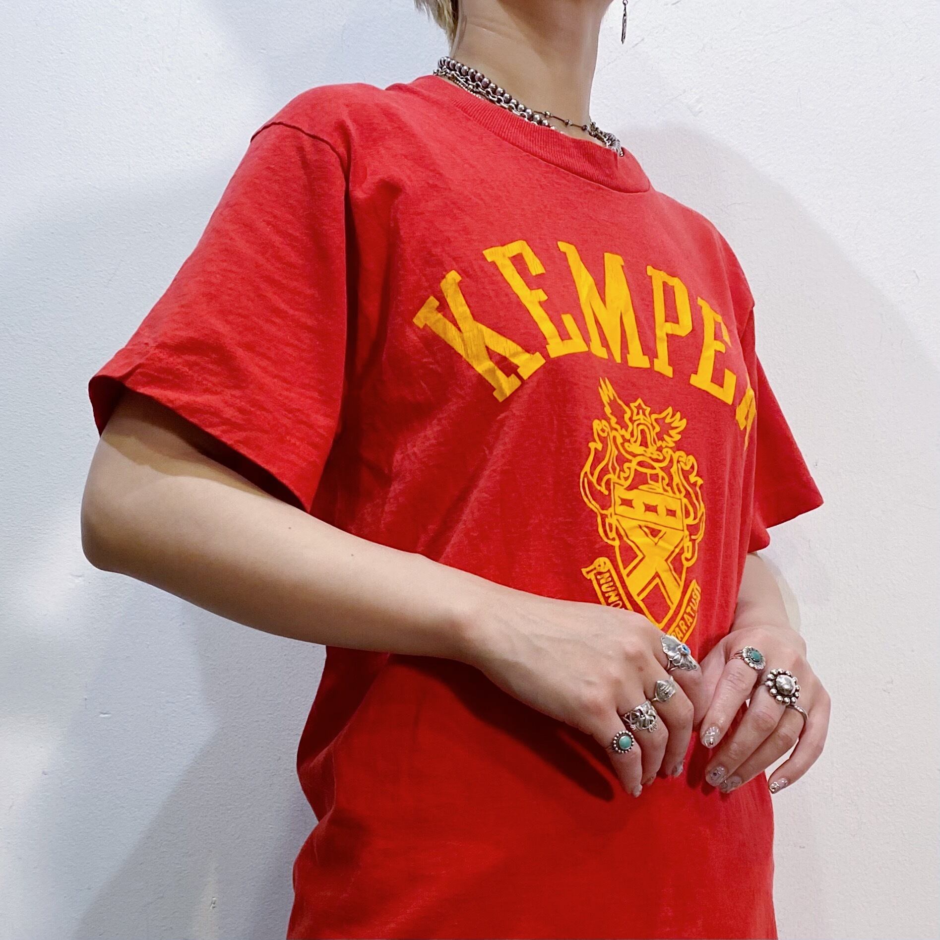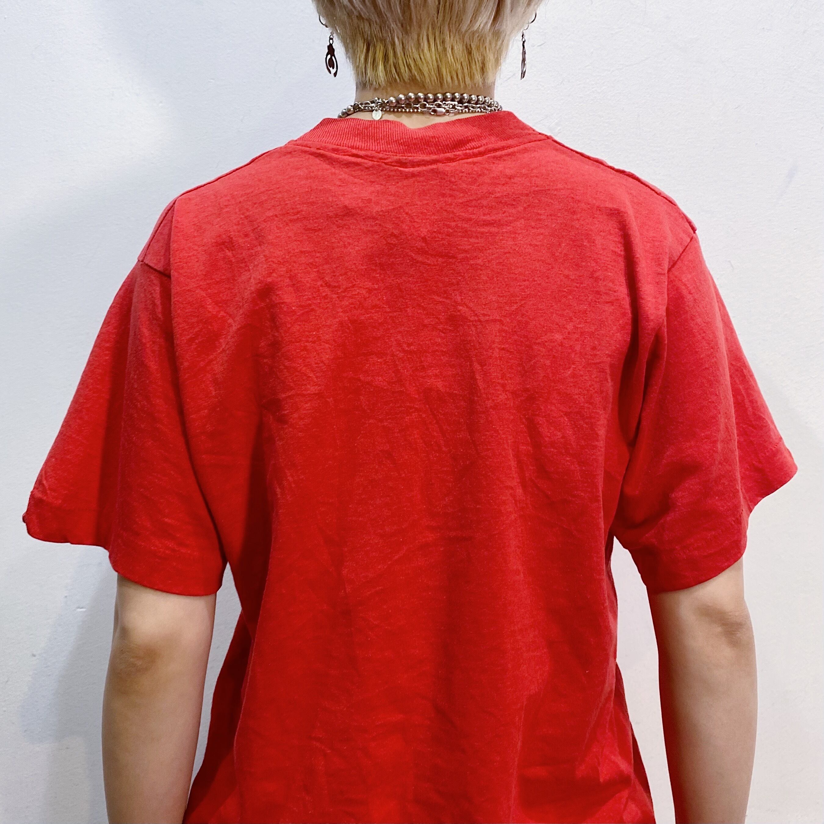 レッドカラーにイエローのプリントが可愛い、80年代のTシャツです。