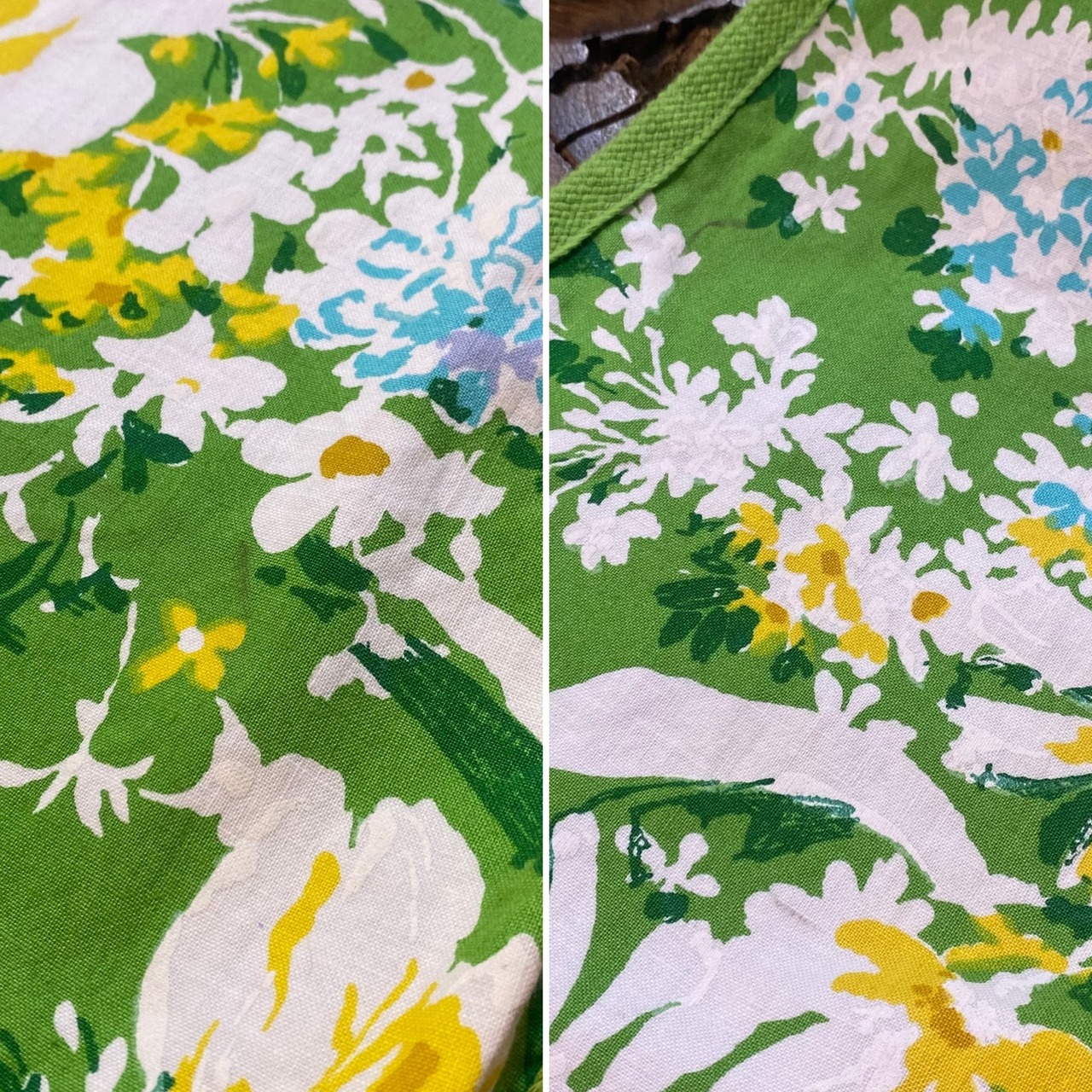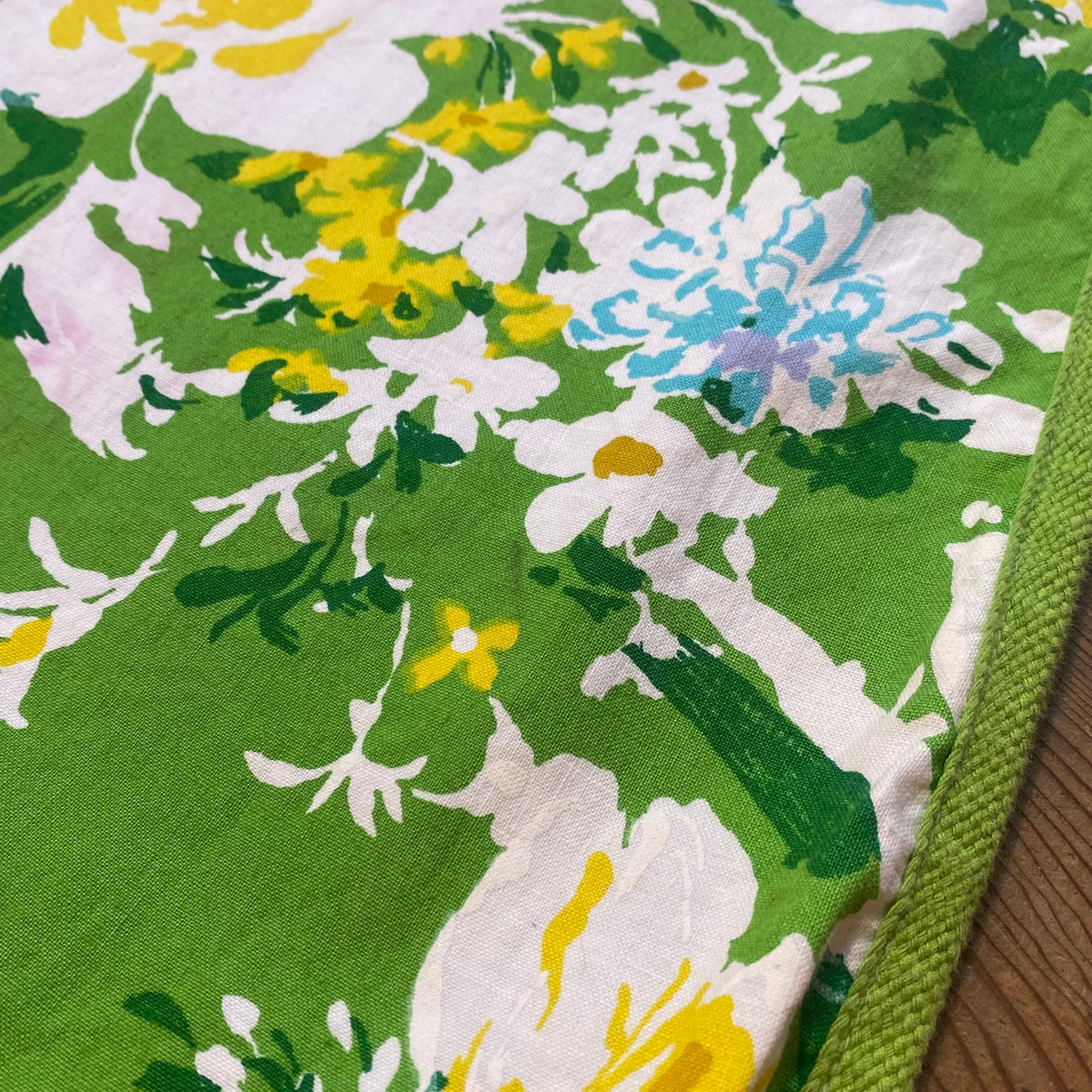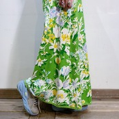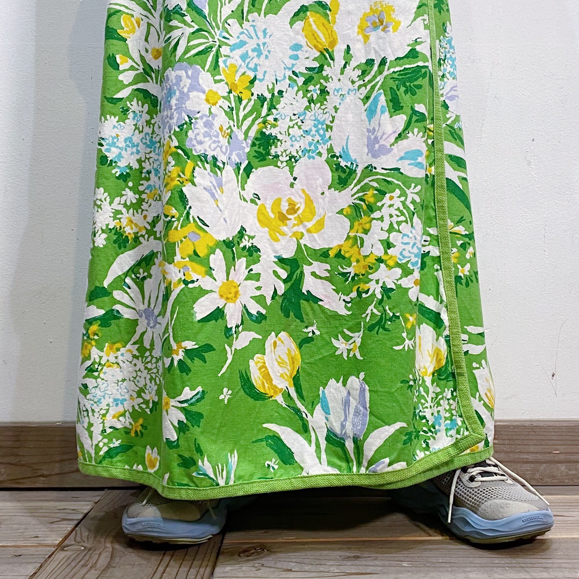 黄緑ベースの花柄が可愛い、70年代のロングスカートです。
