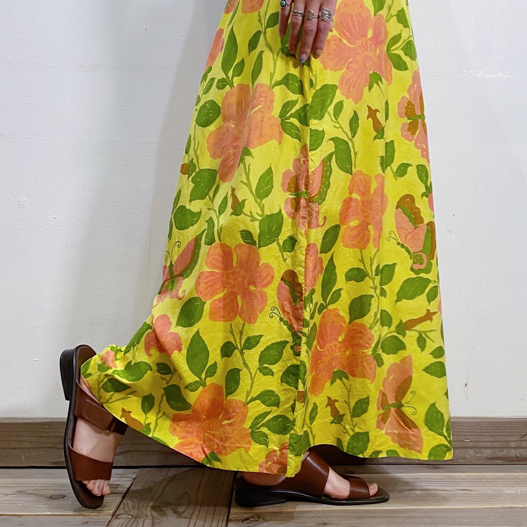 大きな蝶や花柄が可愛い60~70年代のロングスカートです。