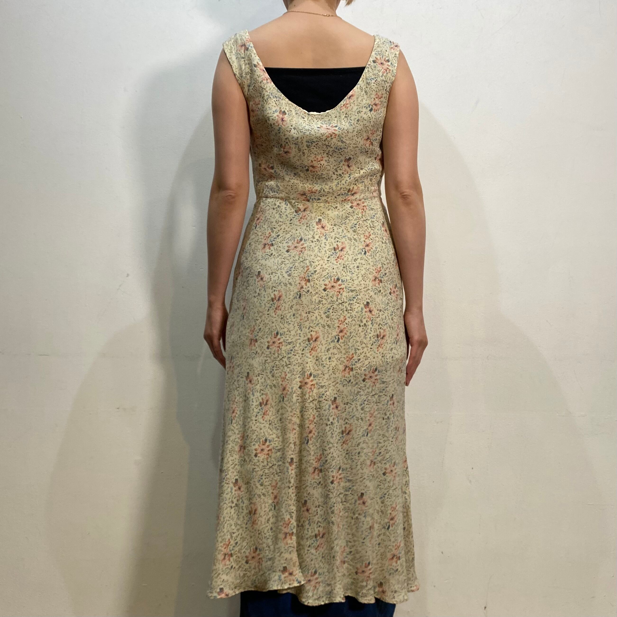 ベージュベースの花柄が上品で可愛らしい、ラルフローレンのノースリーブワンピースです。