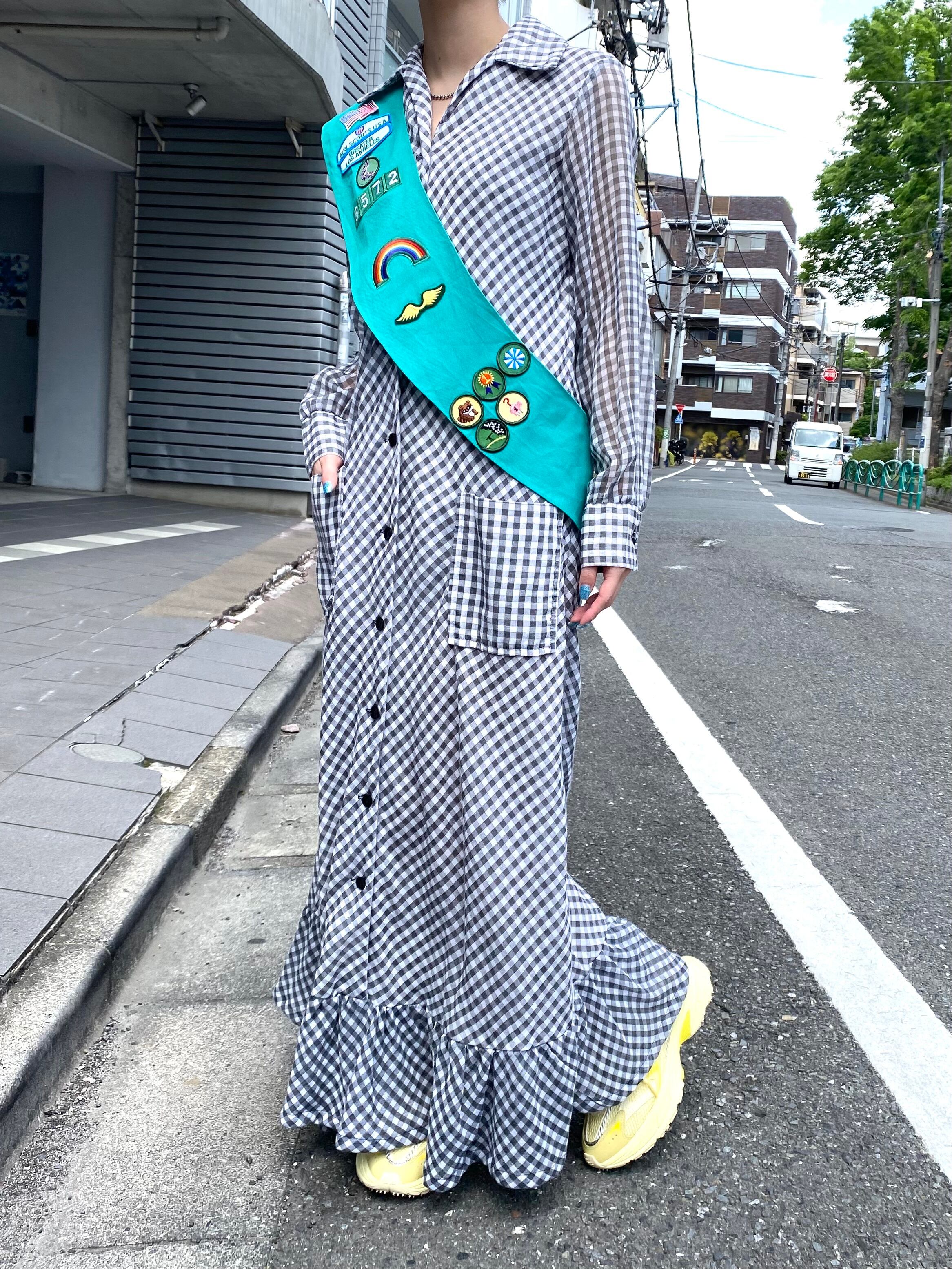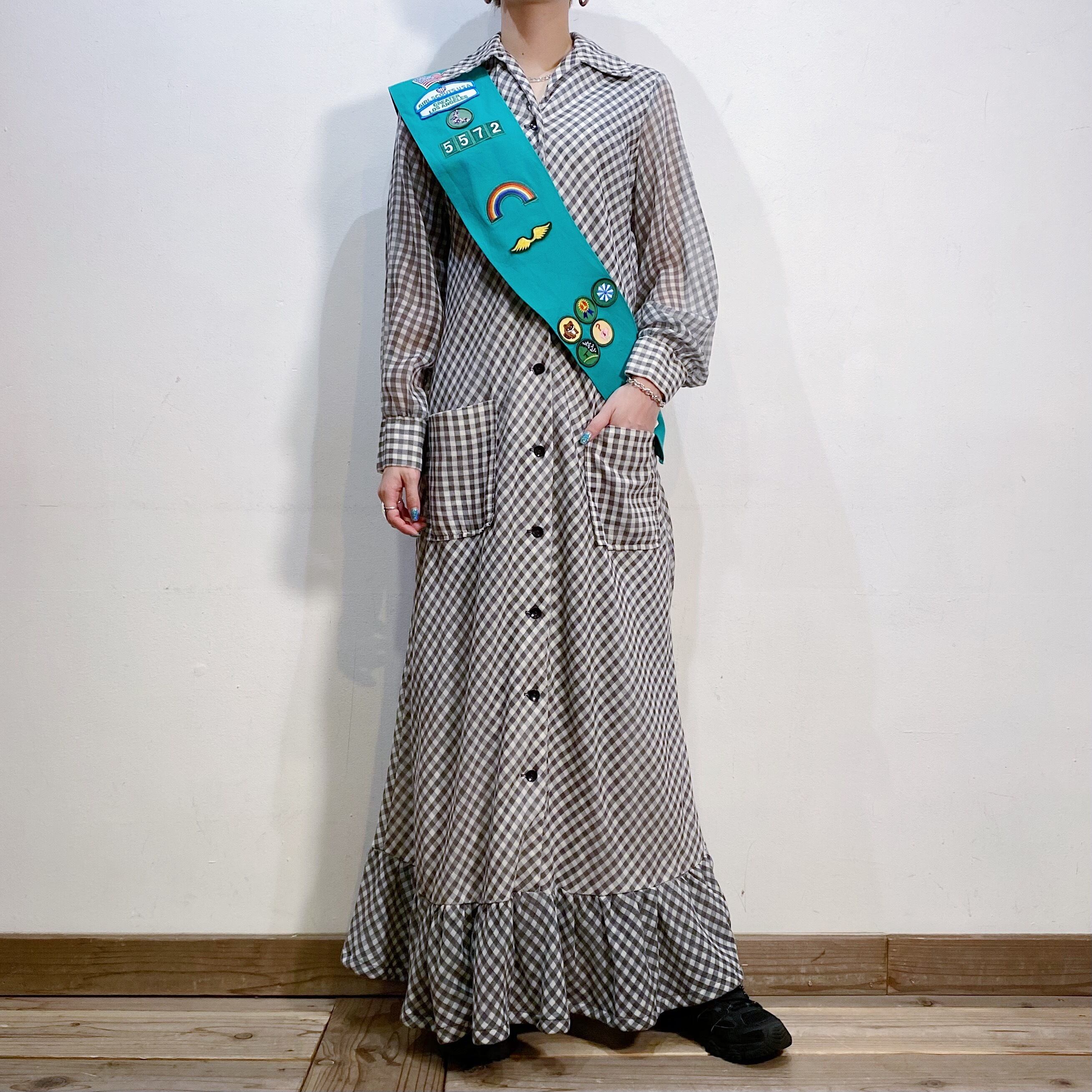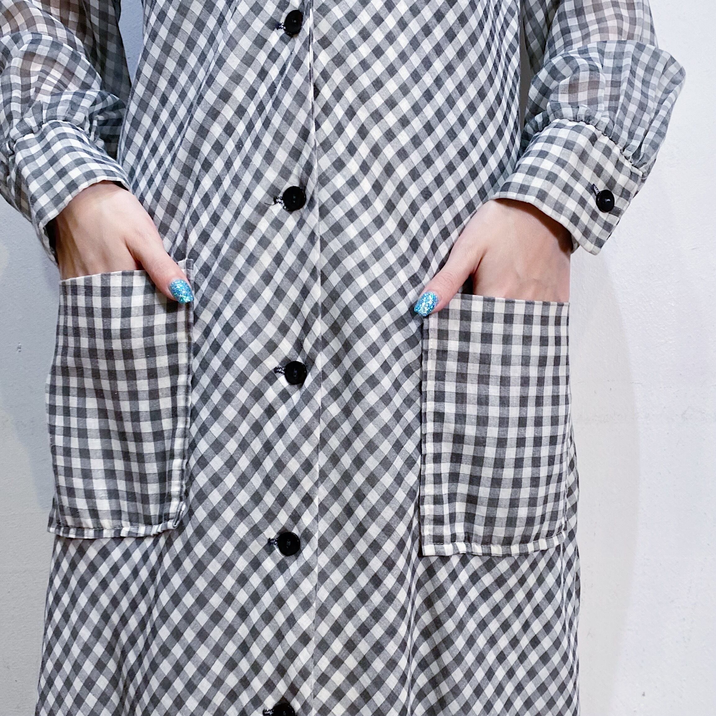 70s gray gingham check shirt long dress