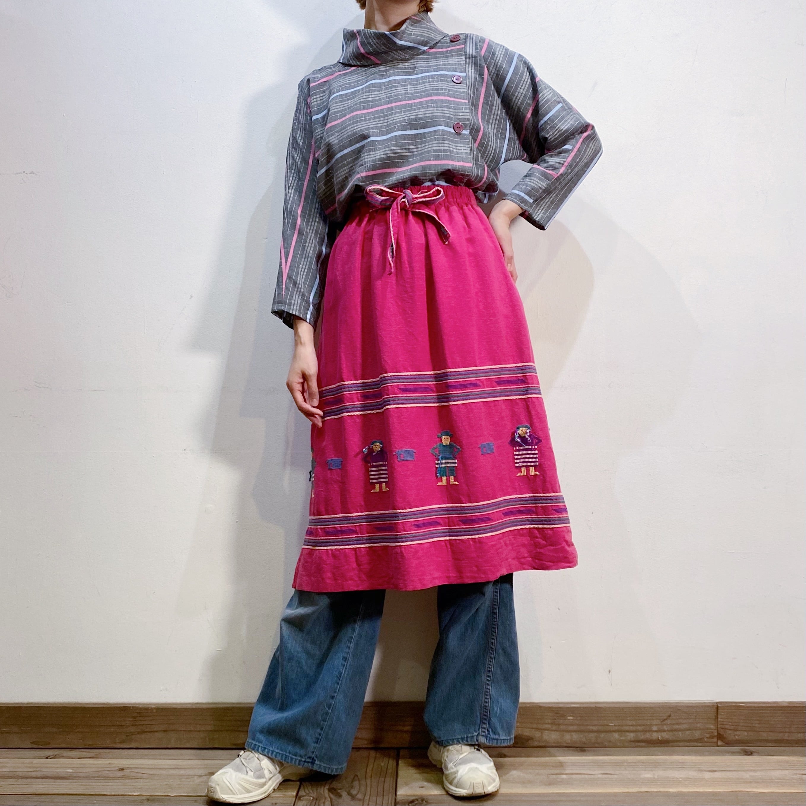 コットン素材で着こなしやすく、ウエストもゴムで楽ちんな一枚です。